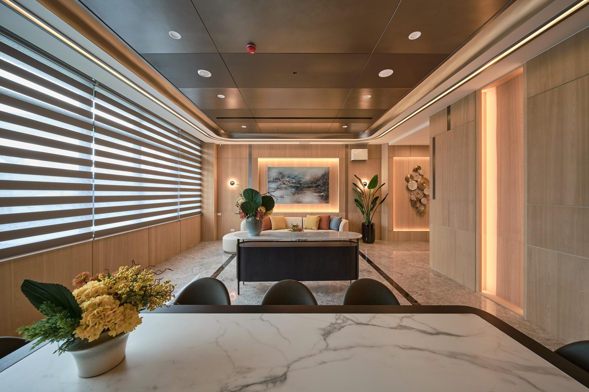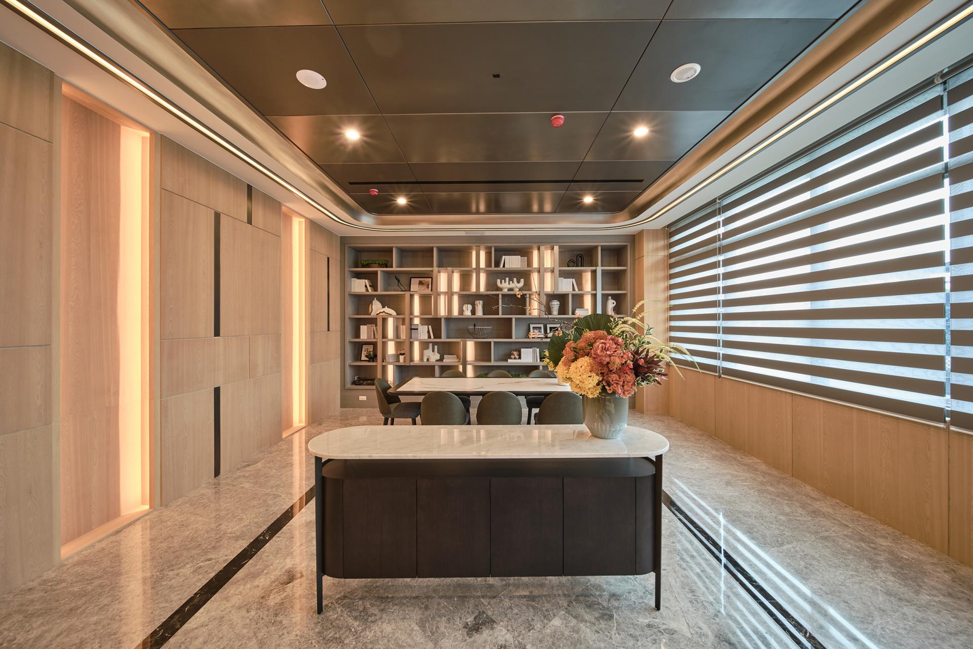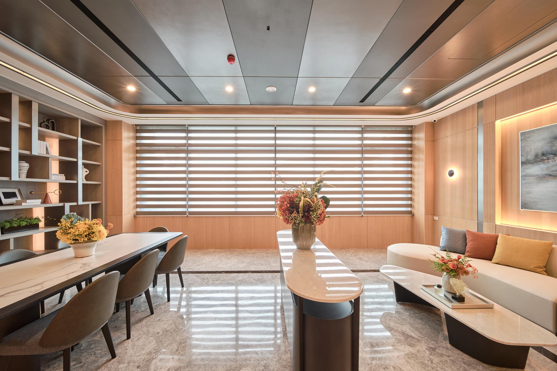 Design inspiration for this space is drawn from the poetic imagery of "elaborate carvings and gilded decorations" found in the “Preface to Exaltation of Duke Teng's Tower”. The grandeur and intricate detail depicted in the poem have inspired the designer to aim for a space that is majestic yet merits close appreciation, grounded in the essence of Eastern culture. The designer utilized the philosophical concept of "Heaven is round, Earth is square" in the design vocabulary, incorporating symmetrical aesthetics into the patterns of the curtains and structural details. To avoid being overly traditional and rigid, modern simplicity in lines and contemporary materials is introduced. Wood textures and gold elements are employed to provide a restrained yet opulent texture.