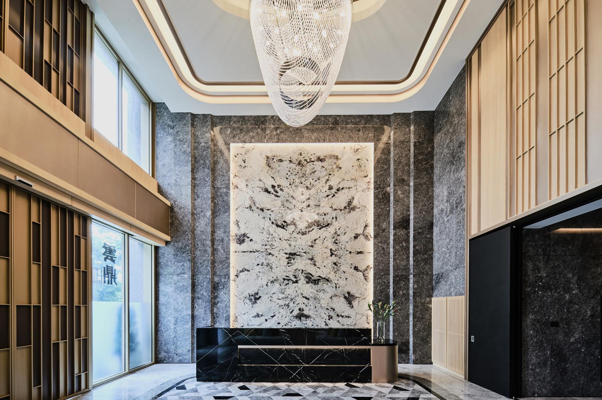 The project takes the concept of "Heaven is round, Earth is square" as its design core, reinterpreting the cohesion and balance of Chinese aesthetics. The designer employs a curved design at the edges of the high ceiling, adding gold trim to accentuate its elegant contours. The flooring is based on solid and stable square marble structures, integrated with triangular geometric motifs to create a richly layered and proportionally precise aesthetic. The interplay of circle and square, heaven and earth, reflects a modern aesthetic that embraces diversity and inclusivity in its poetic and structured expression.