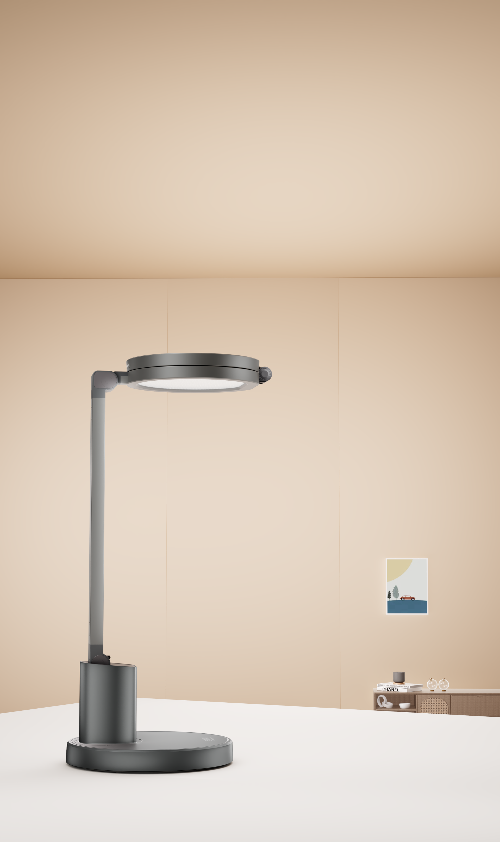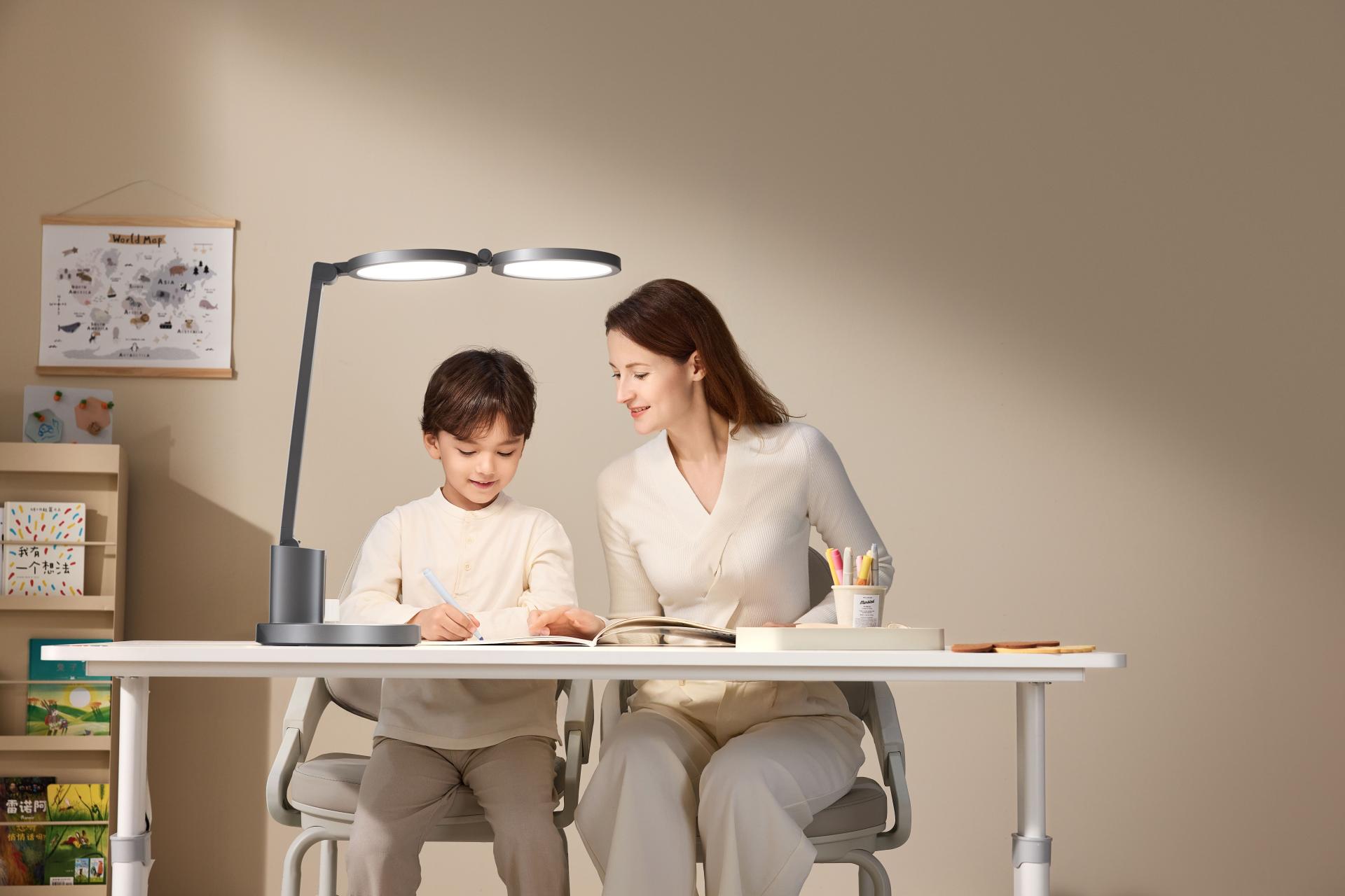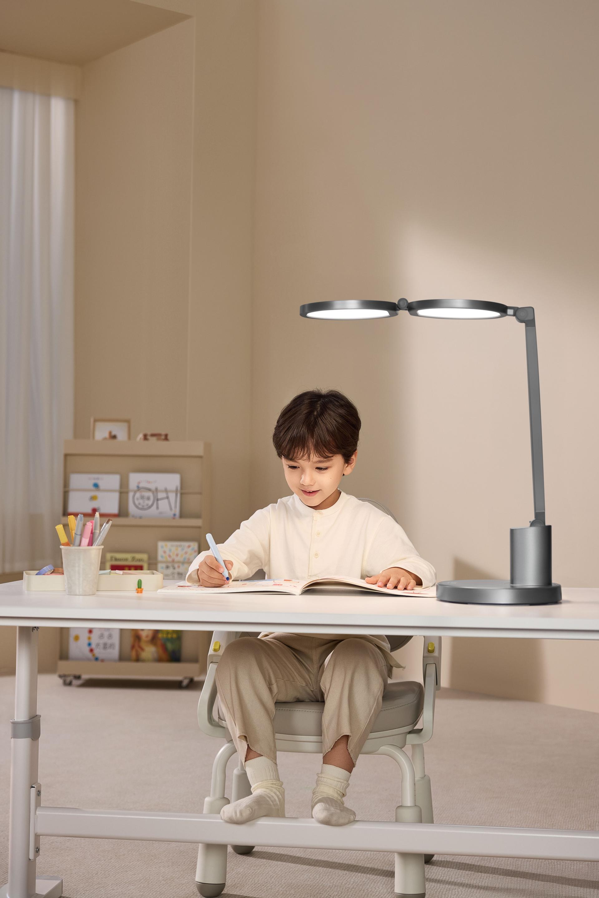 This dual-disc lamp delivers extensive desktop illumination with even, glare-free lighting to create a comfortable and productive study environment. Its reversible lamp tray design supports both full-desk lighting mode and ambient eye-protection mode, ensuring uniform light coverage while reducing visual fatigue. The weighted base provides stability to prevent tipping and is designed for easy disassembly and assembly, making it convenient for transportation. When the upper tray is flipped, its brightness is automatically halved, offering gentle lighting that cares for the eyes of the entire family.