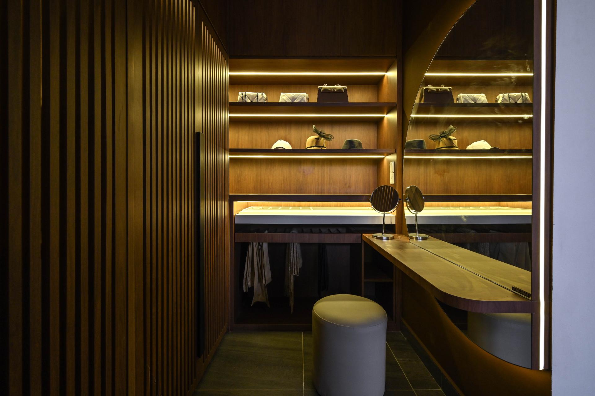 Designed for relaxation and meditation, this intimate space serves as a sanctuary within the home.