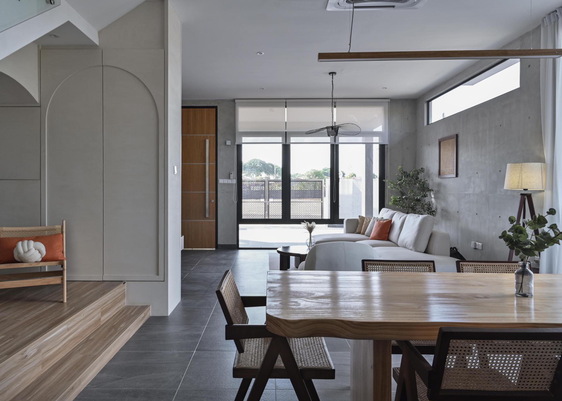 The choice of materials throughout the residence further enhances the Japandi aesthetic.