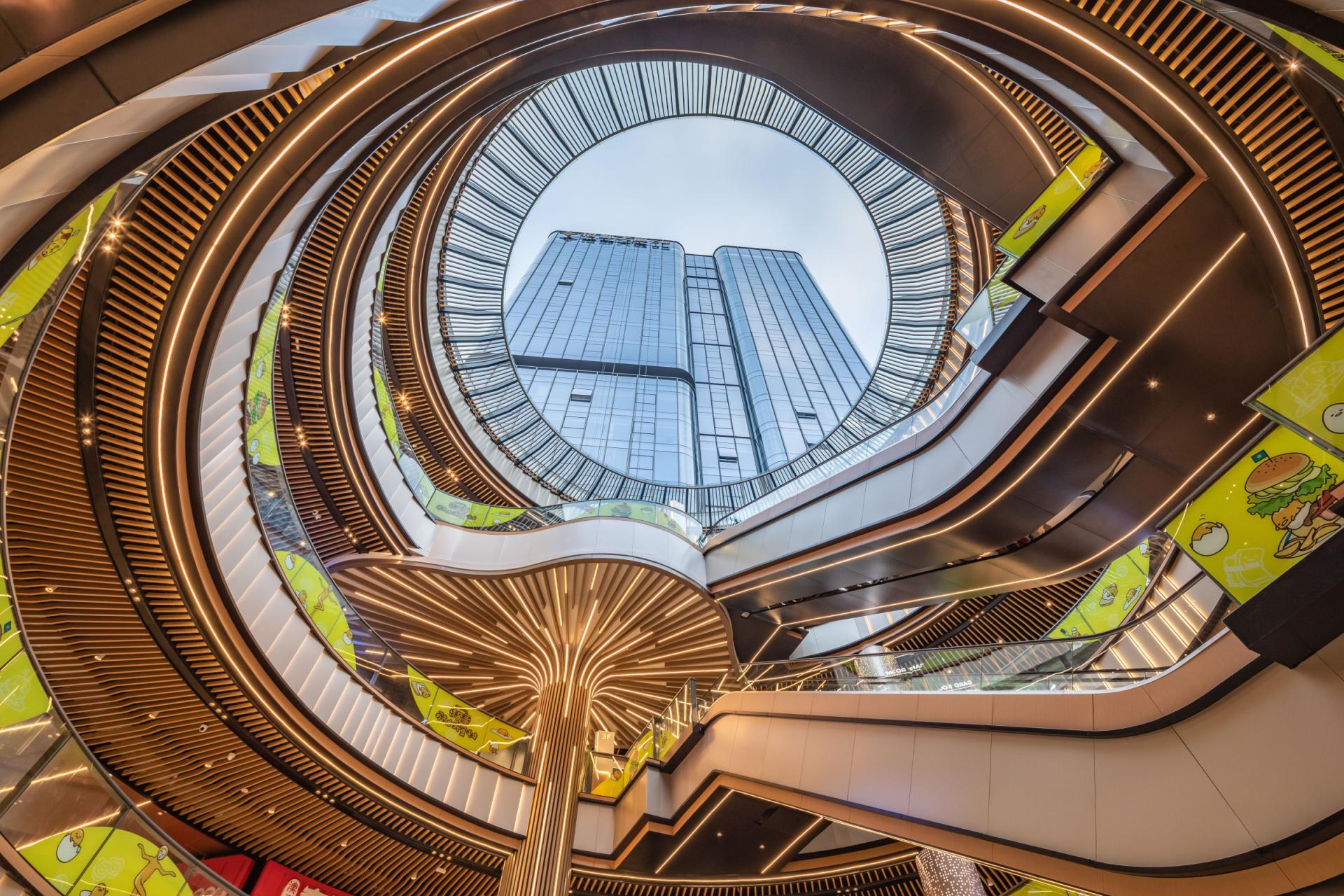 The mini mall’s architectural volume adopted superimposed blocks with round-off corners to achieve a unified urban appearance with the office building and the residential buildings. A grand step is set on the ground floor at the east end of the mini mall, attracting people from the public green space and increasing commercial value of the upper floors. A tree shaped column is set on the ground floor in the circular atrium of the mini mall, which is three-story high and creating a platform on the fourth floor. The roof garden of the mini mall is a shared place for both the commercial part and the office part, where is also the place planned to organize activities such as aerial bazaars.
