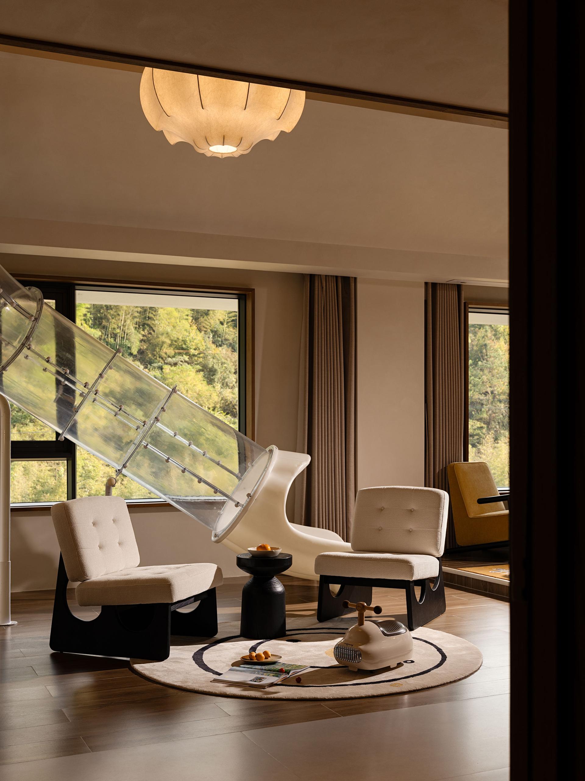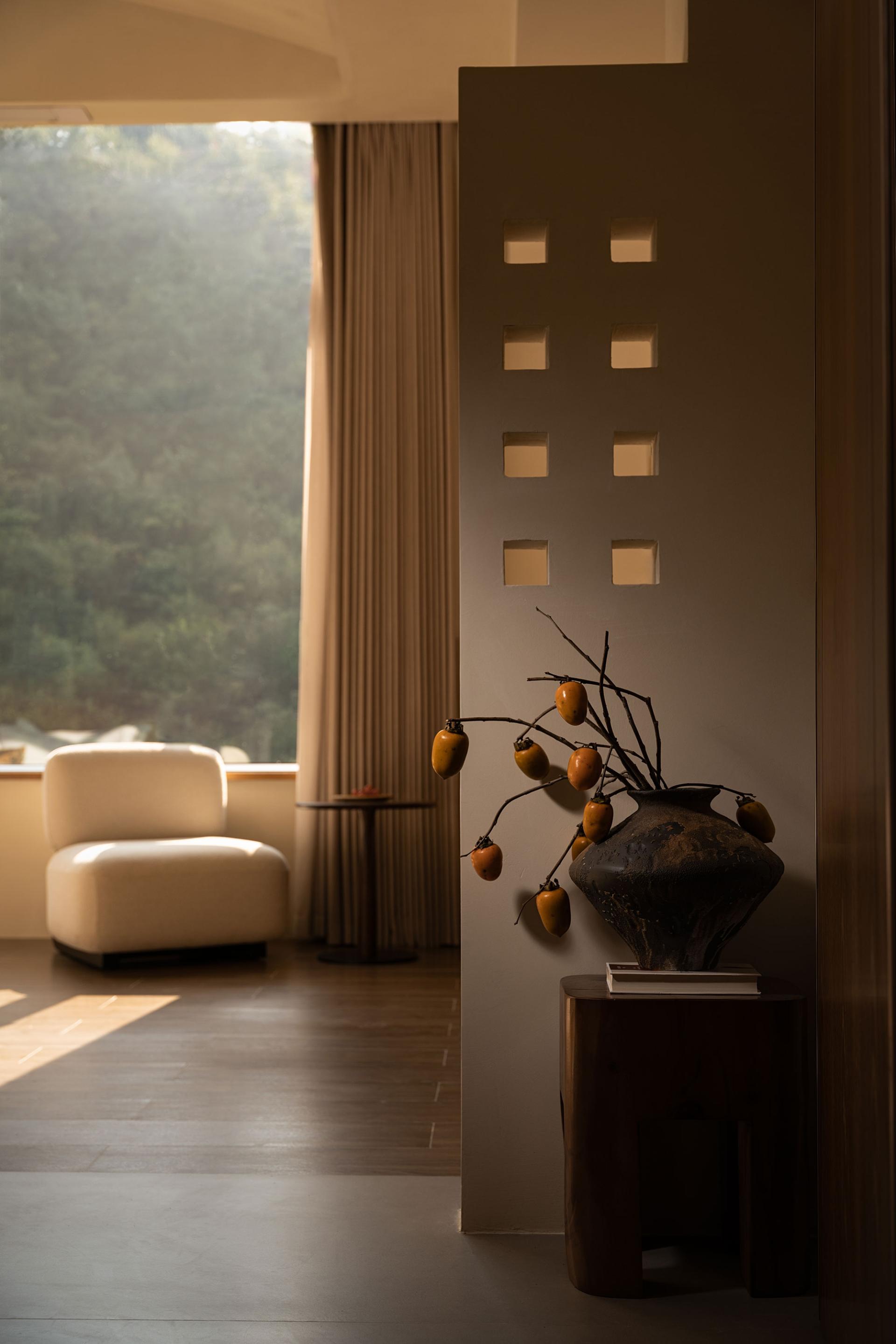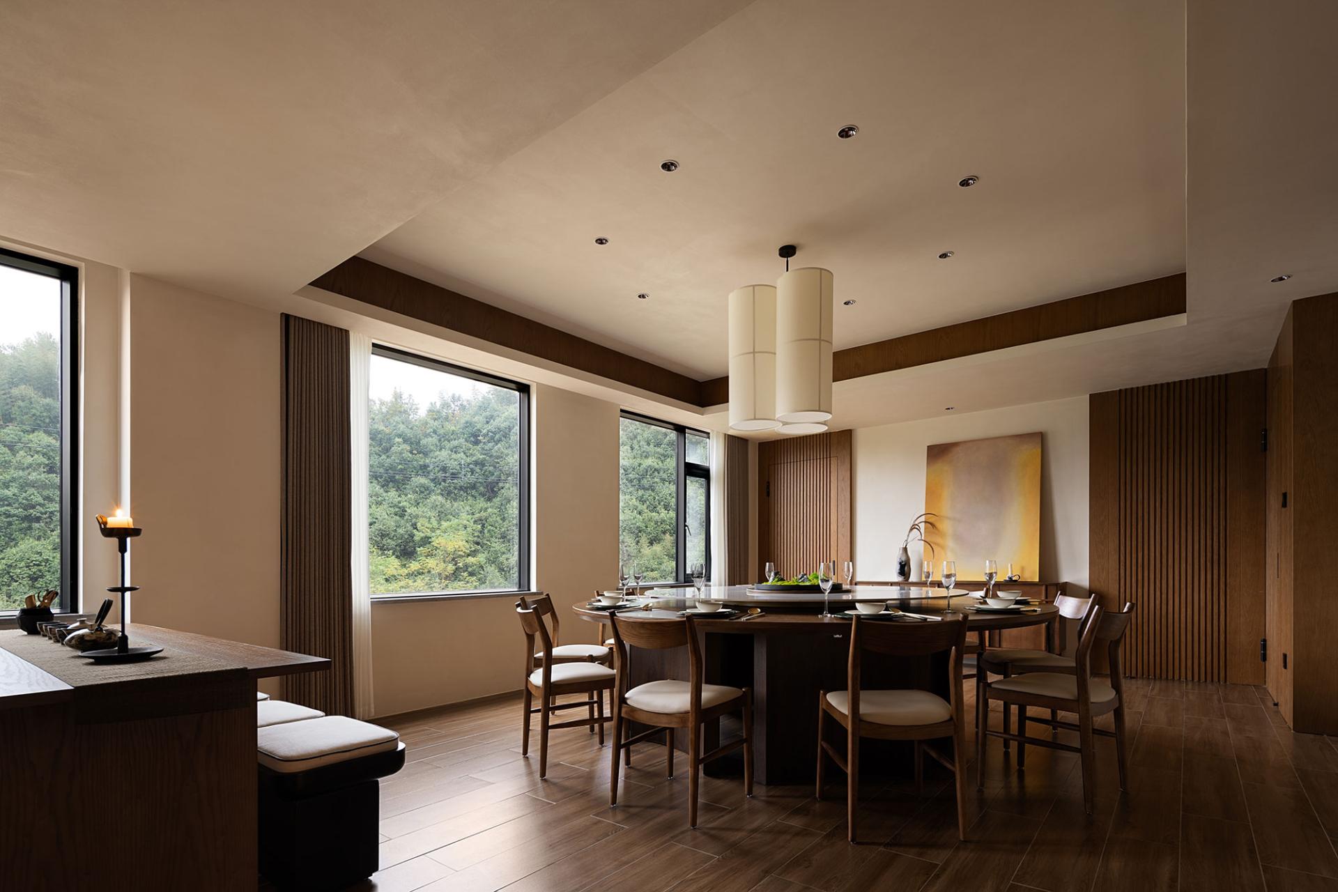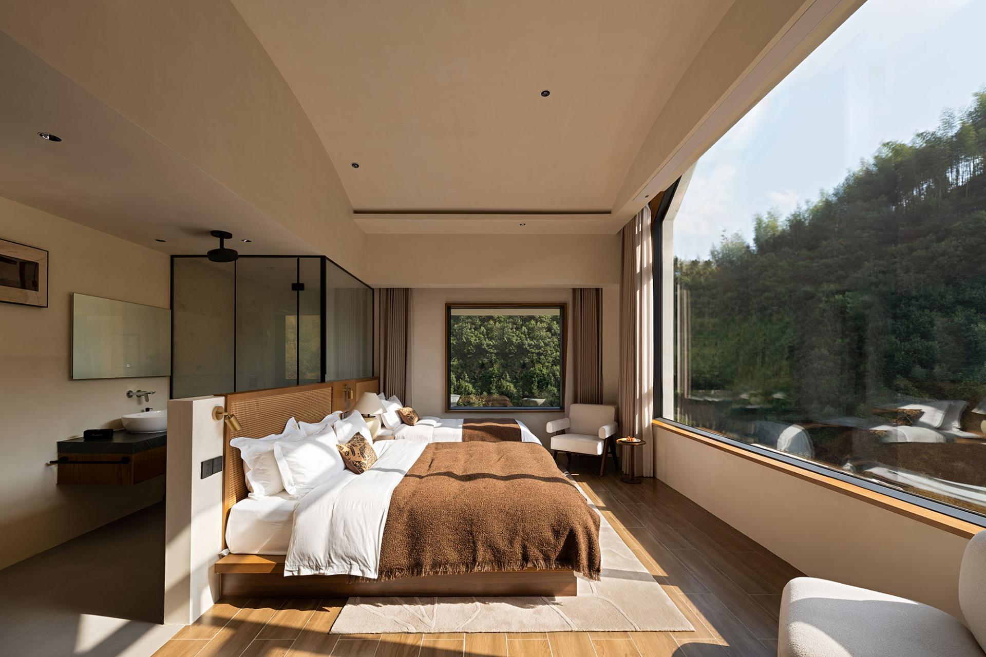 Anji Shili Xixi Homestay is nestled in the serene embrace of Anji's majestic mountains in Zhejiang, where towering peaks pierce the clouds and mist lingers among the ridges. The design concept centers on "weaving the cycle of the seasons into the verses of time, allowing the mountains, rivers, and clouds to pause in the depths of timelessness." The goal is to harmonize the natural rhythm of the landscape with the passage of time, creating a space where one can experience the beauty of every season and find inner peace in the stillness of time. The decoration design team masterfully integrates the surrounding natural landscape with unique spatial characteristics, emphasizing emotional resonance and atmosphere. Using the simplest and most organic methods, they bring to life the vibrancy of nature while highlighting the quiet beauty that time bestows.