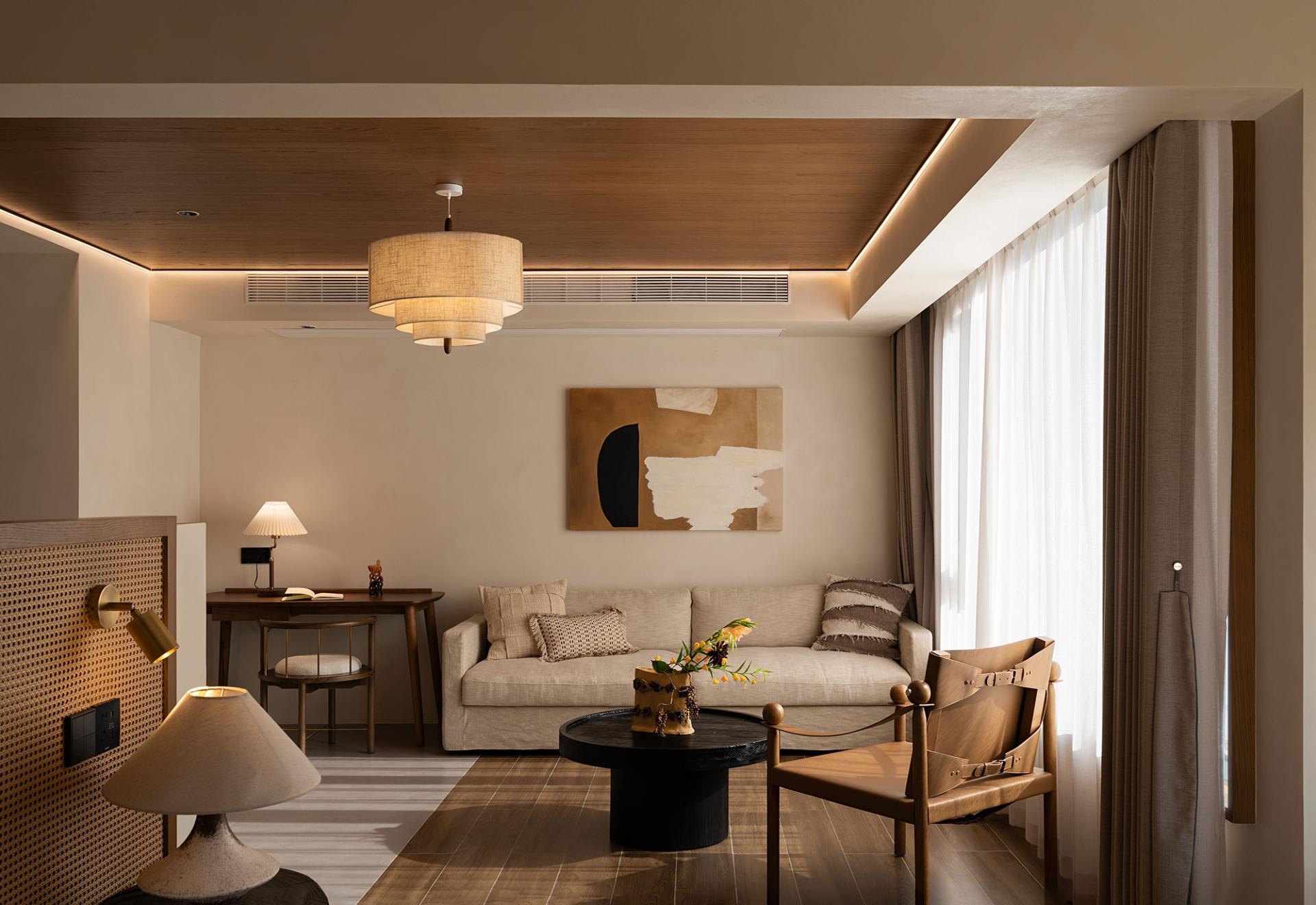 Each element in the space is a carefully chosen gift from nature—whether in material, color, or texture, all embody a harmonious blend of natural elements and warm tones. The solidity of wood, the lightness of bamboo weaving, and the purity of linen serve not only as the focal points of the design but also as a vivid celebration of nature’s beauty.