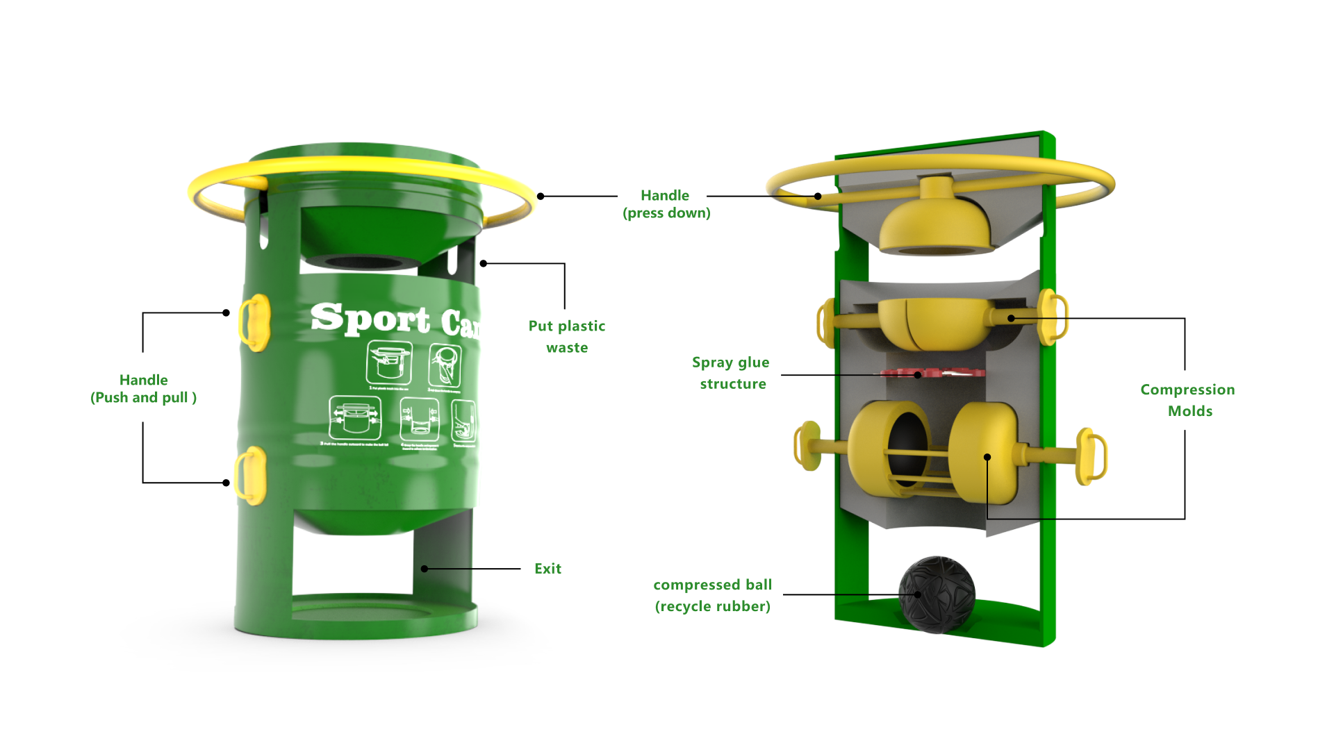 To address the challenges related to education and longevity, we developed Sport Can, a soccer ball made from compressed plastic waste. This product transforms discarded materials into a durable, sustainable soccer ball through a low-cost, low-tech, and replicable process.
