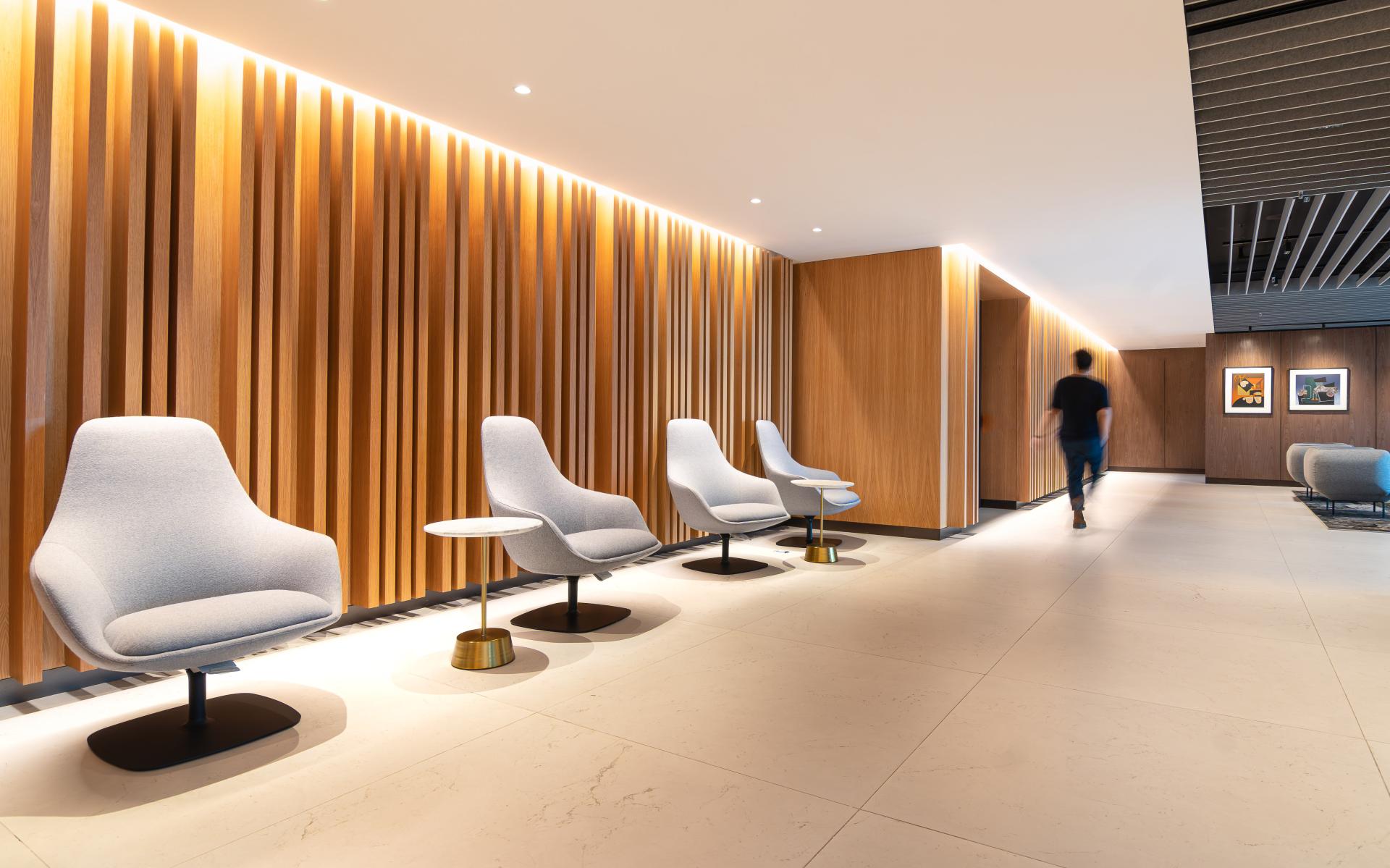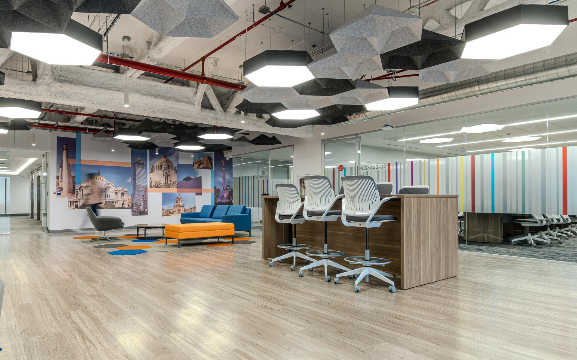 A fresh, contemporary, and innovative image has been created, both in the configuration of carpets, ceilings, and furniture, as well as in diverse settings that incorporate natural light and vegetation to promote the health and happiness that leads to personal satisfaction. The success of this project is based on understanding the needs of the organization in order to convert the space into a competitive tool, creating an environment of elegance and modernity, with shades of light resulting from the multidisciplinary integration.