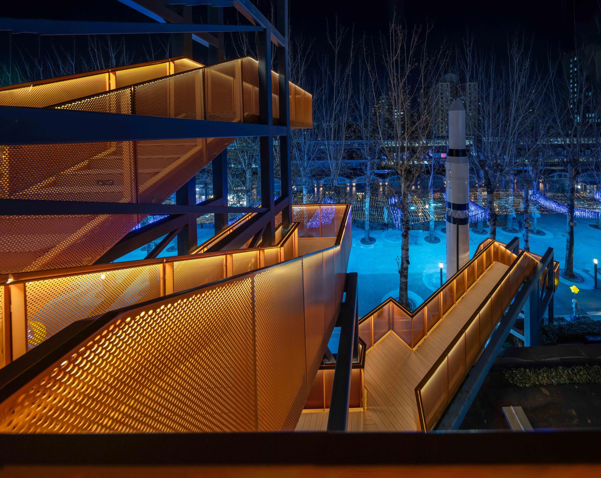 Beijing Satellite Factory Science Park is filled with space-related elements, with the highlight being the utilization and display of original factory equipment and monuments, showcasing its new face to the public. in the lighting design, the light is embedded in the building fabric, releasing the deep cultural charm behind the satellite manufacturing industry. Activate the vitality of urban areas and the self-drive of enterprises, and create a park with historical and cultural connotations and urban vitality.