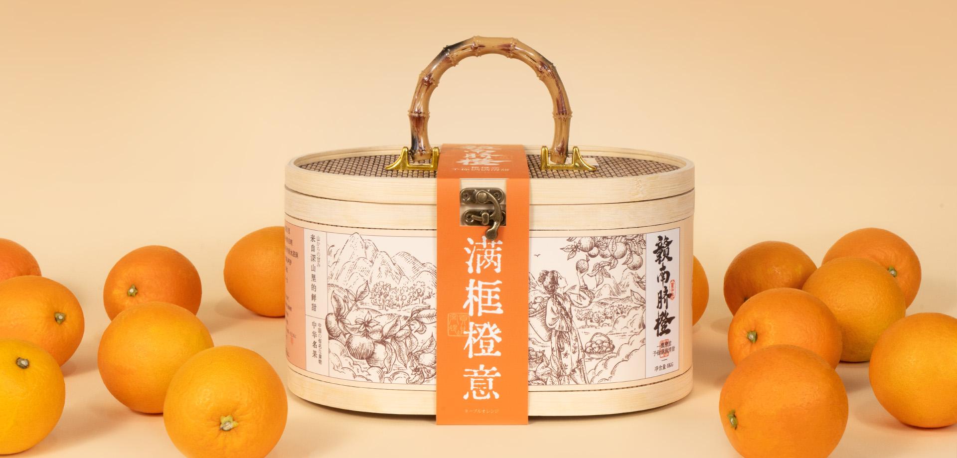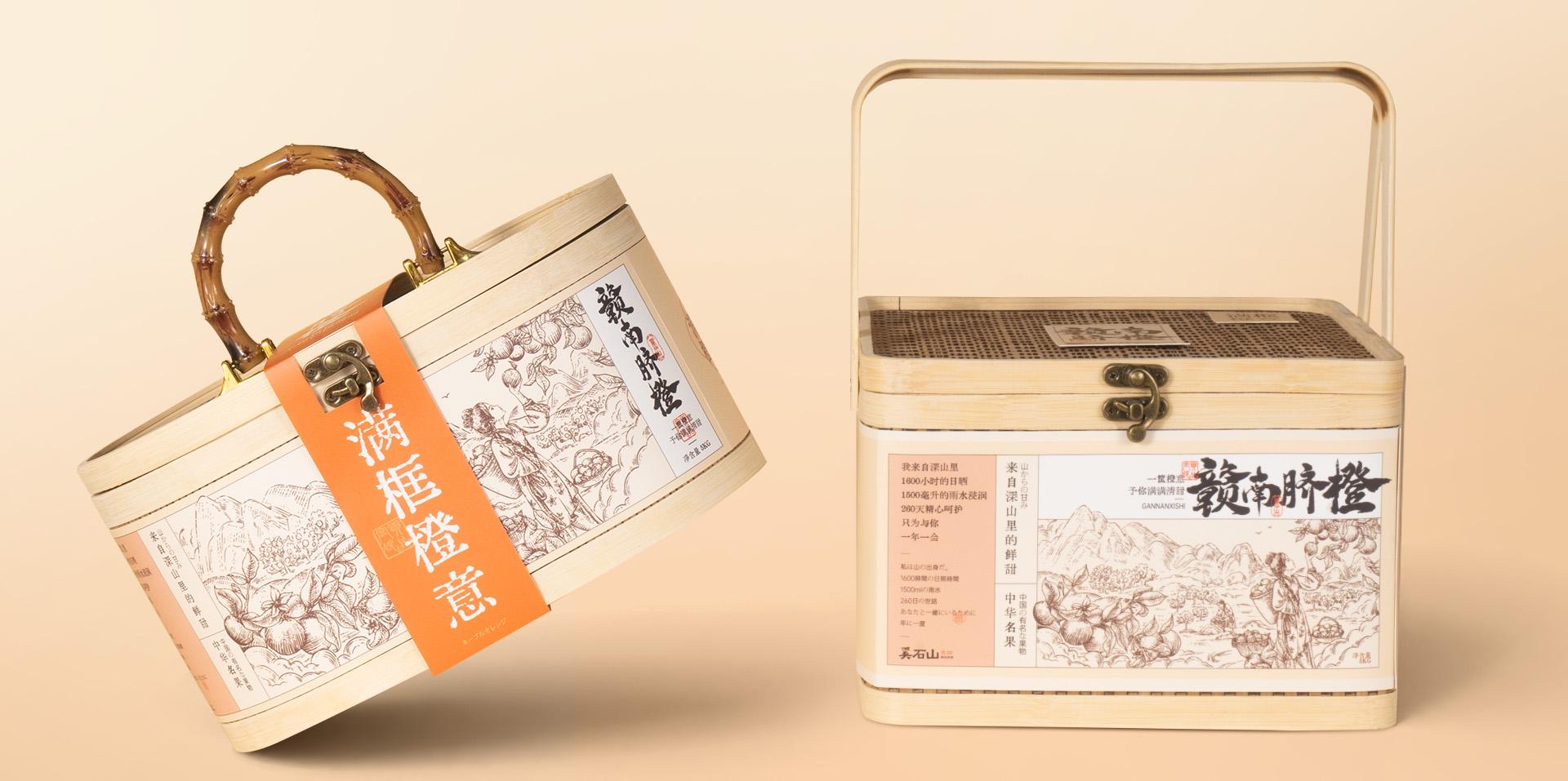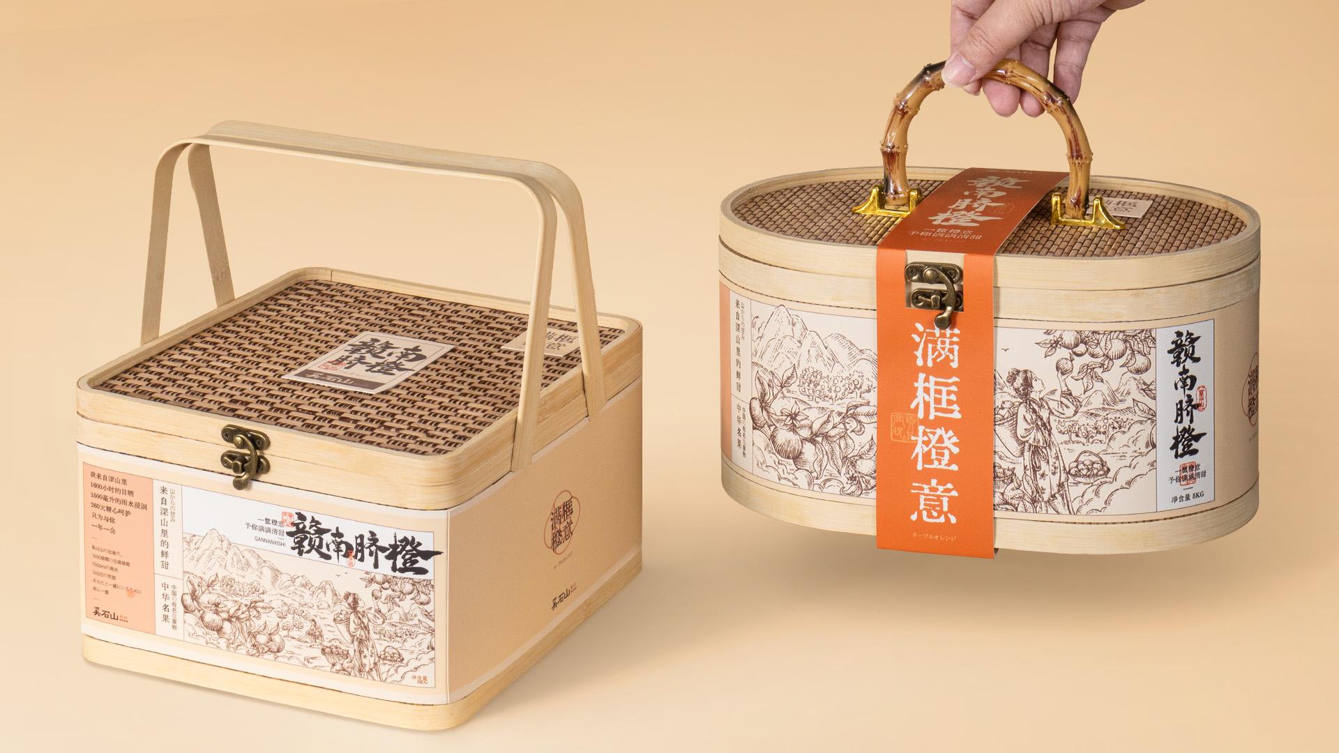 In terms of colorway, the packaging primarily adopts calm brown, accented with vibrant orange, which improves the overall texture and gives a strong visual impact. Moreover, the illustration as the visual center is surrounded by text information in an orderly manner, ensuring clear visual hierarchy while presenting a harmonious, balanced style. As for material selection, the packaging is crafted from eco-friendly bamboo through the traditional bamboo weaving process (commonly used in the baskets for orange picking), reflecting the brand’s commitment to modern environmental principles and achieving a rustic, natural aesthetic.