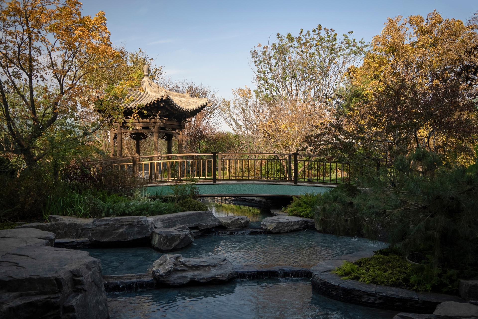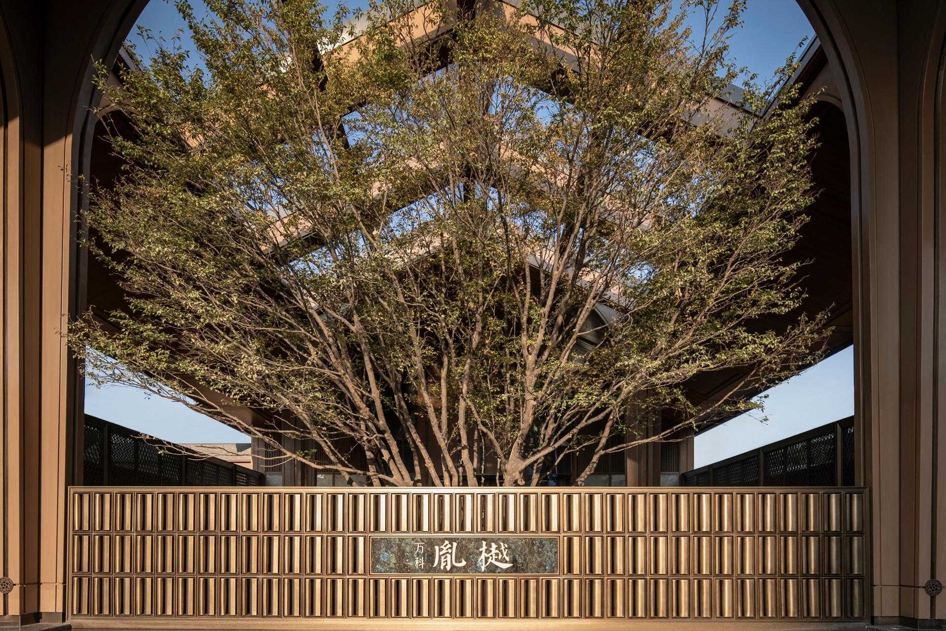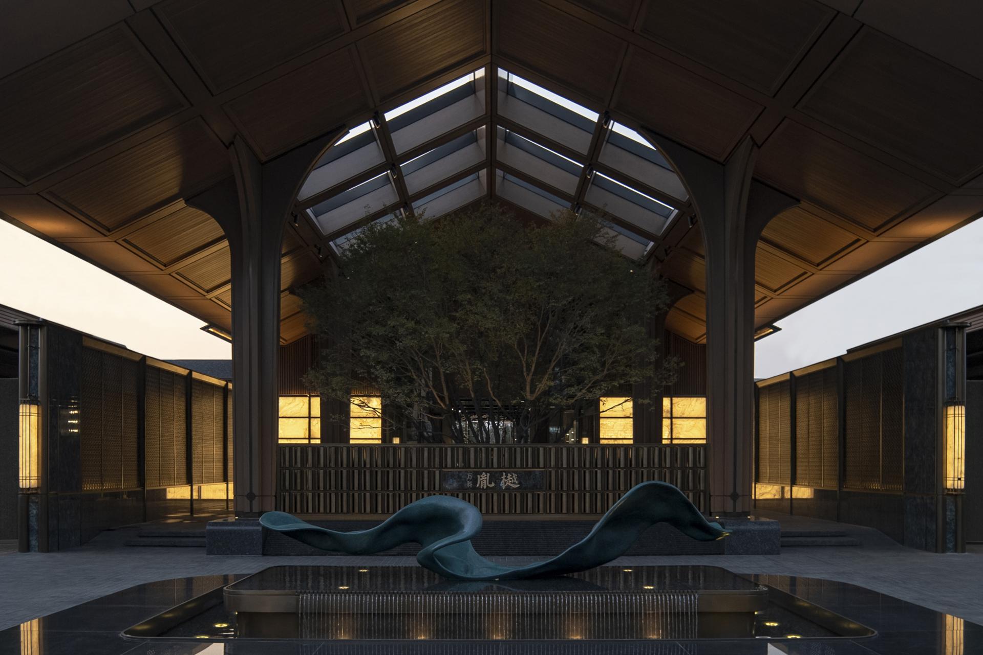 Under the eaves, four ginkgo trees and jade Ruyi sculptures bring a vertical sense of hierarchy and landscape control to the entire space. Jade Ruyi as a symbol of traditional culture, the choice of ginkgo is more unique, not only echoes the ginkgo of Shengjing Palace, its "silver" word is also "Yin", Yue is the shade, as if the image of Yin Yue is in front of you, showing the trend of welcoming guests, against the Yin Yue's charm style.