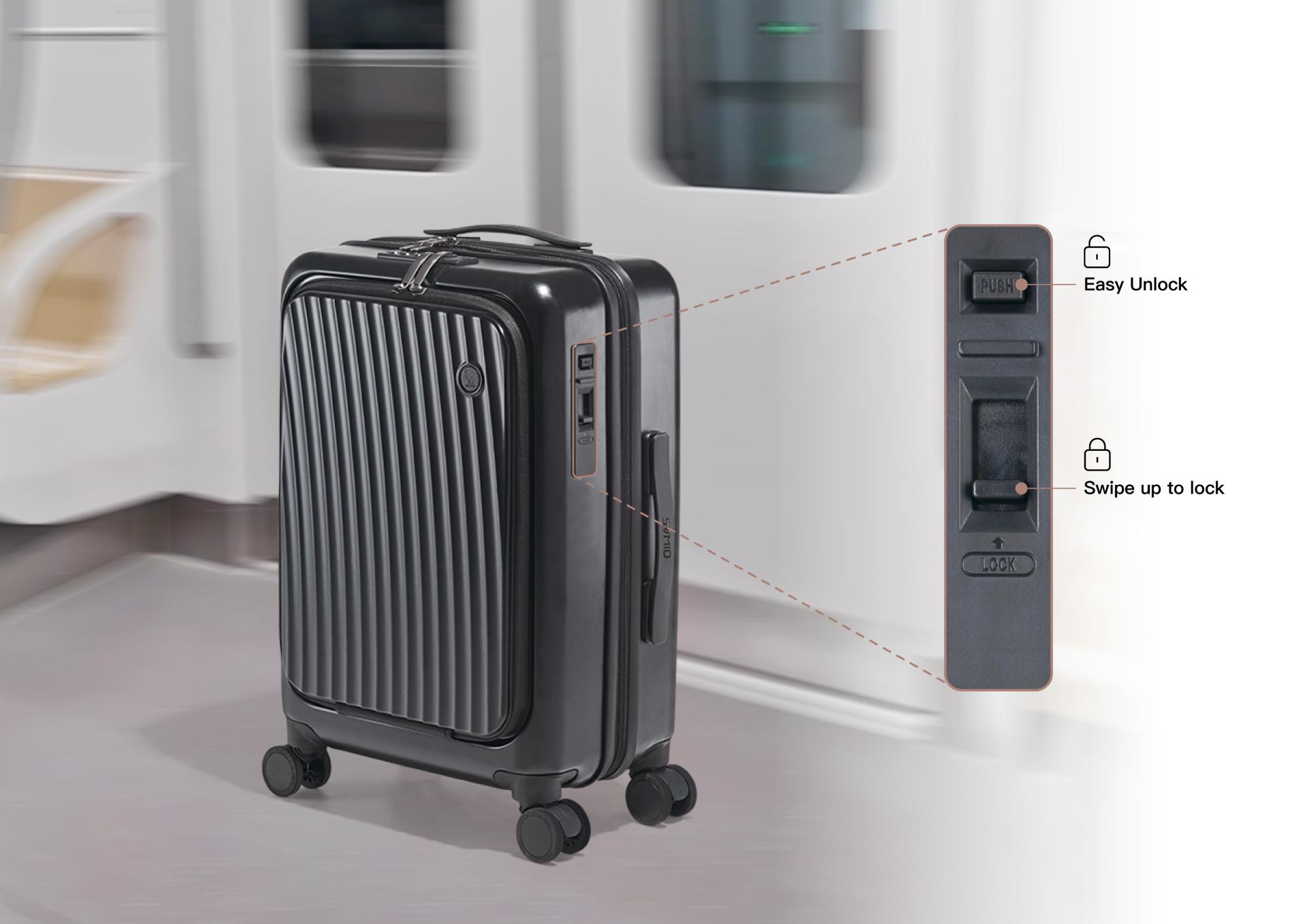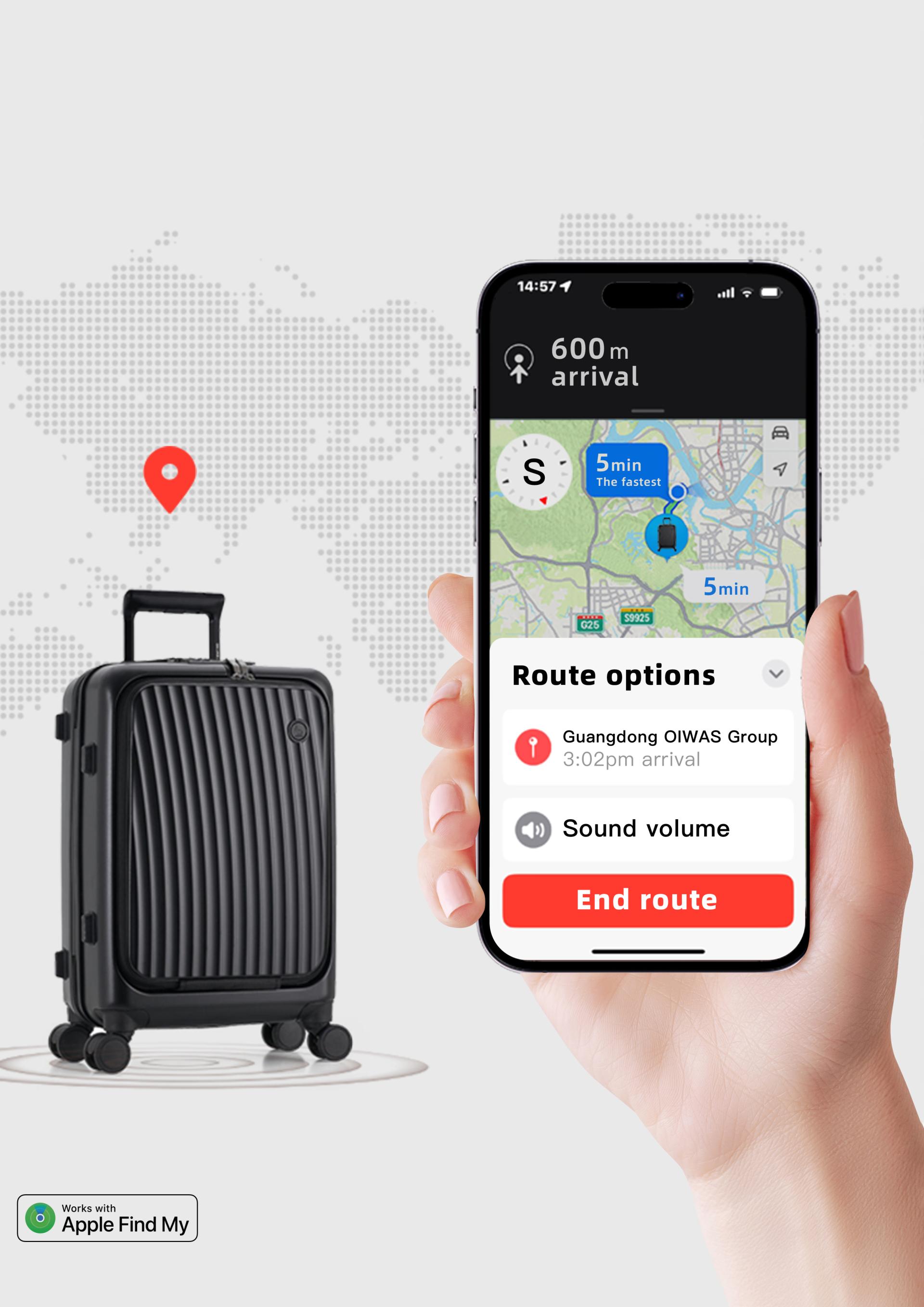 For better safety and convenience, the luggage adopts the Apple-certified FindMy network location technology and the ‘Notify me when lost’ feature so that users can pinpoint the location where they lost the luggage and receive timely notification, ensuring the safety of their luggage. Its one-touch braking system helps users effortlessly brake the luggage on a sloping road without bending, friendly to the elderly, people with limited mobility, and business people who travel frequently.