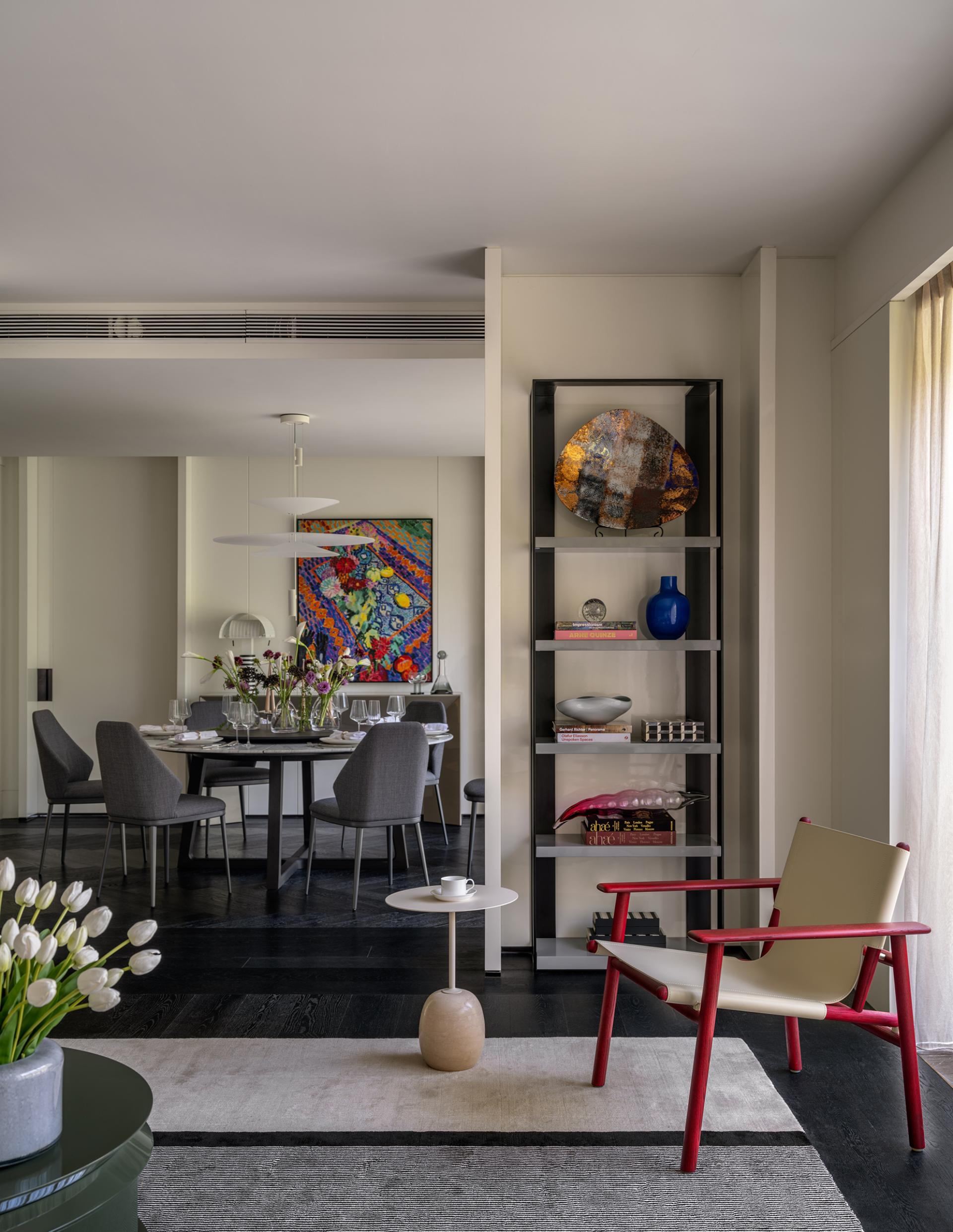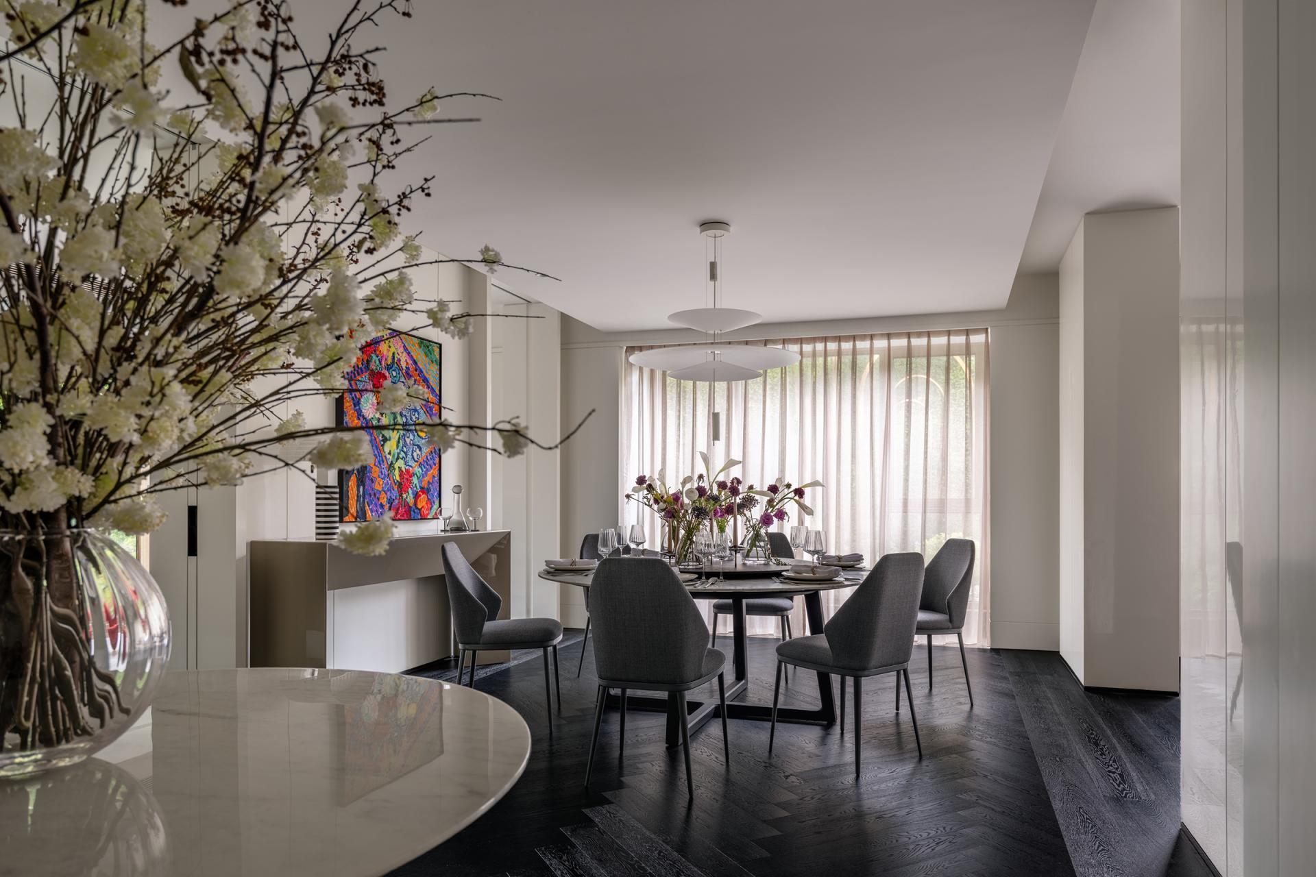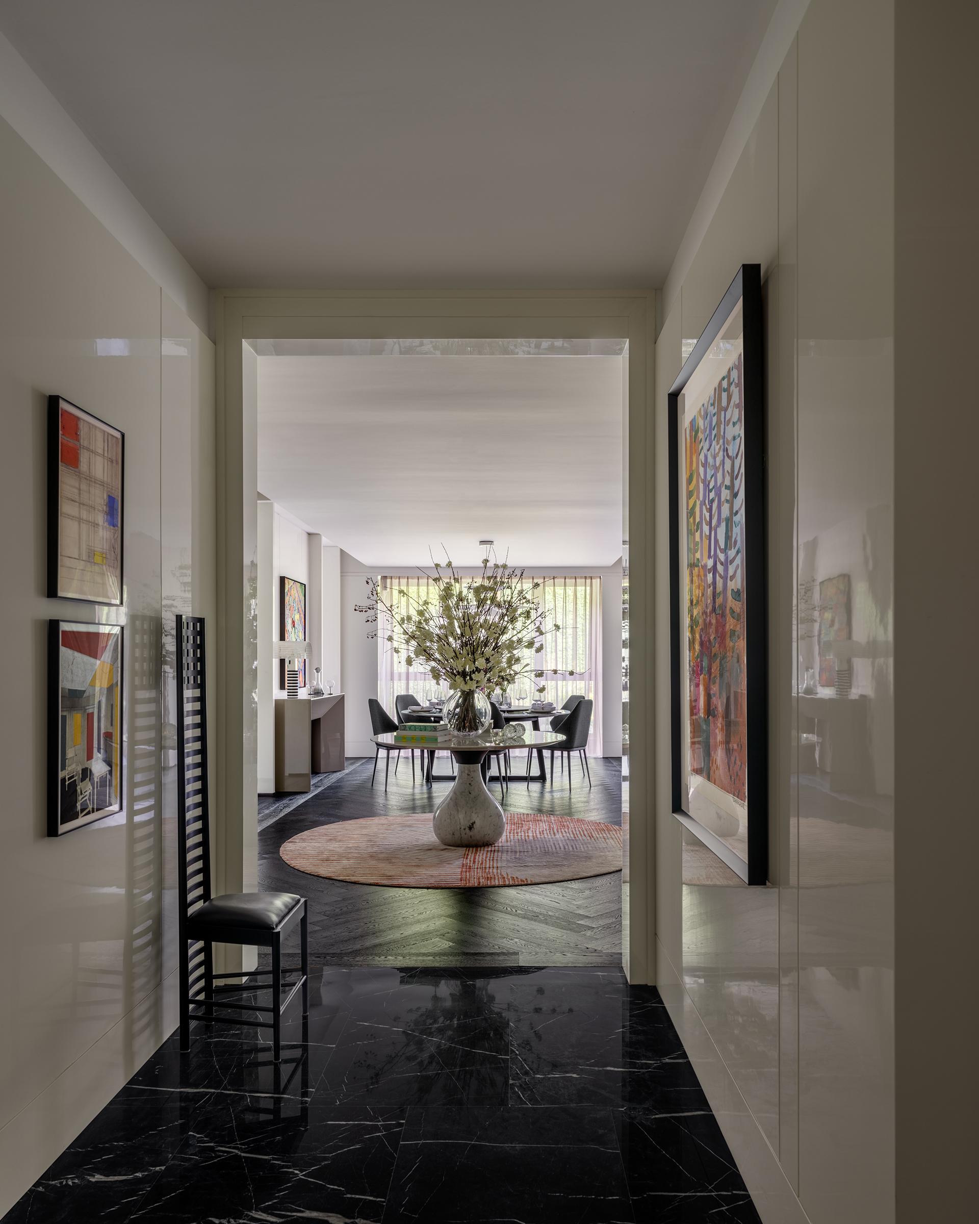 This apartment is situated in in Shanghai's Old West Gate, fragment of the historic Shanghai's Old City Hall. During the foreign concession era of heavy colonial influence, the Old City Hall remained an enclave of authentic Chinese culture and lifestyle.Though urban renewal has reshaped much of the historic site, its rich heritage has inspired us to rethink how contemporary design can can enhance the quality of life of the modern Chinese family while resonating with its cultural heritage.While contemporary design reflects our dynamic culture, from art to digital media, its essence often gets lost in chasing fleeting trends. Our approach balances innovation with classical and modernist principles, prioritizing timeless spatial qualities and human proportions. We've created a neutral canvas that bridges classical and modern elements, allowing the owner's evolving tastes to emerge naturally against an enduring backdrop. Underneath the apartment's simple yet elegant black and white look, the planning of the apartment is where we differentiate the client's project from the rest of the market. Taking inspiration from the site's historical context, we blended the modernist approach of big open space with traditional spatial quality of rich layering. For example, the foyer, with its intersecting halls, delicately balances classical spatial qualities with modern details. This space not only creates a powerful sense of arrival, but also serves as a clear boundary between the apartment's public and private areas. The main dining area was originally part of a large open space shared with the lounge/family room and living room, is now separated by two volumes to create more intimate spaces while maintaining a sense of openness and flow. While the layout was guided by a classical approach, it feels instinctive rather than rigid; the intentional planning dissolves into the subconscious, becoming second nature to daily life. In an era where design often chases the ephemeral, this apartment stands as a testament to our firm's core philosophy: delicate sense of spatial scale and proportion, as well as the harmony between classical order and modernist freedom. Here, contemporary design steps back, becoming merely a timeless backdrop allowing individual expression and continuous evolution.