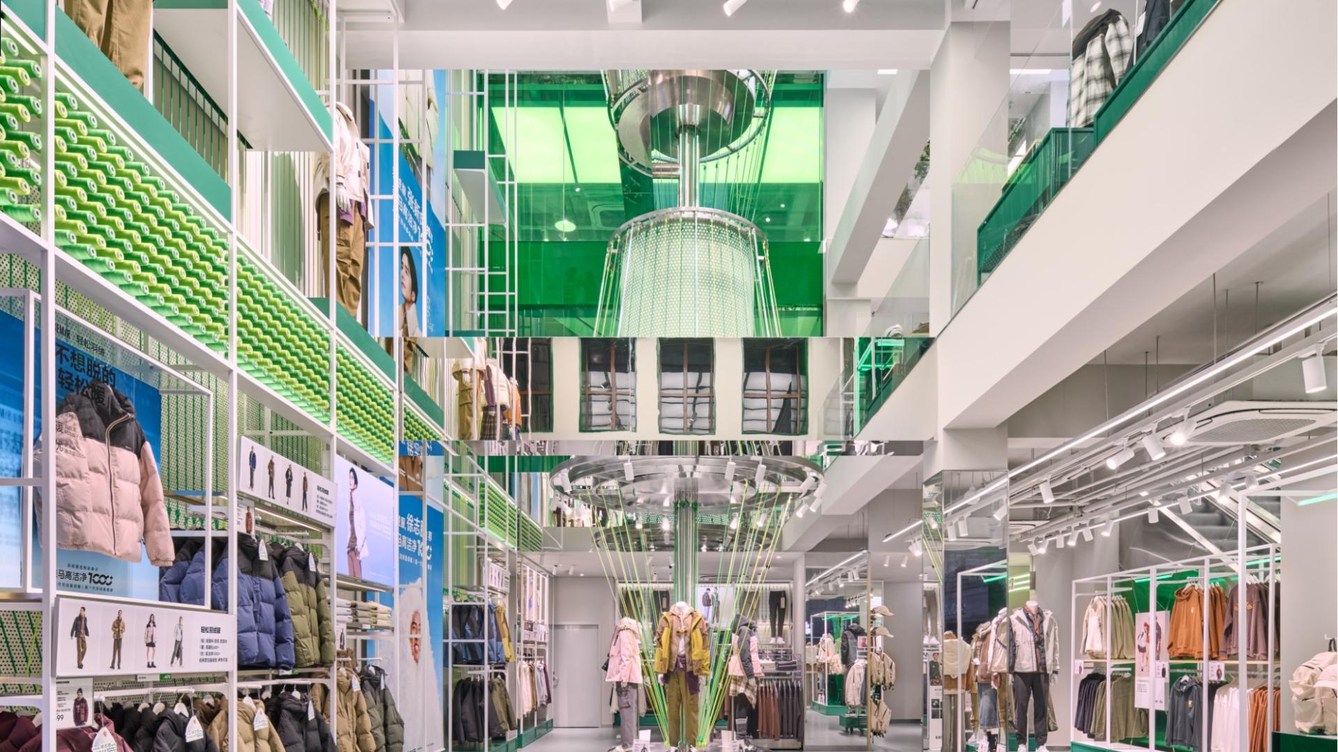 The open corridor enhances transparency and depth, while the clever integration of escalators and stairs optimizes the flow of visitors and strengthens brand recognition. The rotating clothing display offers styling suggestions, and the lounge area caters to relaxation needs. Green "forest" experience zone adds an outdoor feel, fostering a sense of community, while the “Smart Living” area showcases high-quality, cost-effective products.