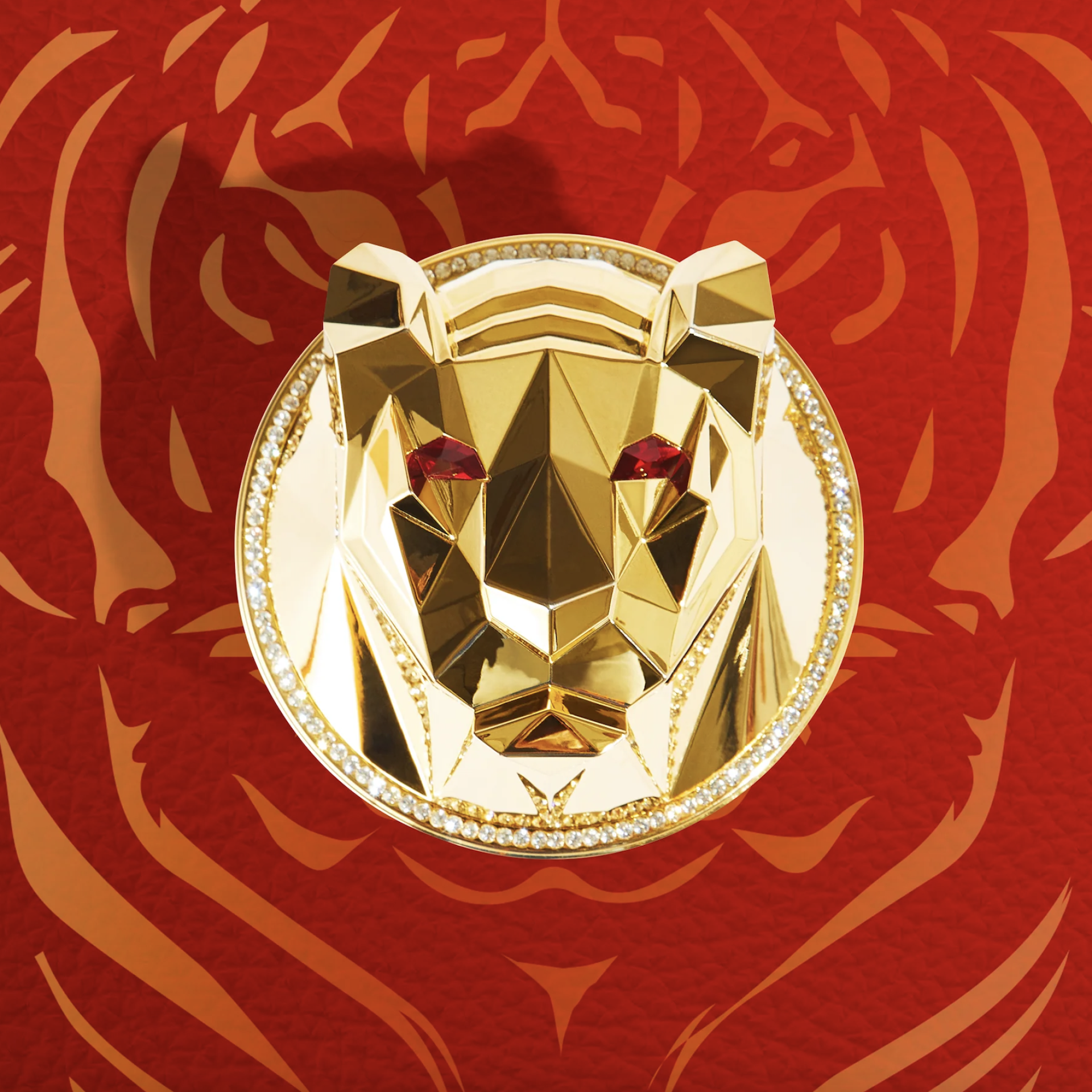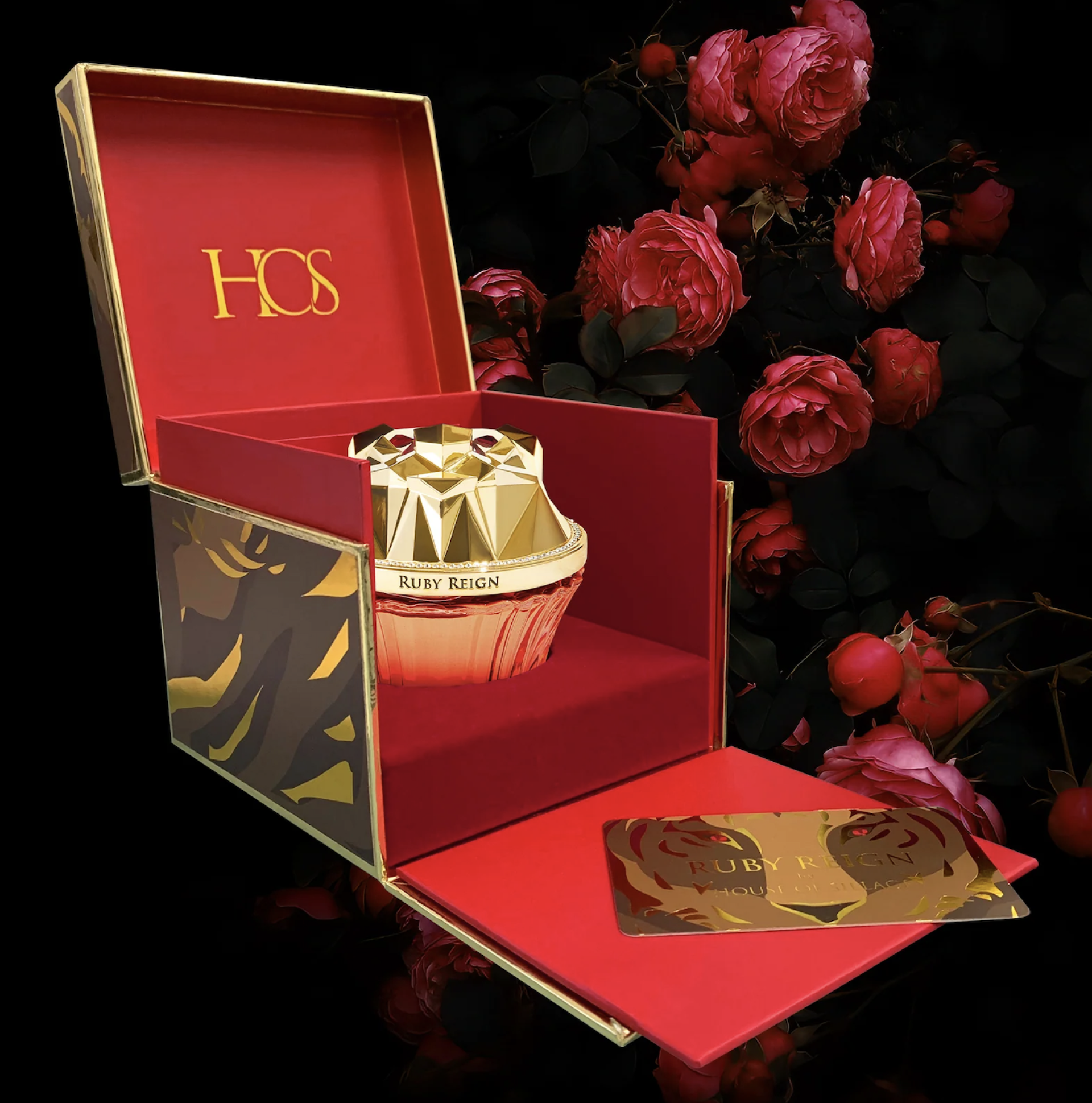 Inspired by the majestic Bengal tiger, Ruby Reign is a rich and powerful fragrance with a gold geometric shape Bengal tiger face with ruby colored eyes. The Ruby Reign fragrance is the second edition to that of the original Siberian Tiger Design of Emerald Reign. The fierce and courageous tiger design represents good fortune and courage to all, enveloped with the tiger’s love, honor and protection. Immersed with armor and the power of energy, and strength, the tiger’s true essence is captured with traces of Bergamot, Amber, Saffron, and Rose.