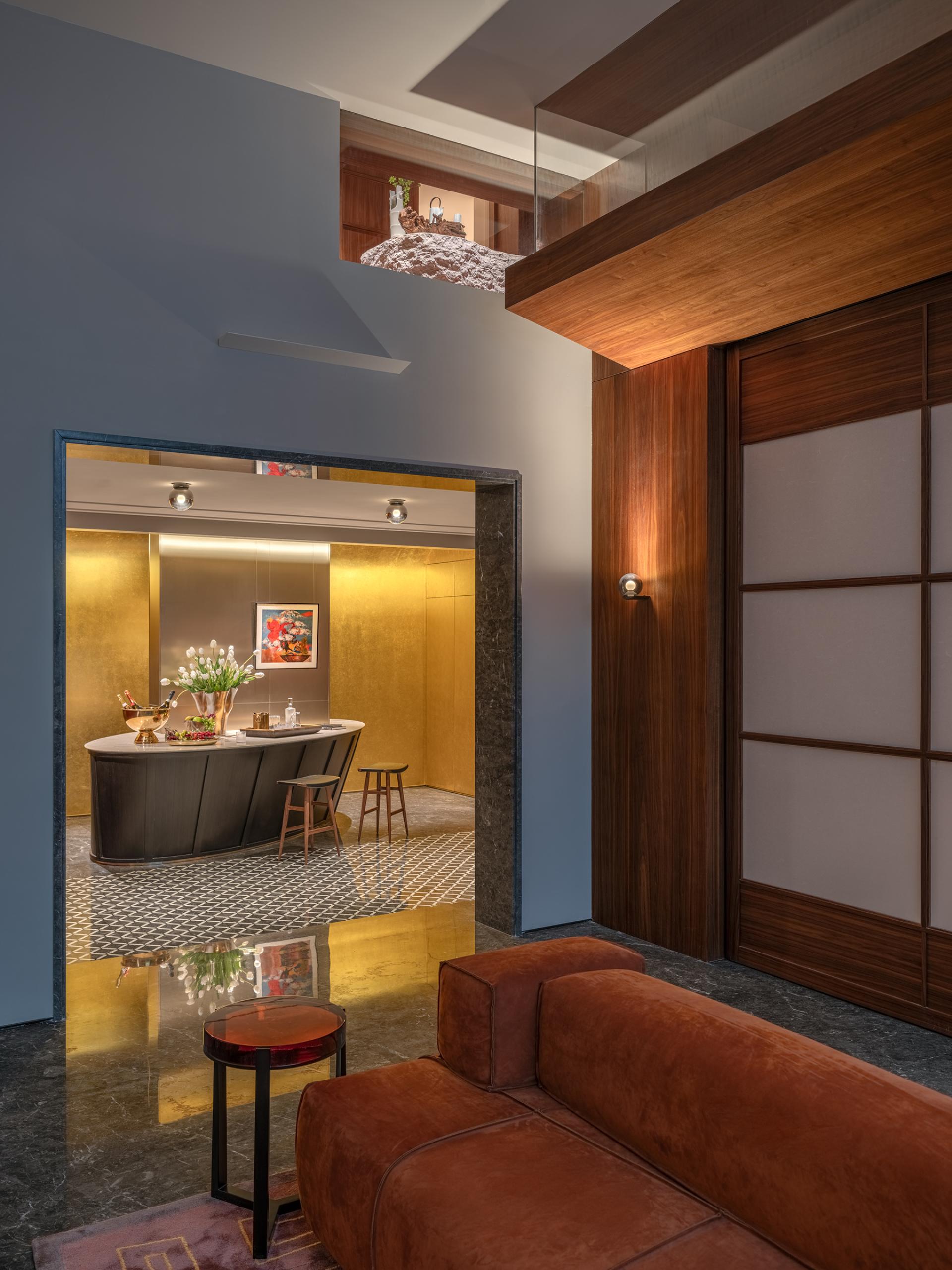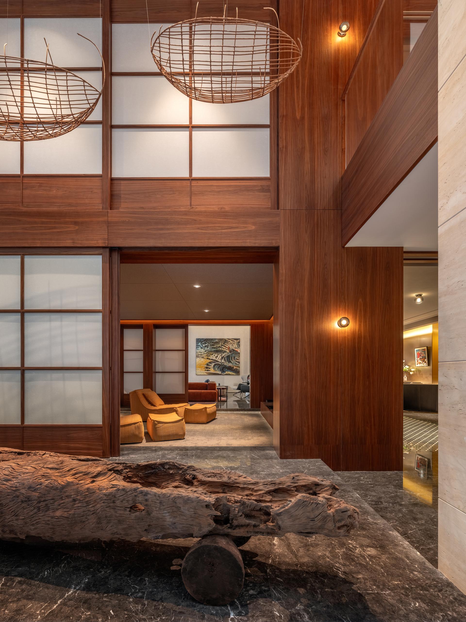 TianTong 198, located in Shanghai's North Bund, consists of high-end apartments, courtyard houses, and townhouses. The project reinterprets the site's historic Shanghai alley house typology for contemporary life. Inspired by Shanghai's 19th-century commercial and cultural golden age - a spirit still evident in the Bund's architecture and Shanghai's alley houses - we designed the courtyard house as a vessel for multicultural memories, creating a home where families can collect and pass down their diverse experiences through generations. In this courtyard model house, Design333 merges traditional Shanghai alley house and New York townhouse typologies, recognizing their commonalities in environmental context, spatial qualities, and lifestyles. We demonstrate that exceptional space is defined by proportion and function rather than size - a principle we believe is essential to 21st-century urban living. The seven-story courtyard house emphasizes verticality, distinguishing it from the project's horizontal apartments. The programming reflects modern Chinese family life: public spaces occupy the basement and ground floor, while private quarters span the second through fourth floors, creating clear boundaries of privacy. The basement features a double-height space centered around a Japanese-style machiya structure housing with a tea room above and media room below. The basement includes a living room, gold bar, wine cellar, and art space, with thoughtful visual connections creating openness in the subterranean space. The ground floor integrates indoor and outdoor living through a courtyard surrounded by formal living and dining rooms. Rather than maximizing room size, we introduced an intimate den within the living room through an open partition, creating varied social spaces. Each bedroom level expresses individual character through distinctive room and ensuite bathroom designs. The second floor's stair hall doubles as a family library, fostering intergenerational interaction. The master suite on the third floor features a carefully positioned sunroom that serves both as a bright study space and circulation hub while maintaining privacy from neighboring properties. Following our 'white box' approach, we emphasized living essentials through refined details like custom door hardware, wood paneling, and pure bronze handrails, reflecting the home's sophisticated spirit.