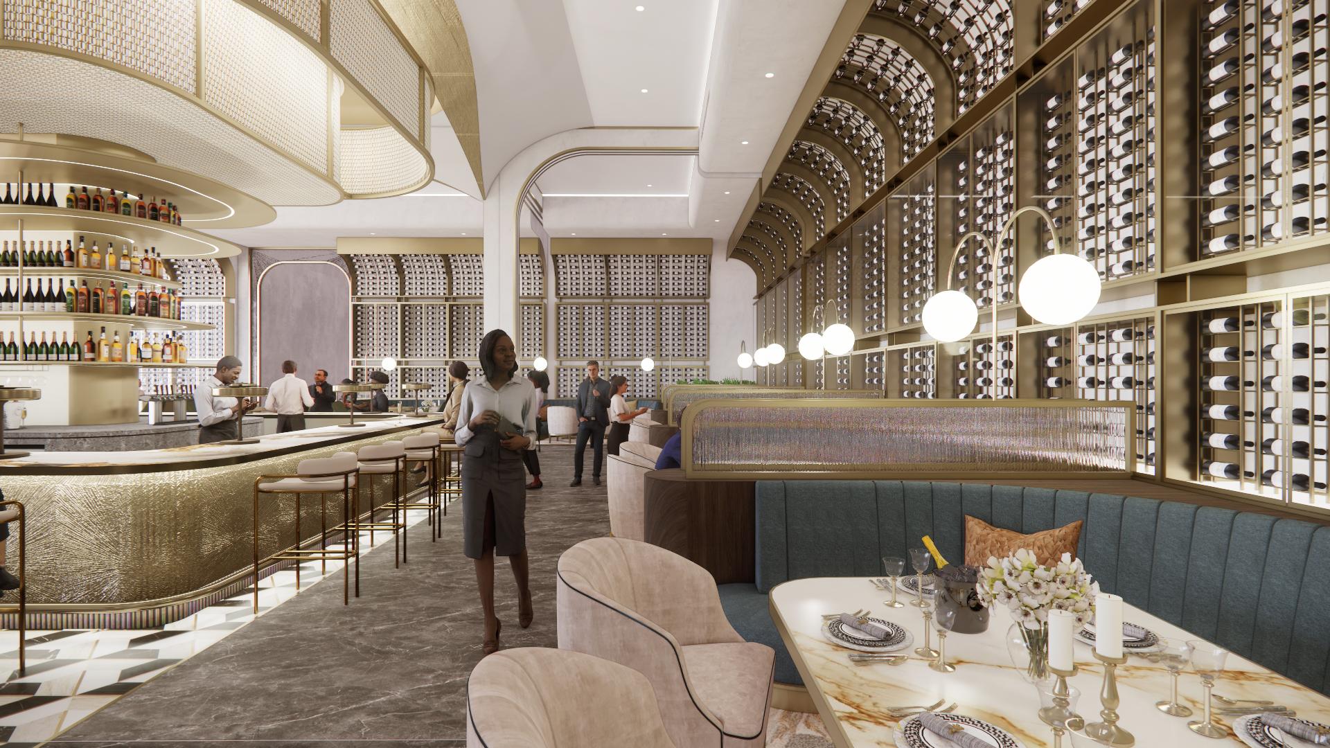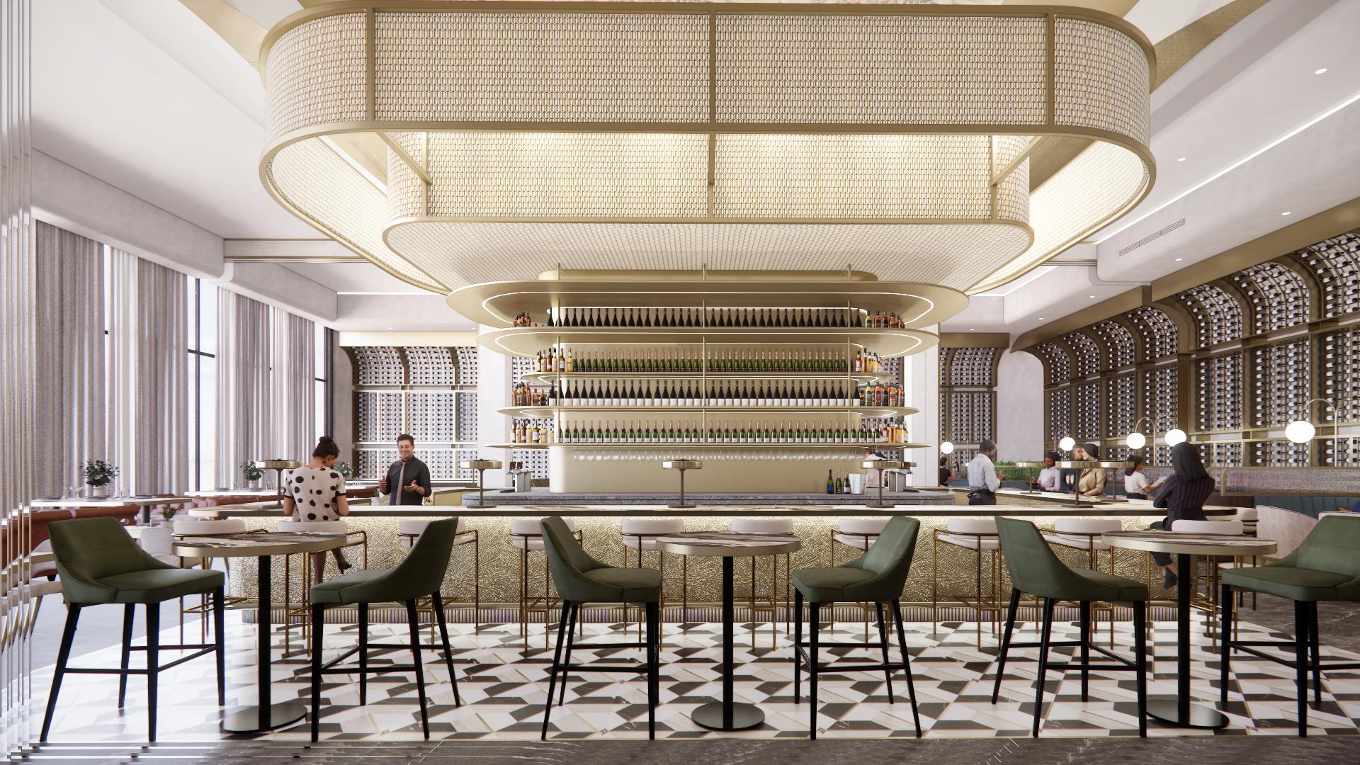 The ceiling above the bar area is high, creating an open atmosphere, making guests feel free and comfortable. The ceiling design gradually decreases from the center to the surroundings, forming a transitional sense of hierarchy, guiding the open social area to a more private and warm dining space. This design provides guests with a diverse experience of choosing social or quiet in different areas according to their needs.