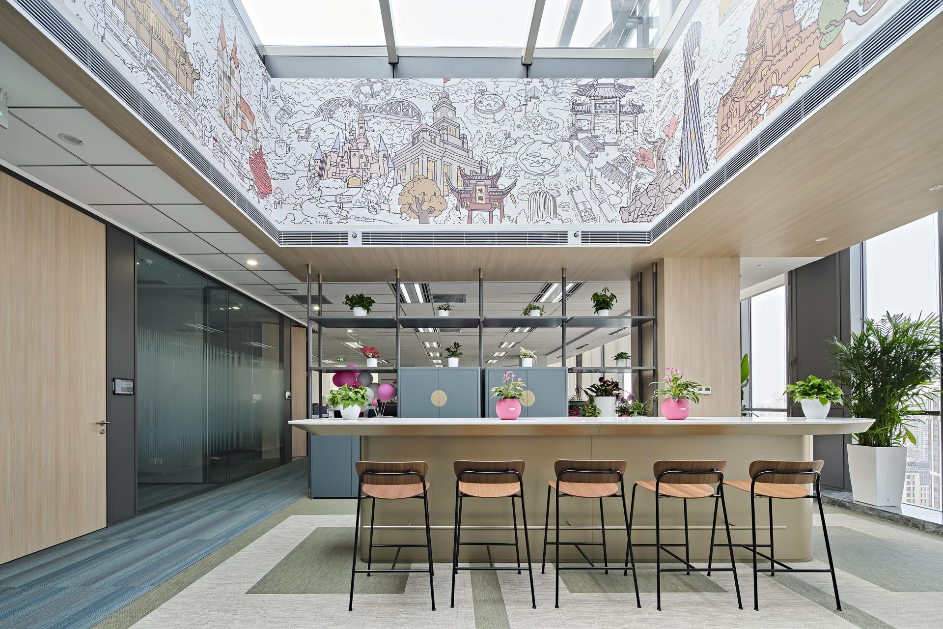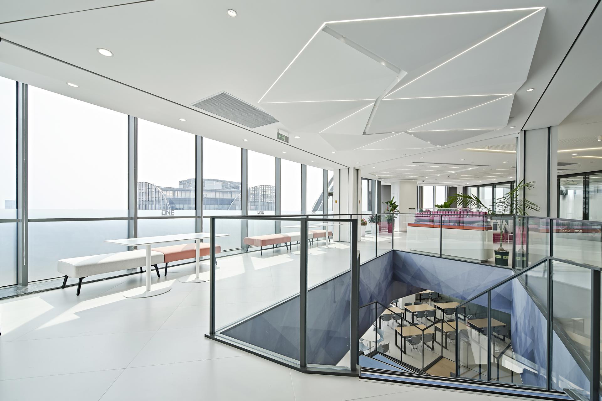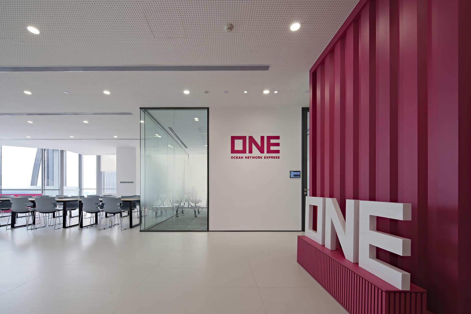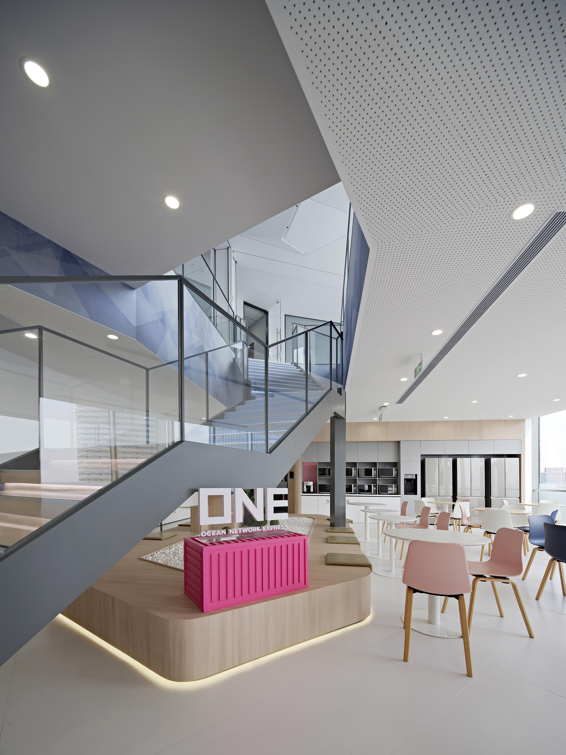 ONE (OCEAN NETWORK EXPRESS) is the world's sixth largest provider of ocean transportation capacity. Its latest Shanghai office was created by Jinhan team, with the design goal of customizing a workplace with ONE brand style. Located on the 25th and 26th floors at the top of the Shanghai ONE EAST building, it covers an area of over 3,000 square meters, and sits on the first line of the Huangpu River with an excellent view and location.