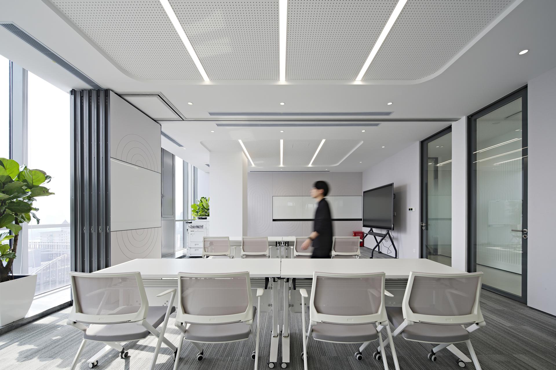 The layout strategy also ensures the optimal ratio of space utilization and comfort. Open offices, individual offices, workstations, meeting rooms and corresponding facilities are well thought out. Thanks to the open layout, interactive space is guaranteed while fully considering the composite use scenarios of it. The sliding door may be kept closed or open to cater for different demands in the future.