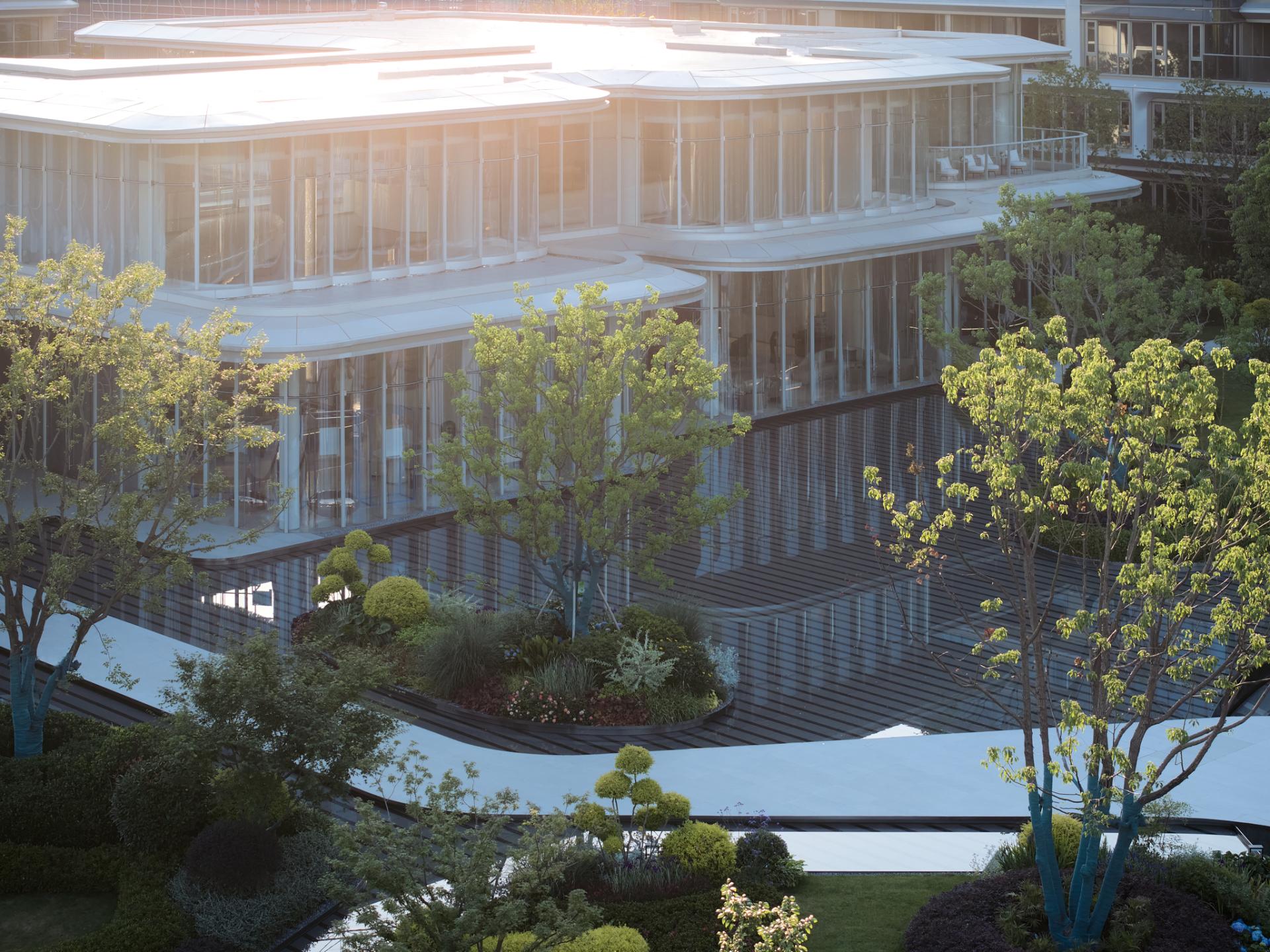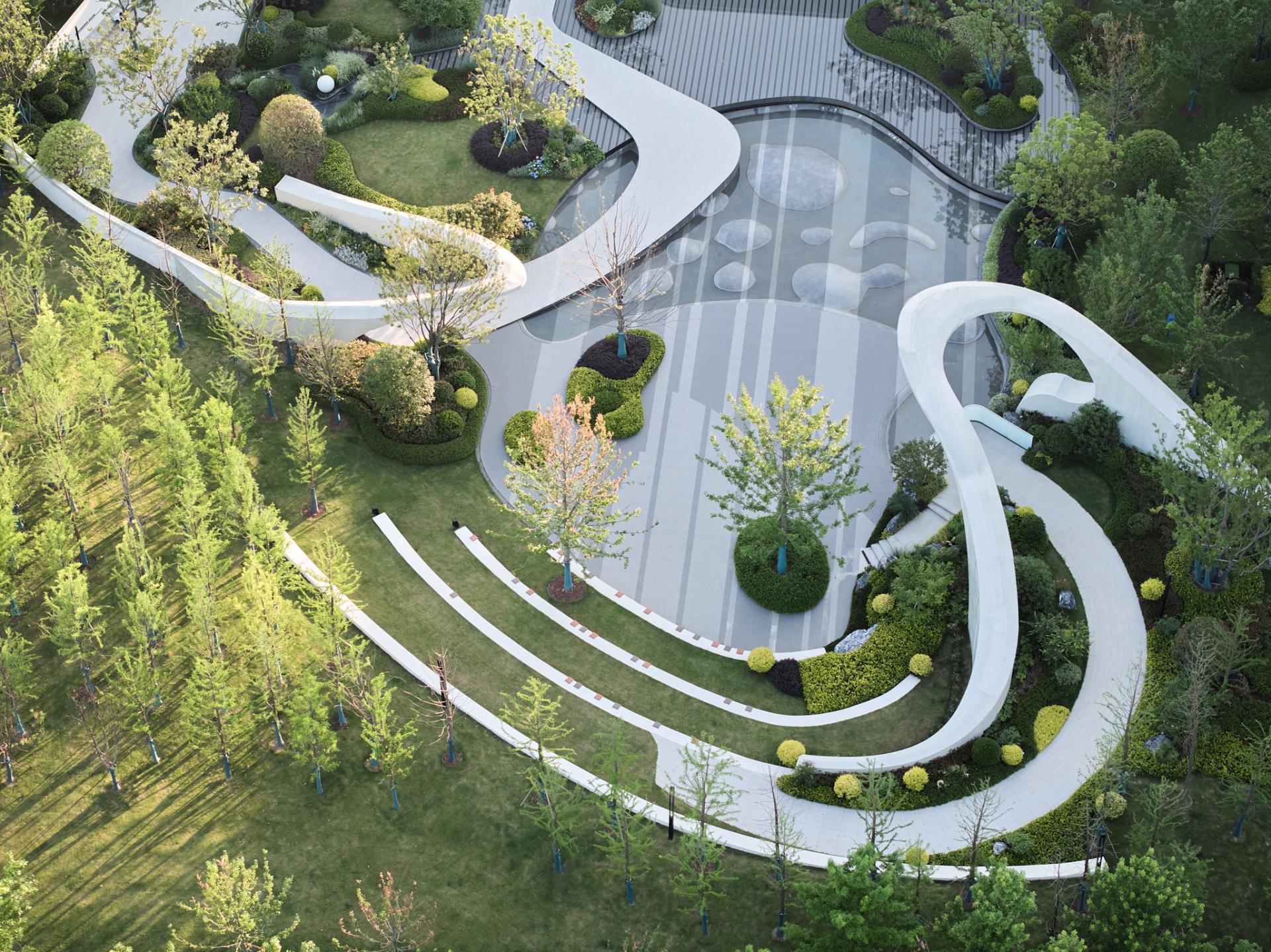 本案作为城市的展示窗口,以对内打造居民聚集和活动的商街公园+对外打造无锡文化的展示窗口为设计手法,将项目营造成一个衔接人文与自然的城市客厅。设计提取文伯仁《泛太湖图》的构图、场景、意境,以“泛于舟”为设计理念,打造一个潮起潮落的美学博物馆。通过现代艺术的设计手法,将太湖的自然景色与无锡的文化底蕴臻藏,形成有灵魂的文化场所、有生命力的公共空间、太湖的全新形象地标。