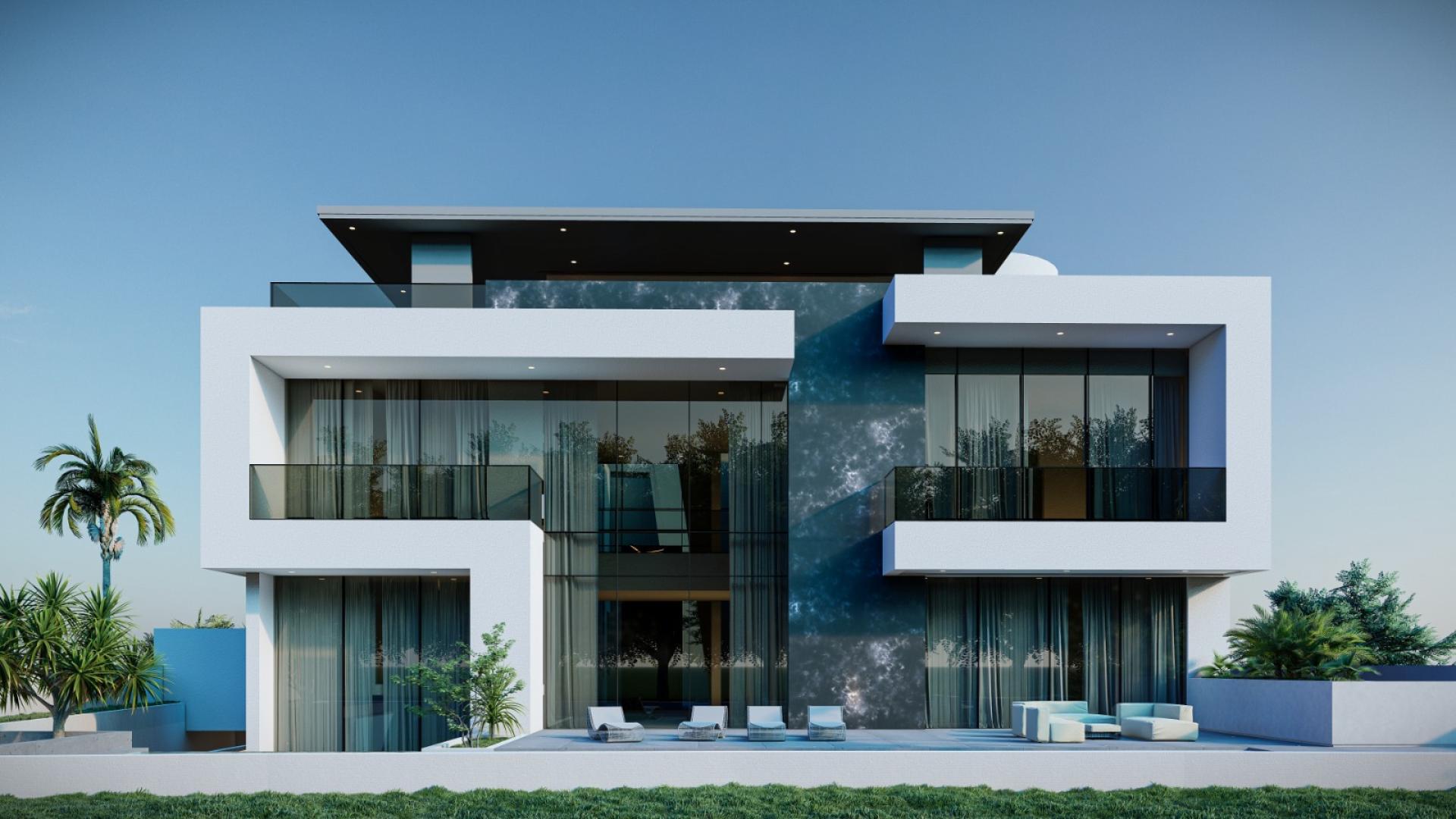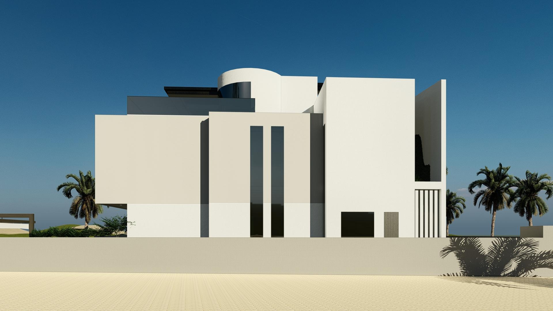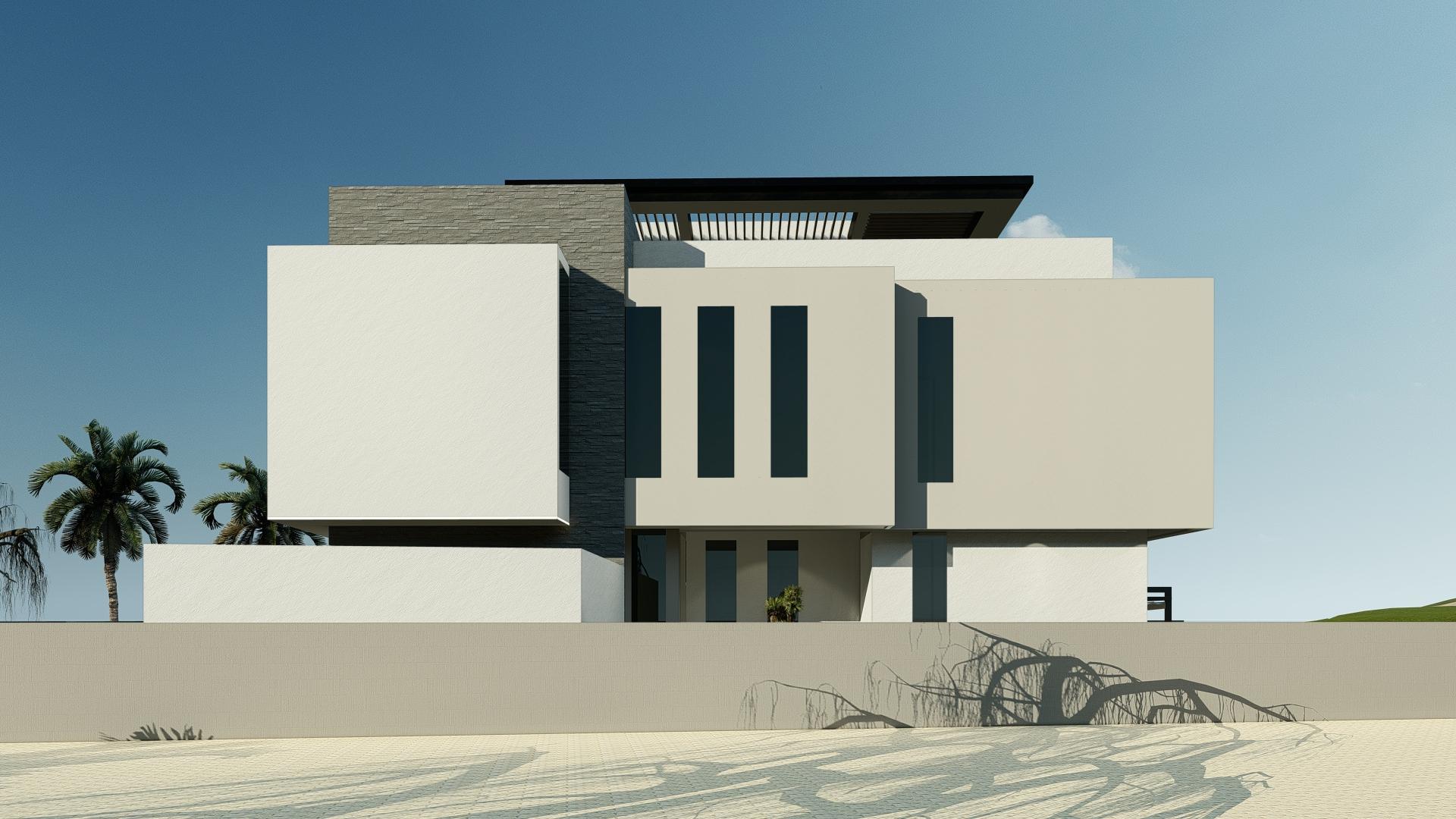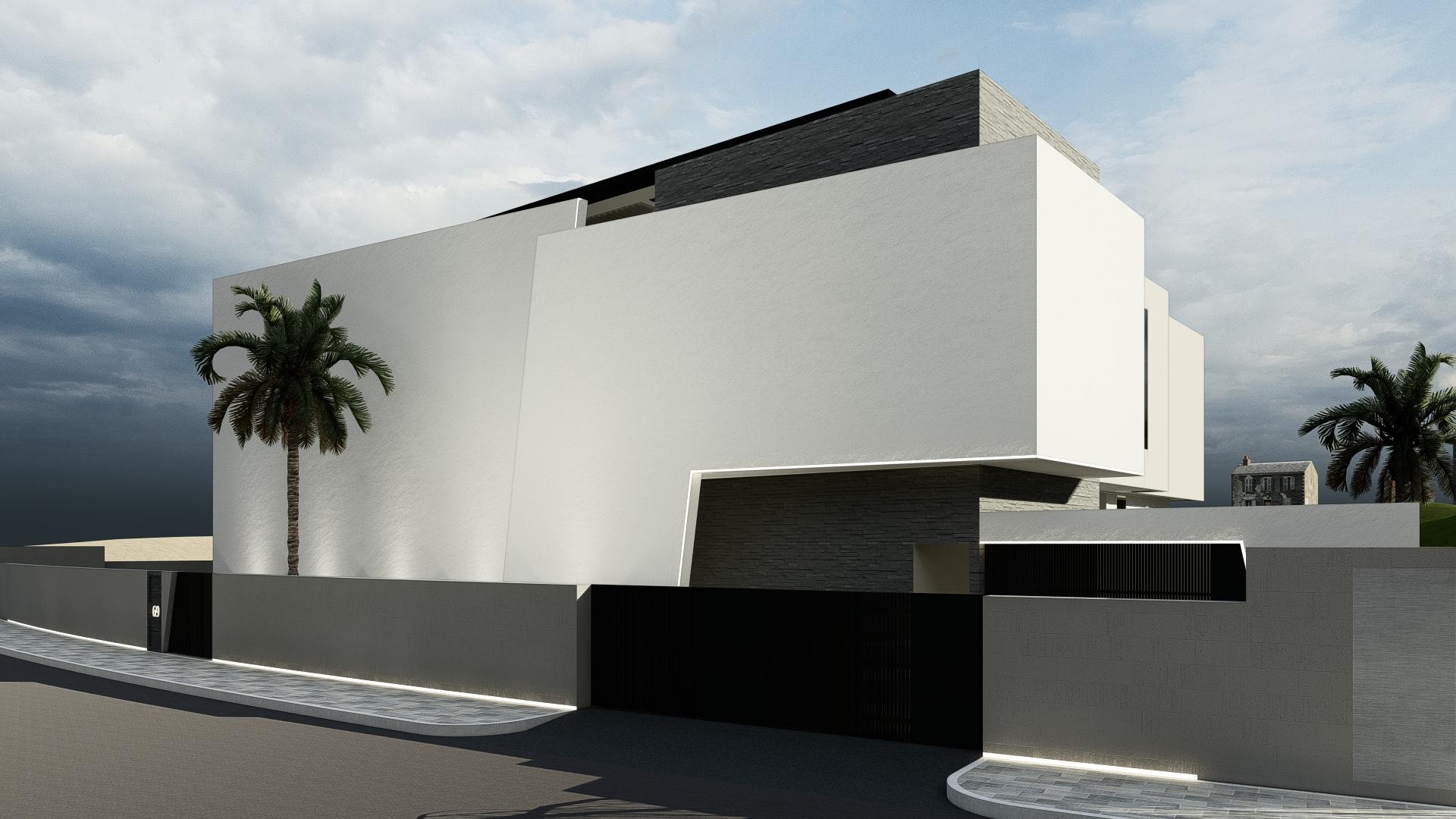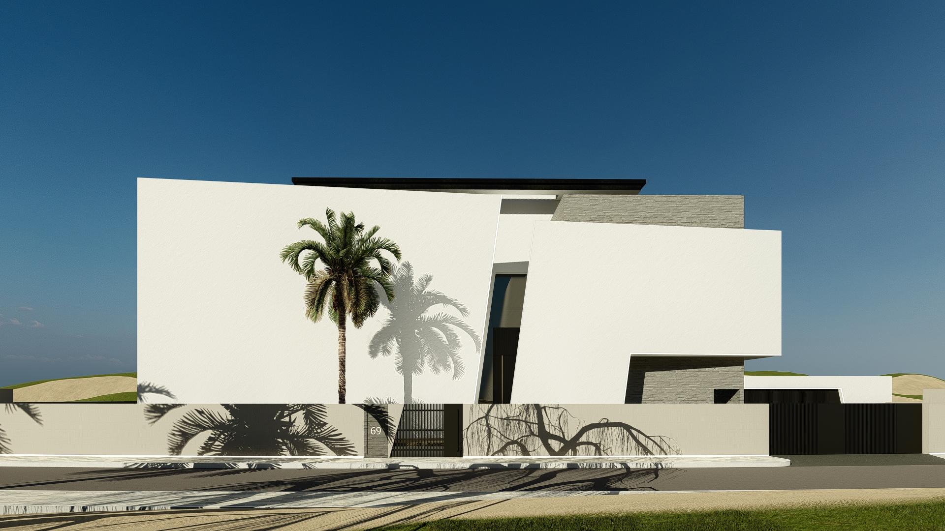 This is a modern villa located next to a golf course, standing out in the verdant field with its Brutalist architectural style. The environment and architecture coexist harmoniously, showcasing a tranquil and elegant atmosphere of modern living. The exterior design of the villa is bold and straightforward, with irregular geometric shapes giving the building a strong visual impact, and the overall architectural lines are simple and clear. The facade utilizes the raw texture of limestone, displaying an unadorned natural beauty. The interior space of the villa is spacious and well-lit, with every corner meticulously designed to ensure that residents can enjoy the best living experience. Despite its rugged exterior, the interior conceals exquisite design, reflecting the high demands of Brutalist architecture for comfort and functionality while maintaining a wild appearance. Large glass windows and open terraces bring the outdoor scenery indoors, allowing residents to always feel the breath of nature and coexist harmoniously with the surrounding golf course landscape.