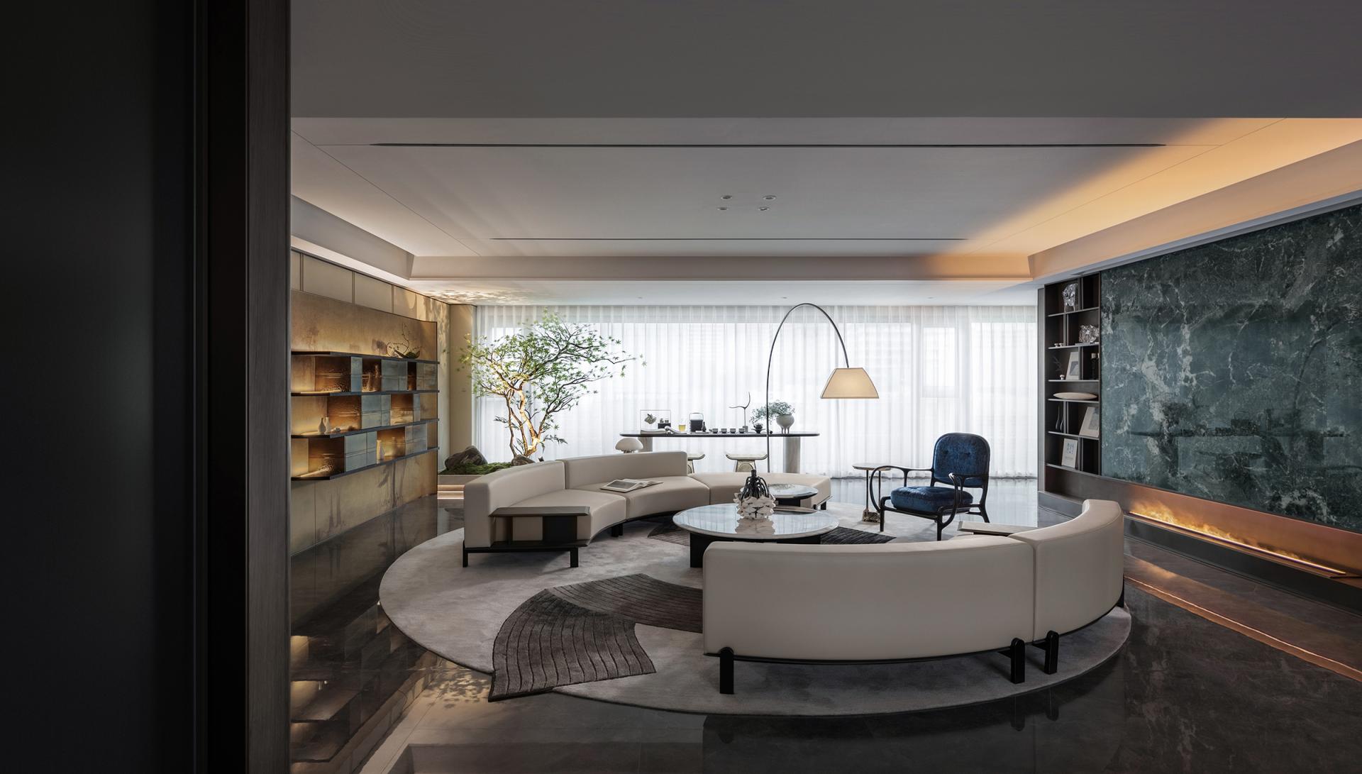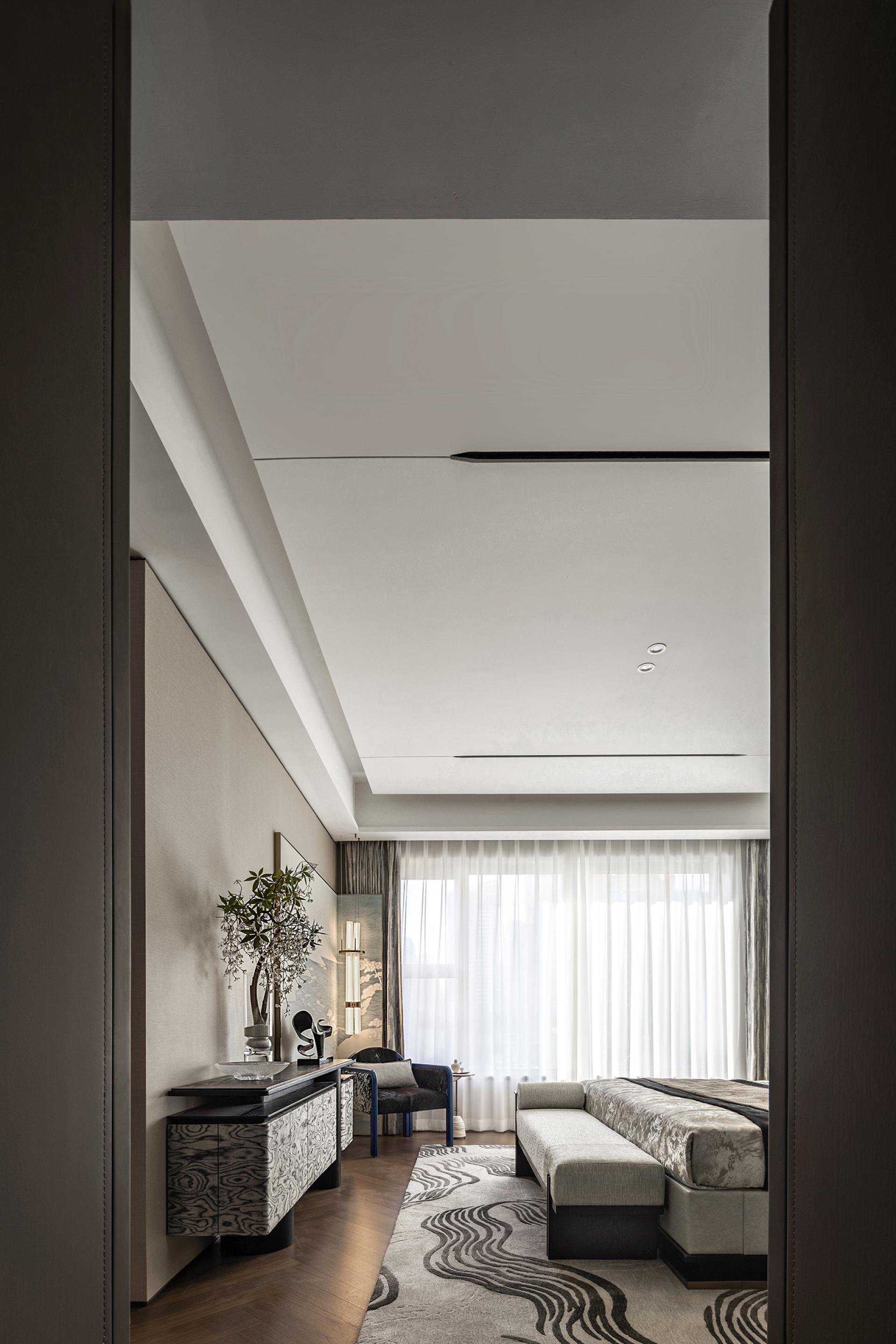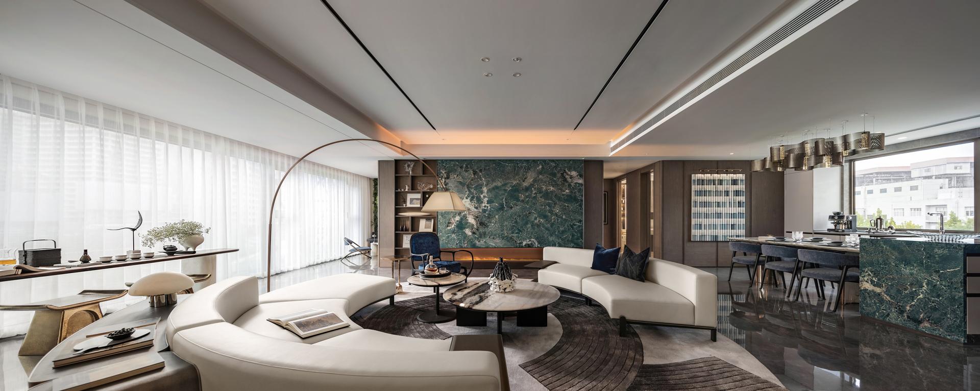 Poetry has two sides, one is culture, the other is life. A beauty that does not belong to the north makes Jinan a unique existence, when the heavy historical culture and modern will overlap, giving birth to unique customs and customs, for this city, here, at this time to provide "long wind from the sky, slowly blowing my heart" relaxation, and deep cultivation of cultural identity in the blood. Throw away the pile, about 18.6 meters large southward face width to bring the extension of the landscape, 235 units with an unreplicable scarcity value, with a quiet quality. Culture is hidden in the embellishment of beauty. With the Jinan famous scene into the painting, the Magehua Mountain in the misty rain poetic sense of space, in the form of hanging screen into the room. The landscape in the screen is quiet, and the fireworks in the field are human. Colored in the home, dark green stone and metal plastic muscle feeling soft into the sapphire blue single chair in the vivid charm, white light tone of the double arc sofa cleverly harmonize the space of simplicity and modernity, so that cultural attributes and comfortable life symbiosis. To measure the space scale by design, the setting of the double master bedroom is fine and elegant everywhere, and the walk-in cloakroom and independent bathroom space achieve the dual satisfaction of privacy and living enjoyment. The design of return to demand allows the residents to relax and sleep well. Wisteria flowers whirling, easy and slow life view lightly permeates every place in this home. The master bedroom enjoys a luxurious and transparent spatial scale, the entrance door and independent entrance are set up with privacy and degree, and the creation of artworks and eastern views, relying on the scale of details and the logic of color, embellish the warm daily life. The artifacts designed to render the quaint atmosphere accompany the body, a cup of tea, a gust of wind, the fringe dancing by the bed, life is filled with more imagination.