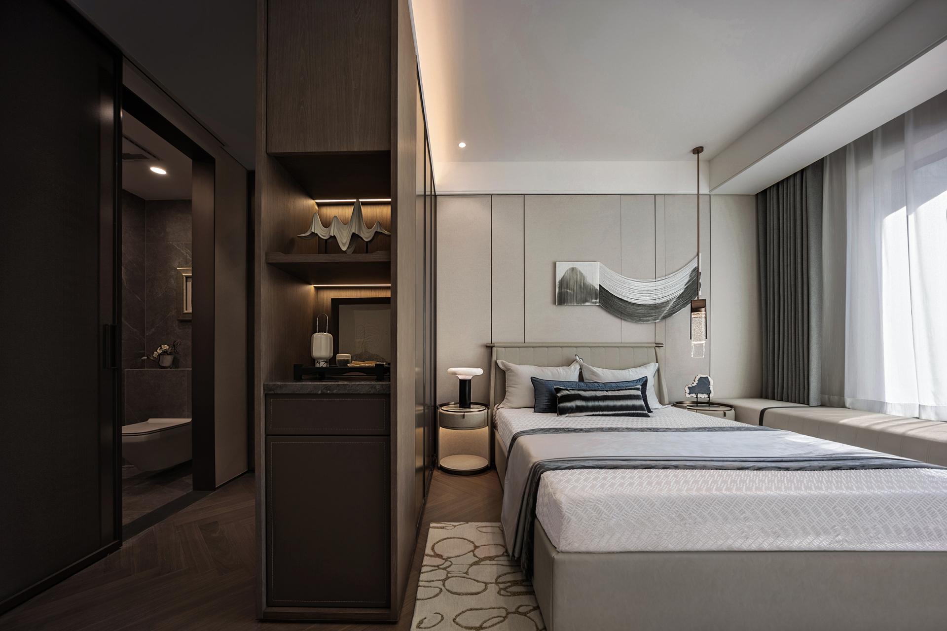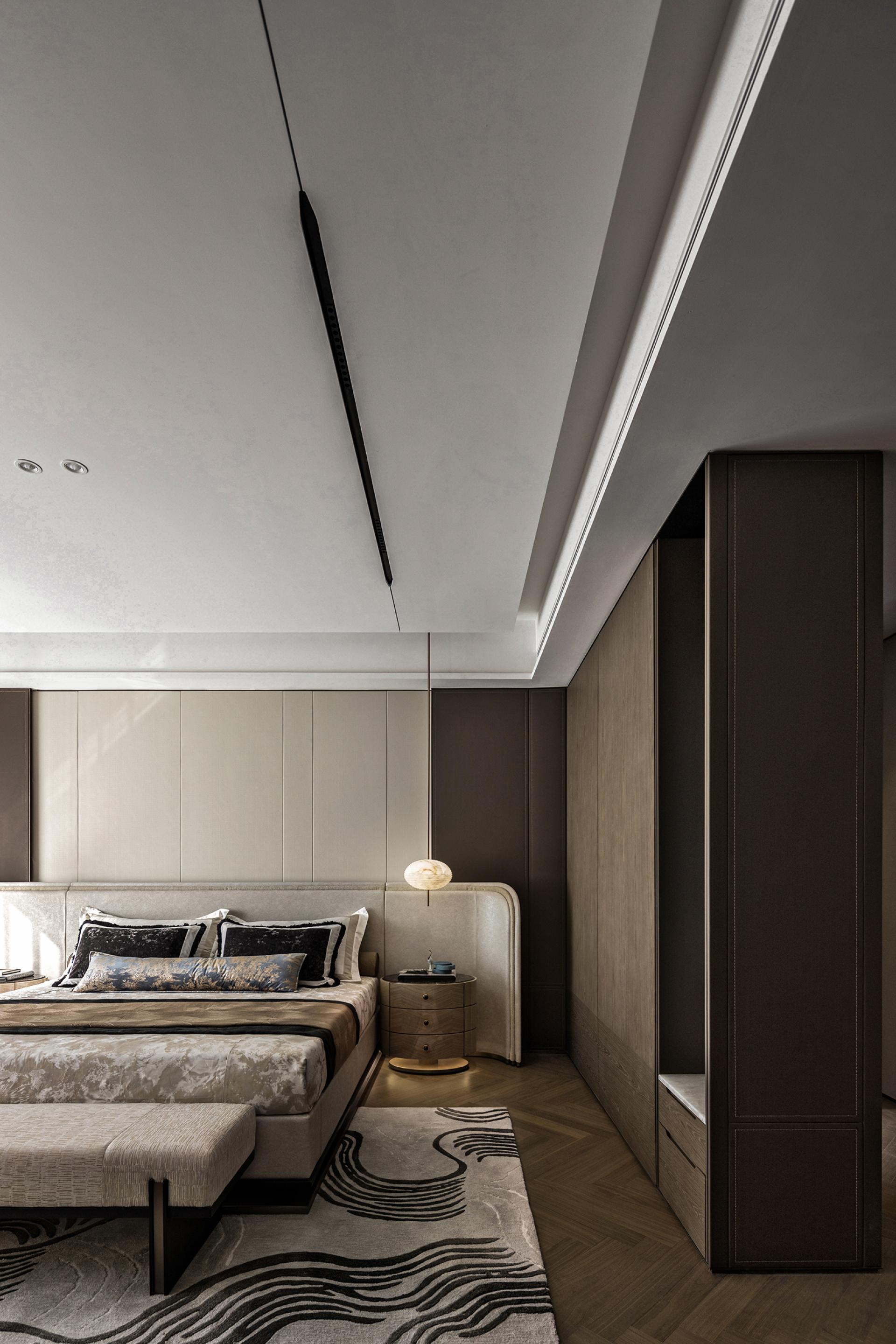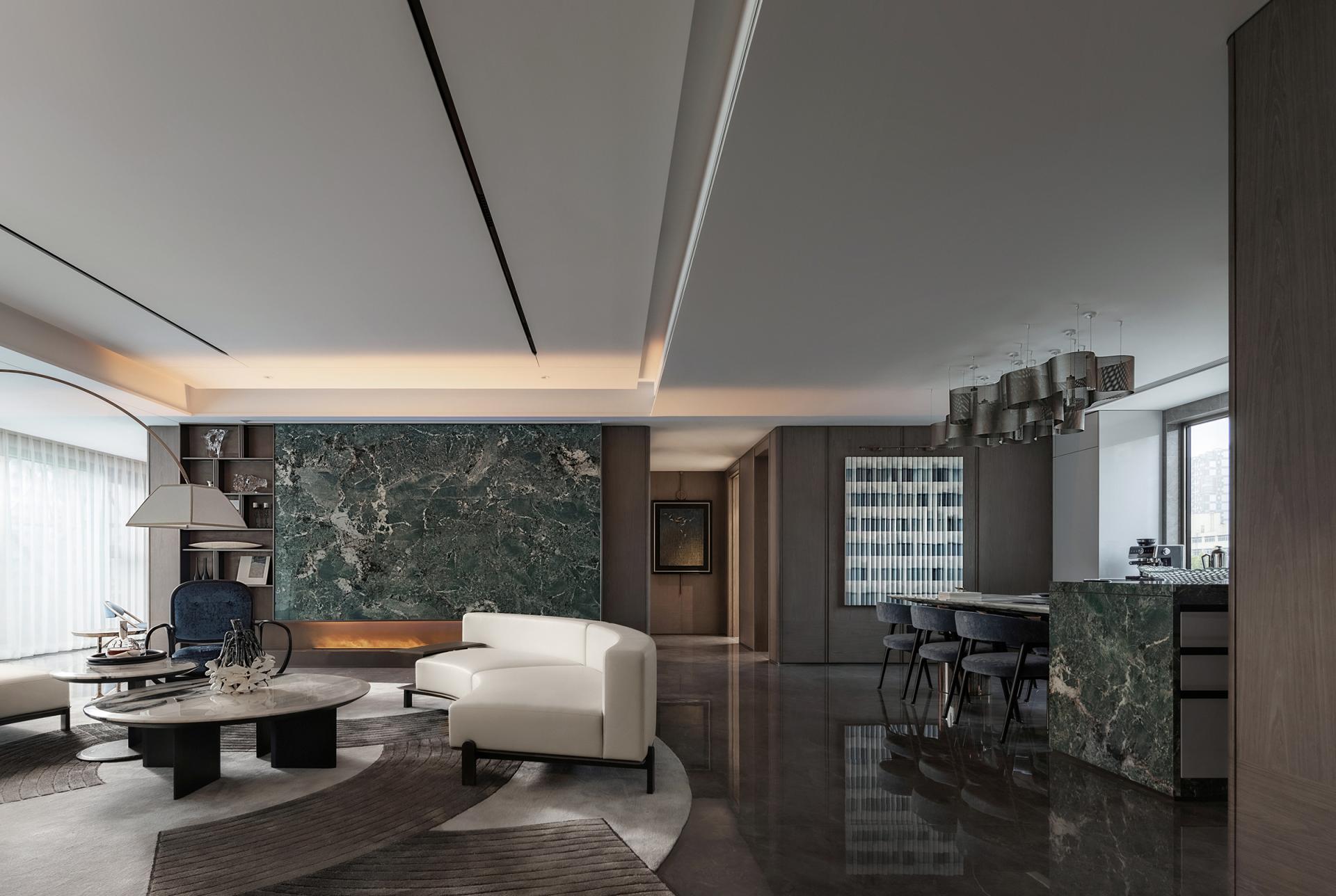 Poetry has two sides, one is culture, the other is life. A beauty that does not belong to the north makes Jinan a unique existence, when the heavy historical culture and modern will overlap, giving birth to unique customs and customs, for this city, here, at this time to provide "long wind from the sky, slowly blowing my heart" relaxation, and deep cultivation of cultural identity in the blood. Throw away the pile, about 18.6 meters large southward face width to bring the extension of the landscape, 235 units with an unreplicable scarcity value, with a quiet quality. Culture is hidden in the embellishment of beauty. With the Jinan famous scene into the painting, the Magehua Mountain in the misty rain poetic sense of space, in the form of hanging screen into the room. The landscape in the screen is quiet, and the fireworks in the field are human. Colored in the home, dark green stone and metal plastic muscle feeling soft into the sapphire blue single chair in the vivid charm, white light tone of the double arc sofa cleverly harmonize the space of simplicity and modernity, so that cultural attributes and comfortable life symbiosis. To measure the space scale by design, the setting of the double master bedroom is fine and elegant everywhere, and the walk-in cloakroom and independent bathroom space achieve the dual satisfaction of privacy and living enjoyment. The design of return to demand allows the residents to relax and sleep well. Wisteria flowers whirling, easy and slow life view lightly permeates every place in this home. The master bedroom enjoys a luxurious and transparent spatial scale, the entrance door and independent entrance are set up with privacy and degree, and the creation of artworks and eastern views, relying on the scale of details and the logic of color, embellish the warm daily life. The artifacts designed to render the quaint atmosphere accompany the body, a cup of tea, a gust of wind, the fringe dancing by the bed, life is filled with more imagination.