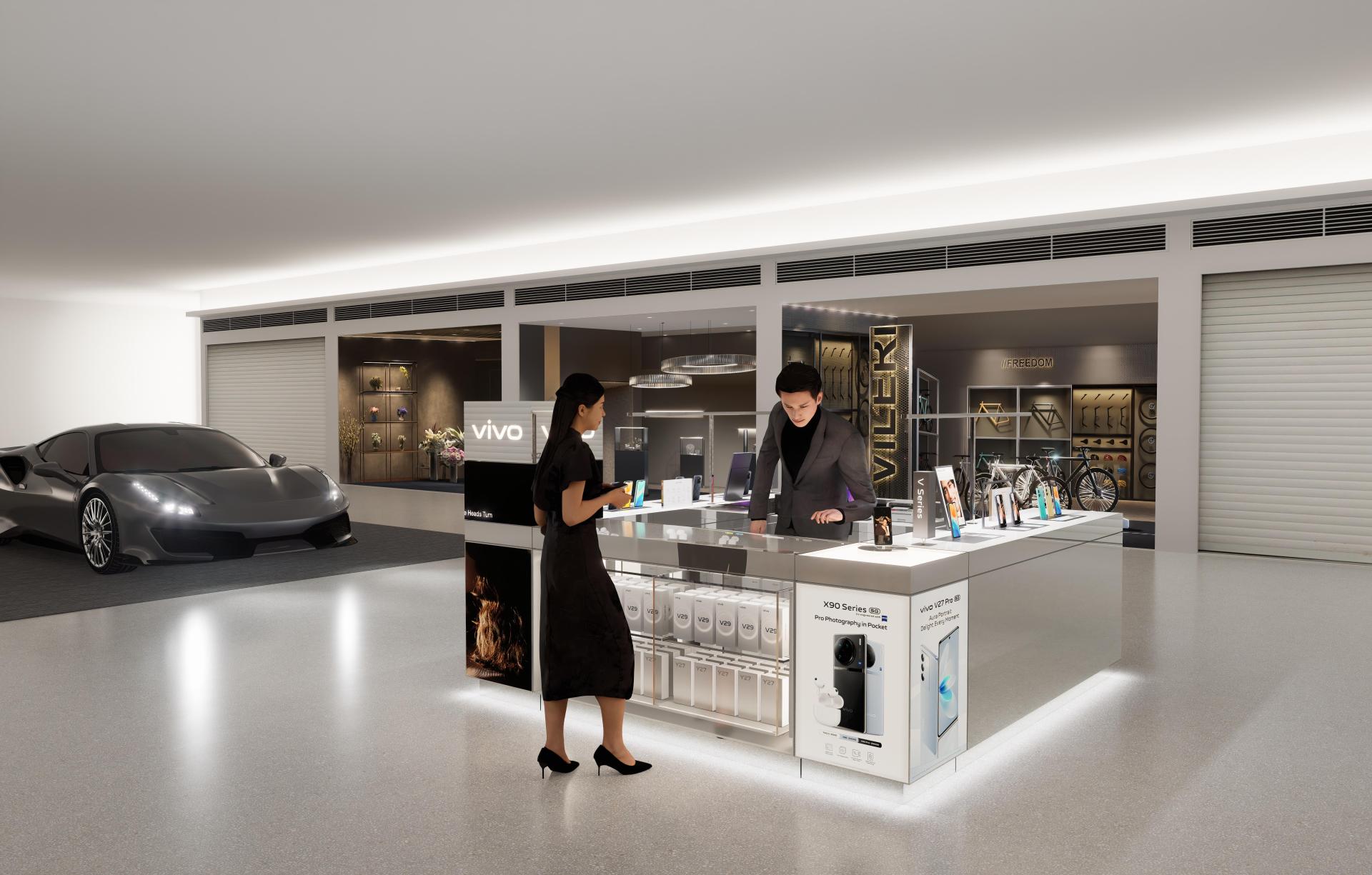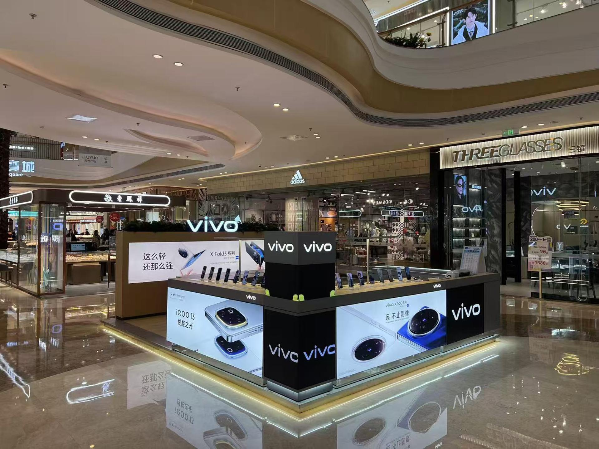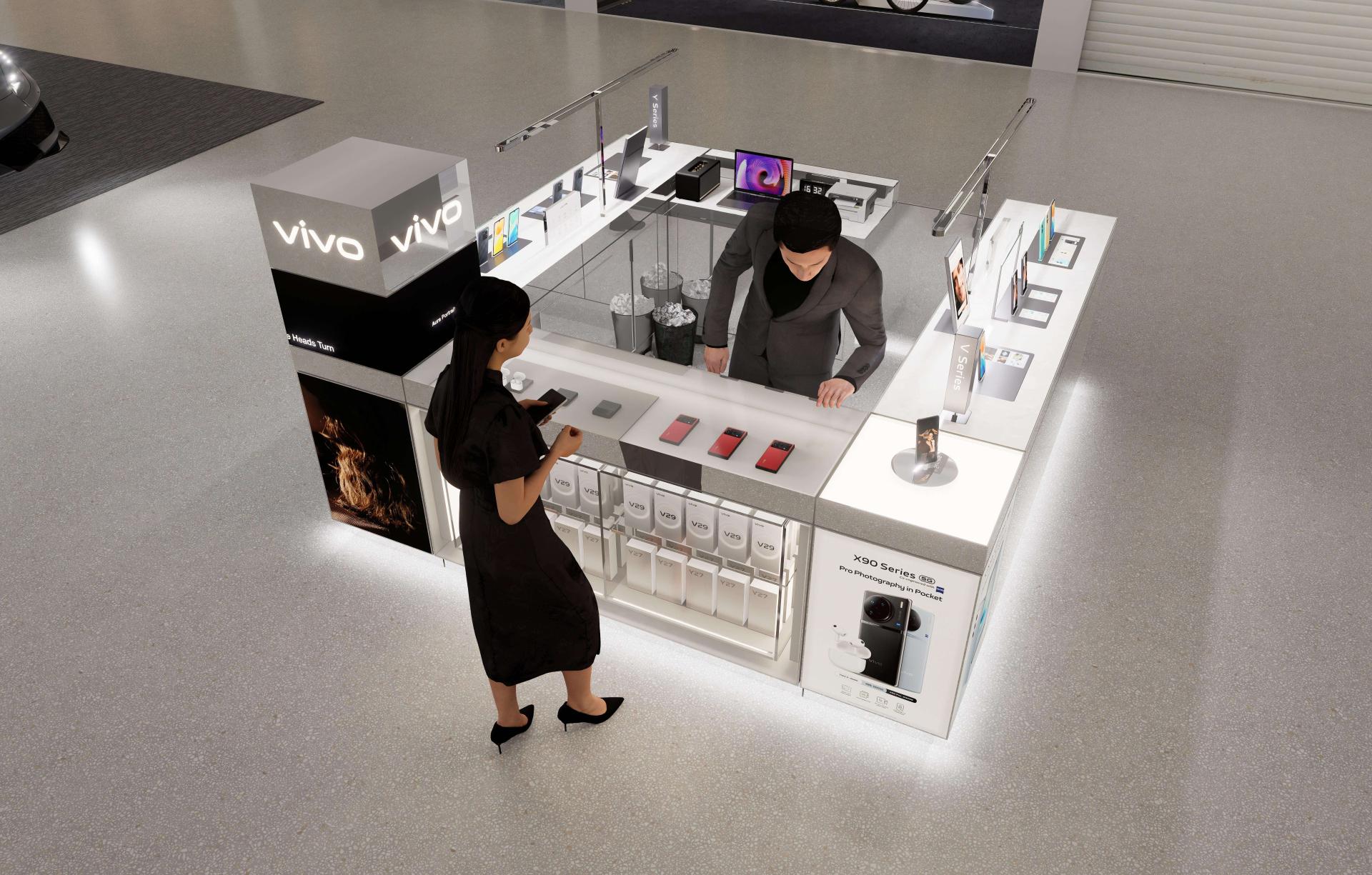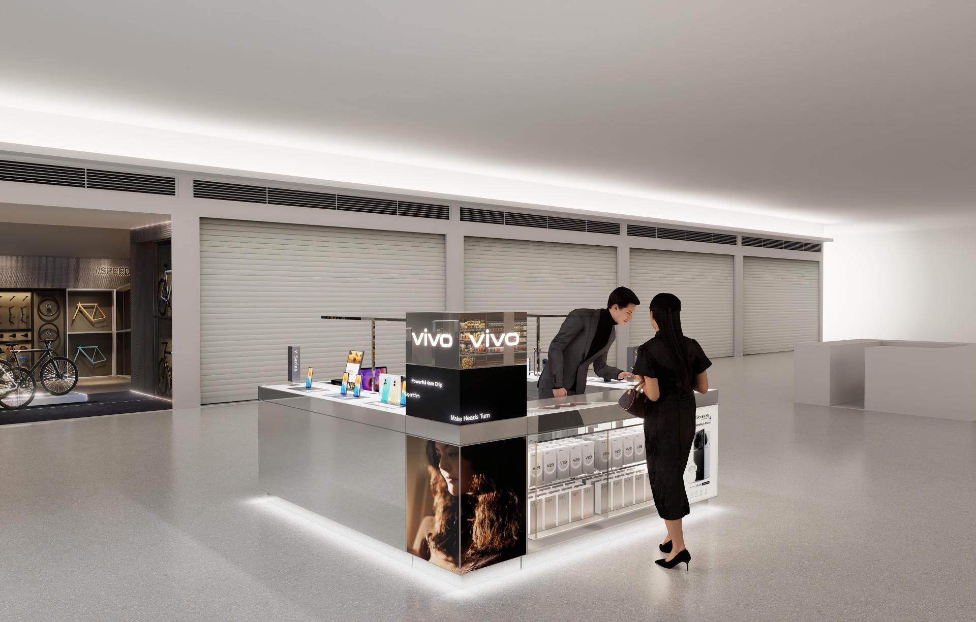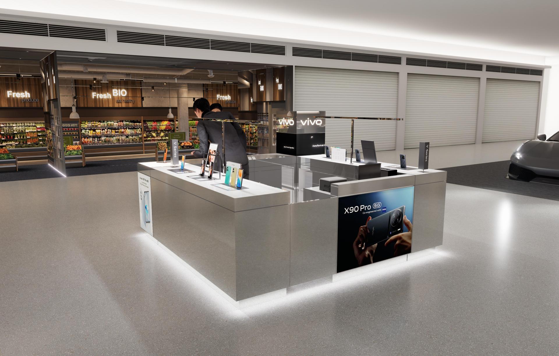 A key highlight of this solution is the integration of multimedia elements. Interactive screens display product information and advertisements, effectively capturing customer attention. Meanwhile, mobile devices are neatly arranged on display stands, allowing customers to directly engage with and understand the product features.