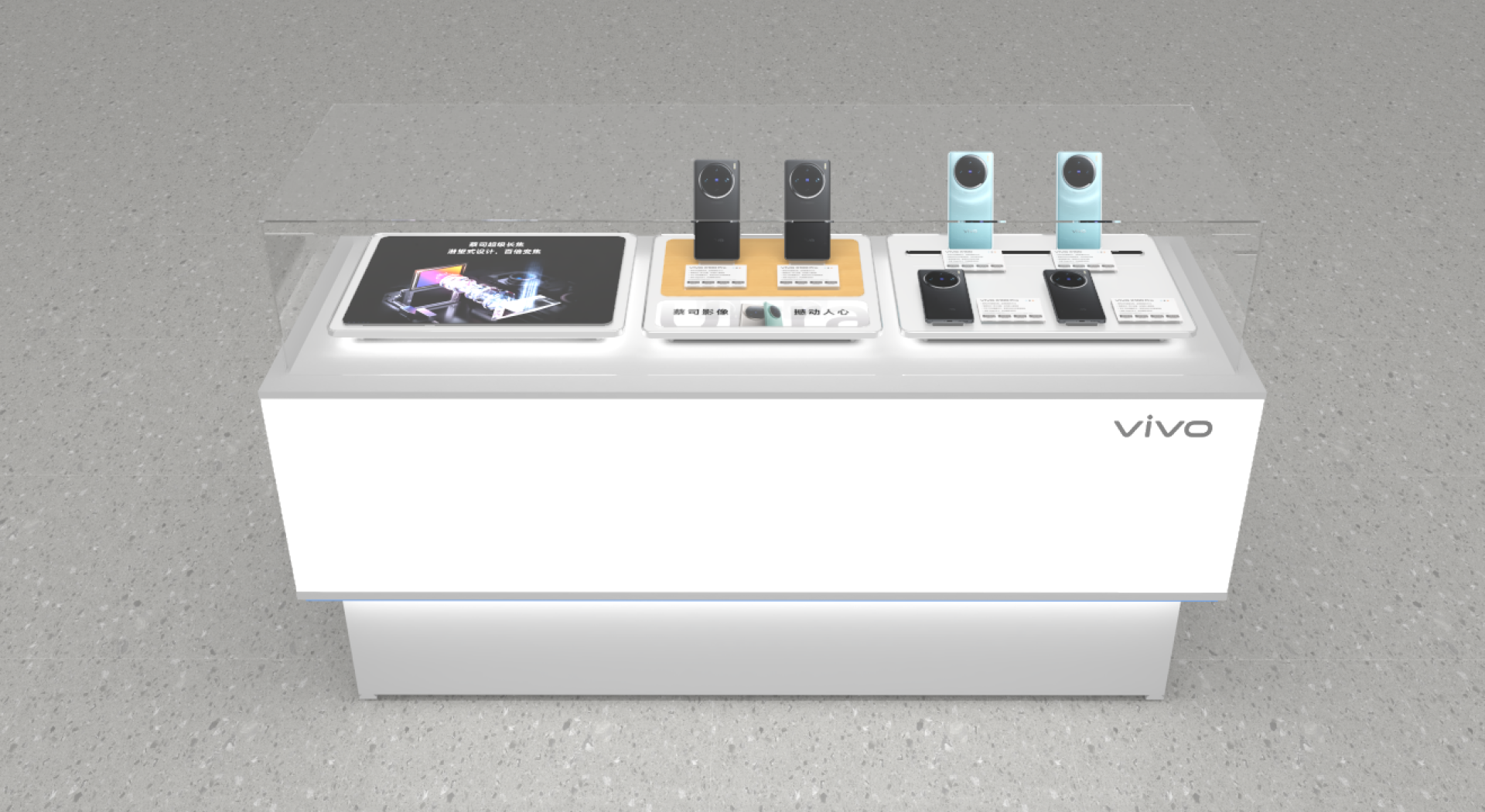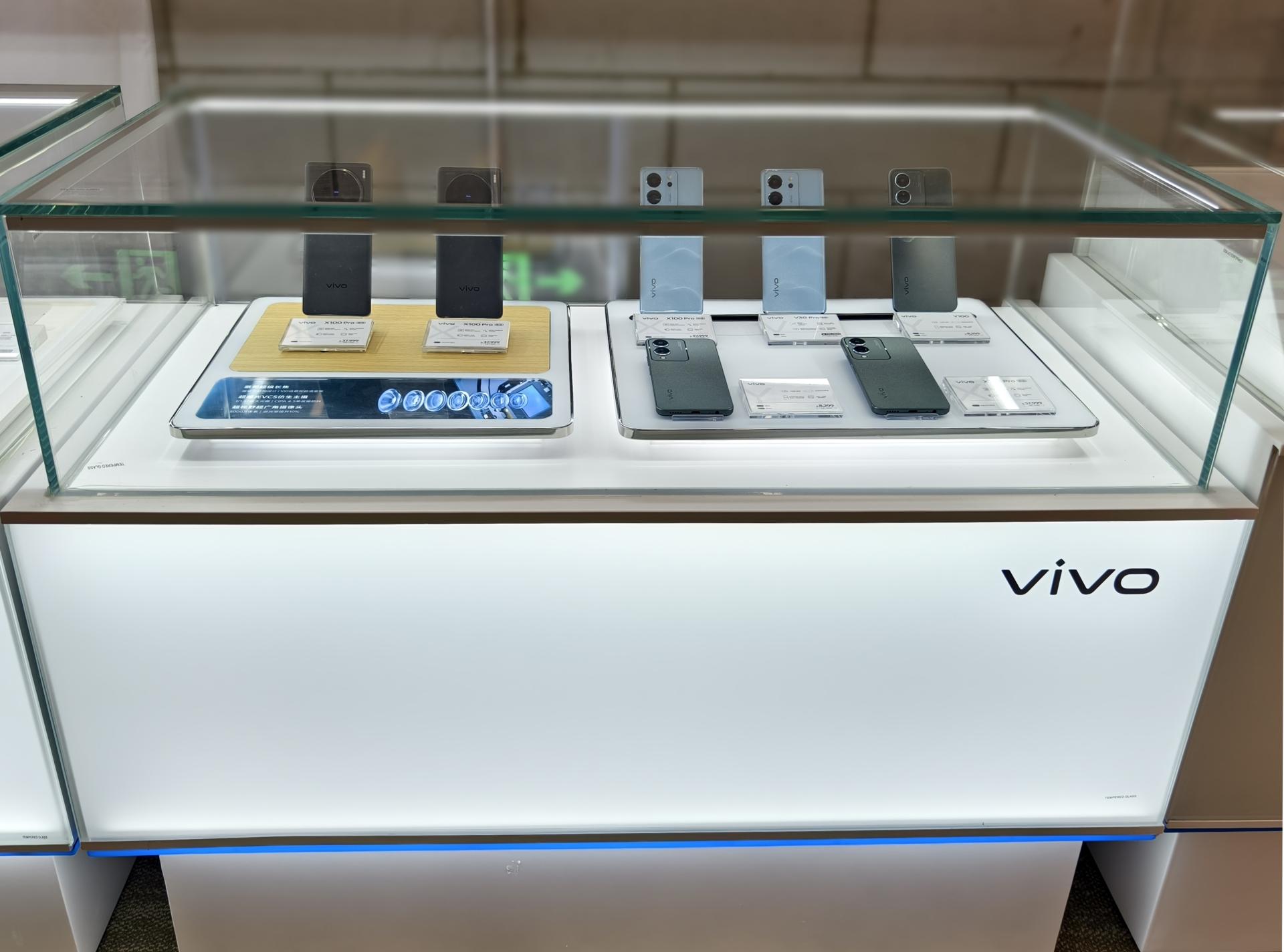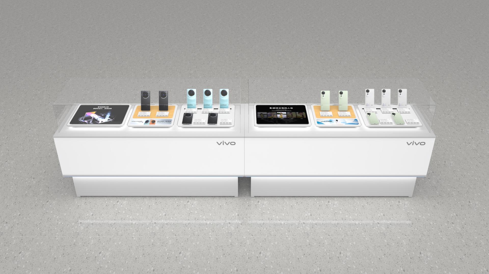 Overall, this display solution is meticulously crafted to highlight vivo’s offerings effectively, provide an engaging customer experience, and offer practicality for store management.
