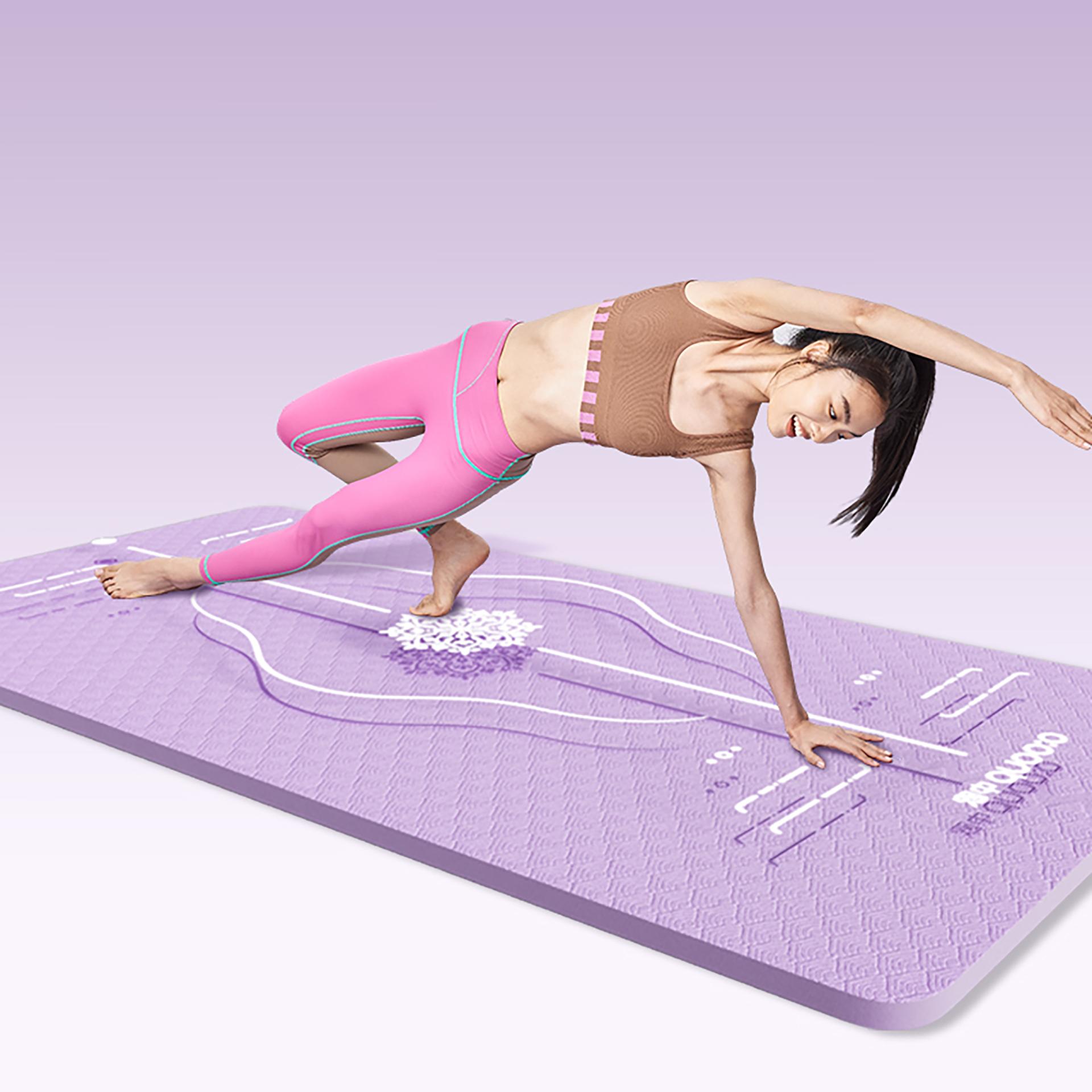 In terms of materials, this yoga mat adopts a dual-sided anti-slip design, with the wave texture on the ground side for strong friction and the contact side made from fingerprint-level slip-resistant fabrics for stable support. Even if this yoga mat is put on a slightly sloped floor, the pose diagram still guides yoga poses visually, allowing users to focus on yoga and find the unity of mind and body.