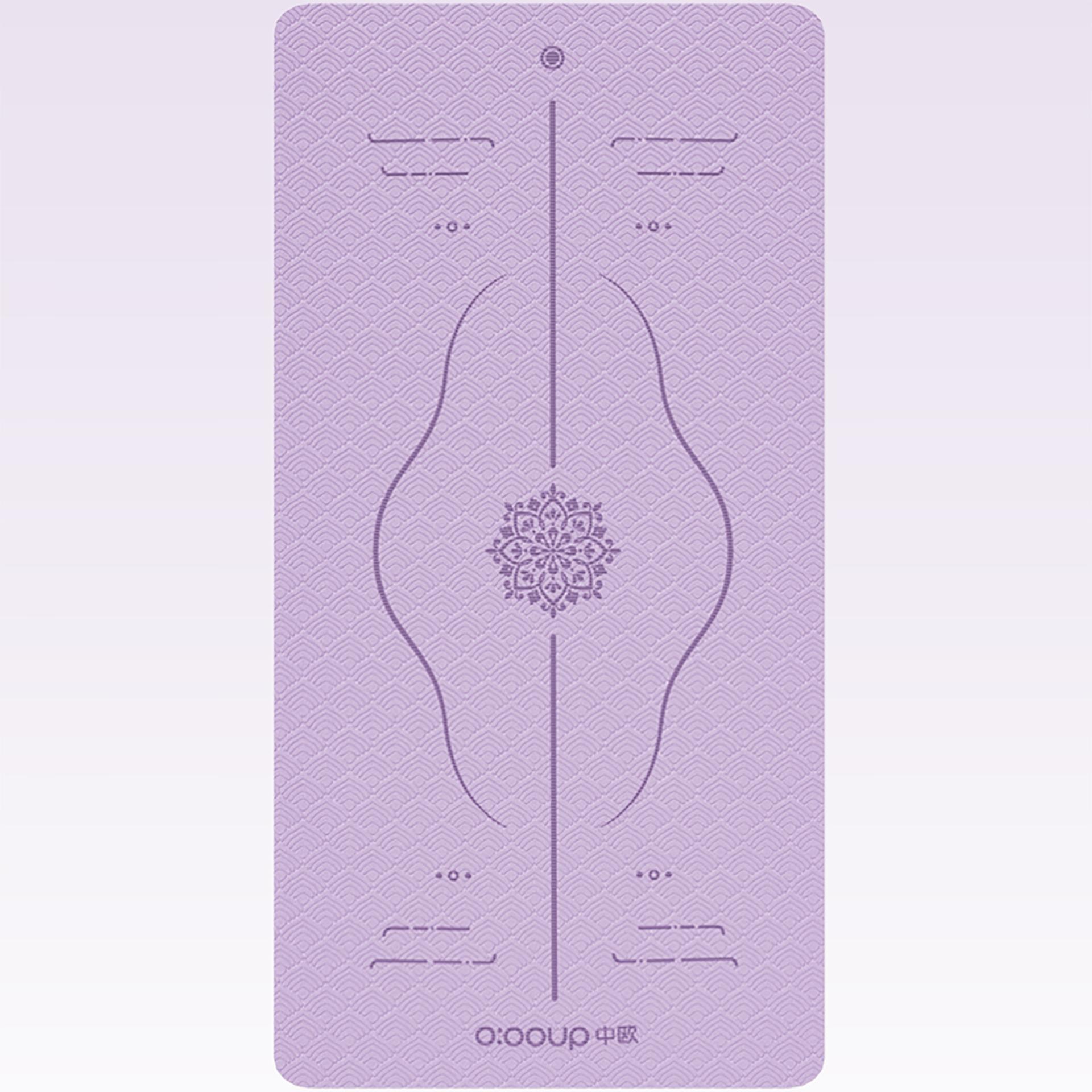 It is a yoga mat with a pose diagram tailored for yoga enthusiasts. By marking the palm indication lines and balancing the midline and other accurate positions, this yoga mat offers intuitive guidance to users for easy pose adjustment during yoga. The lines on the upper and lower accurately indicate the placement positions of palms and feet, ensuring the accuracy and stability of each pose when doing yoga. The central flower pattern symbolizes the connection between yoga and nature, helping users seek balance and harmony in each pose. The sleek lines surrounding the midline seem to be the natural extension of the flower, implying the inner peace, physical stretch, and body energy flow brought by yoga.