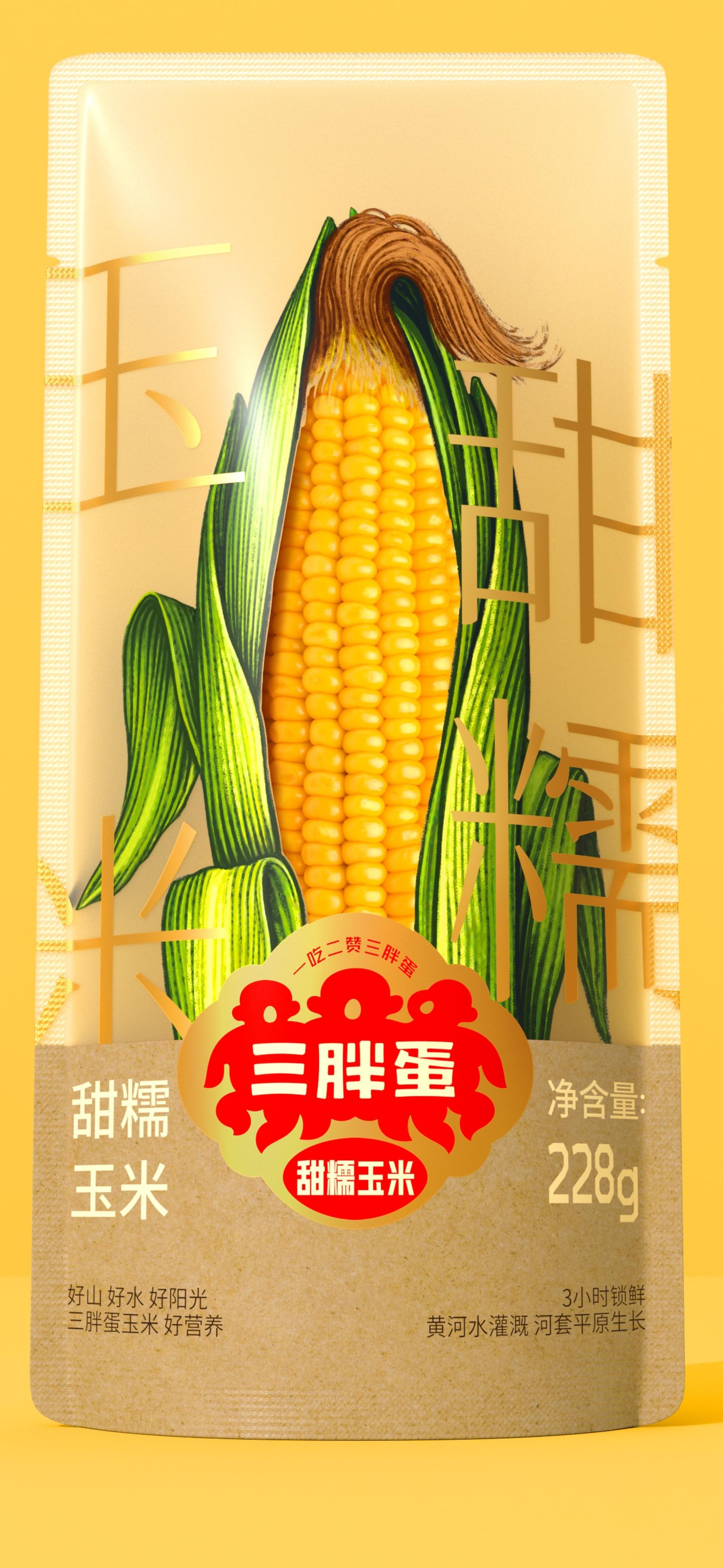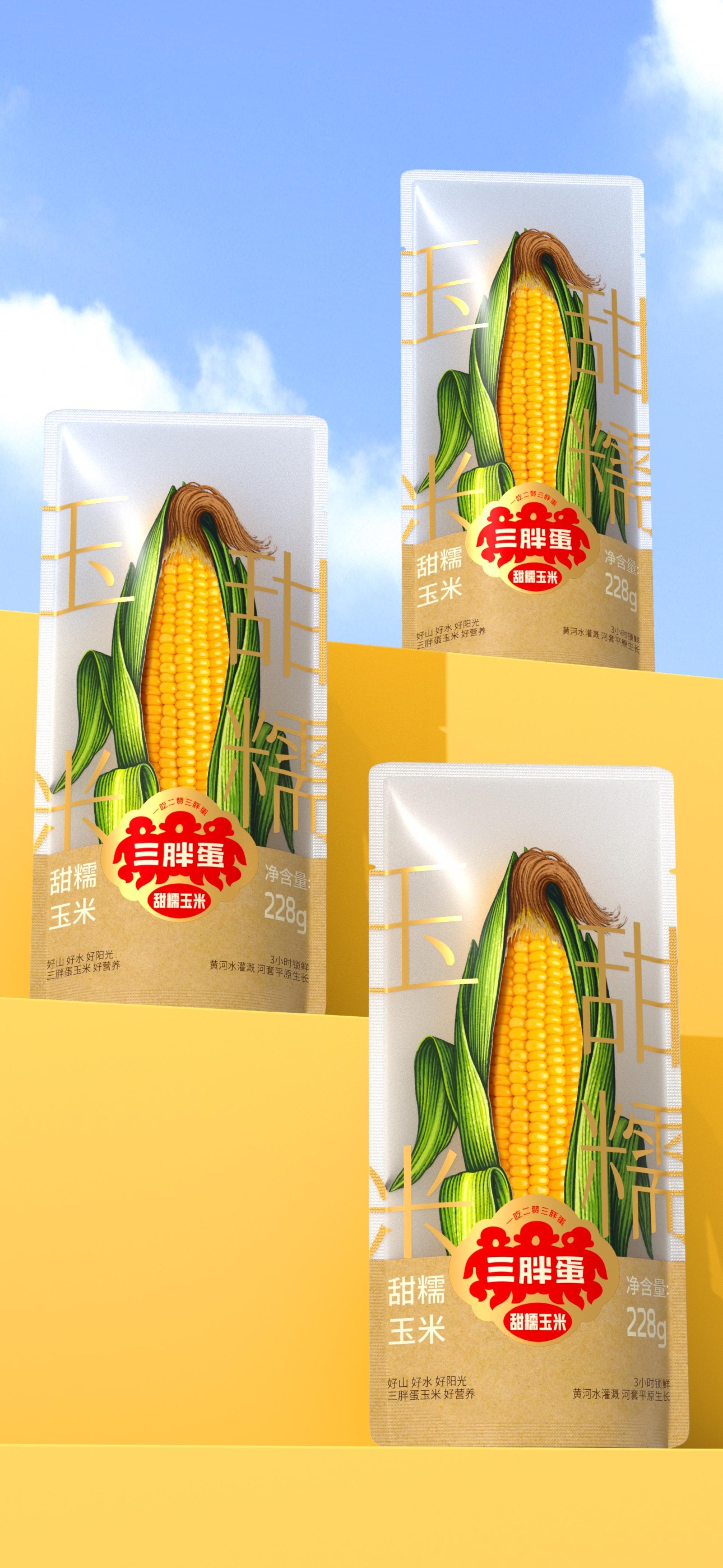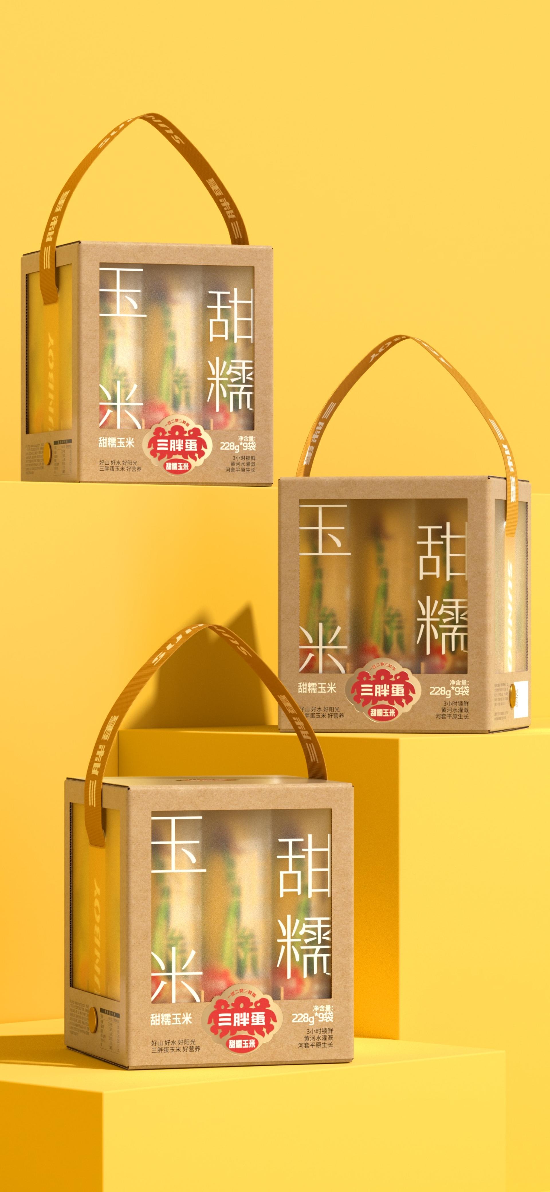 The design features a fresh ear of corn, utilizing transparent PVC material combined with corrugated kraft paper to vividly convey the product's natural freshness. The minimalist earthy tones enhance the brand’s approachable, warm image, bringing the product's "plain beauty" to life. The design also adds a modern, fashionable touch through the combination of gift box aesthetics and craft materials, offering a contemporary twist to agricultural packaging.