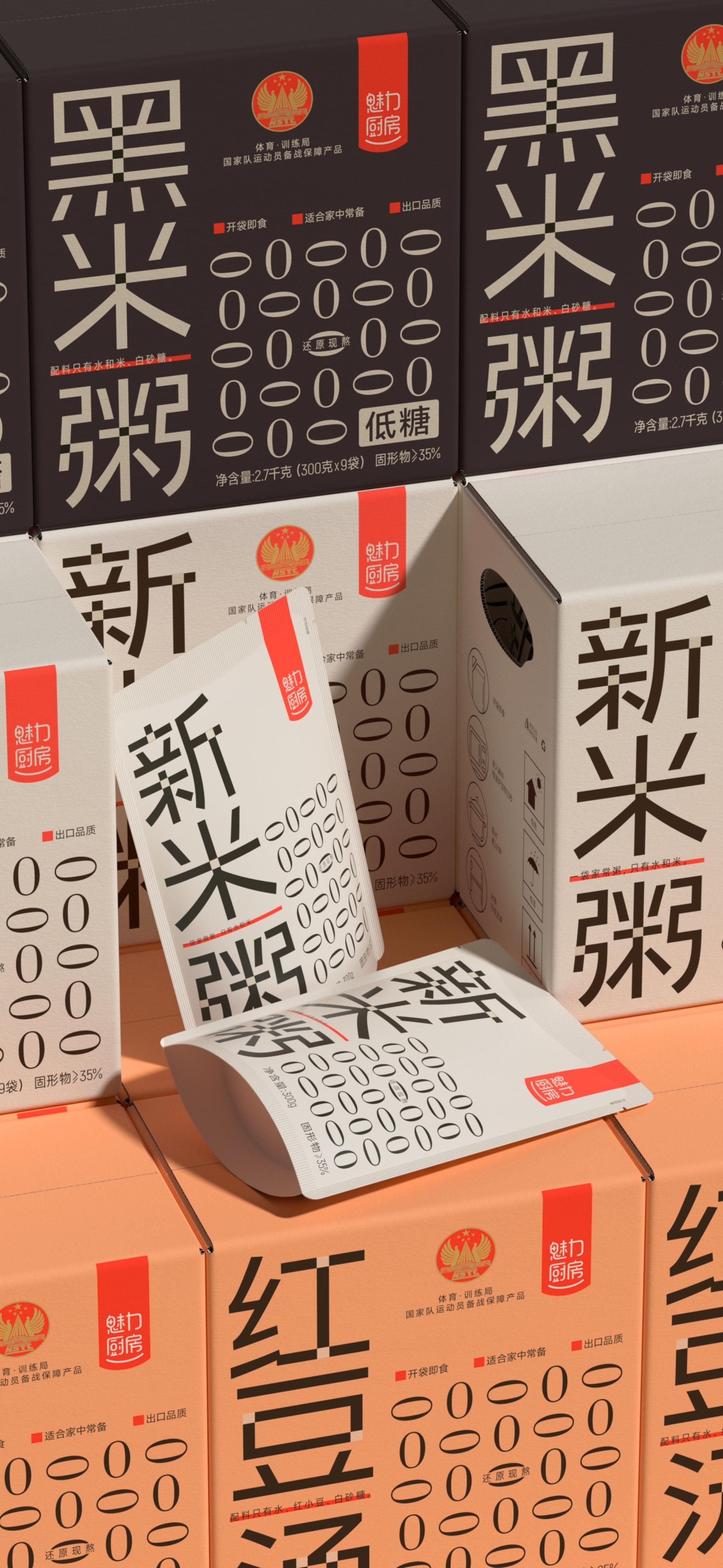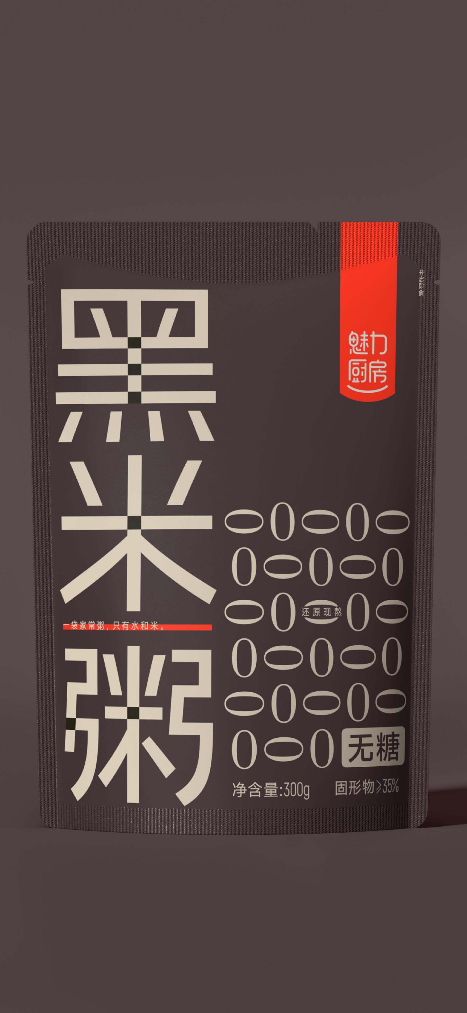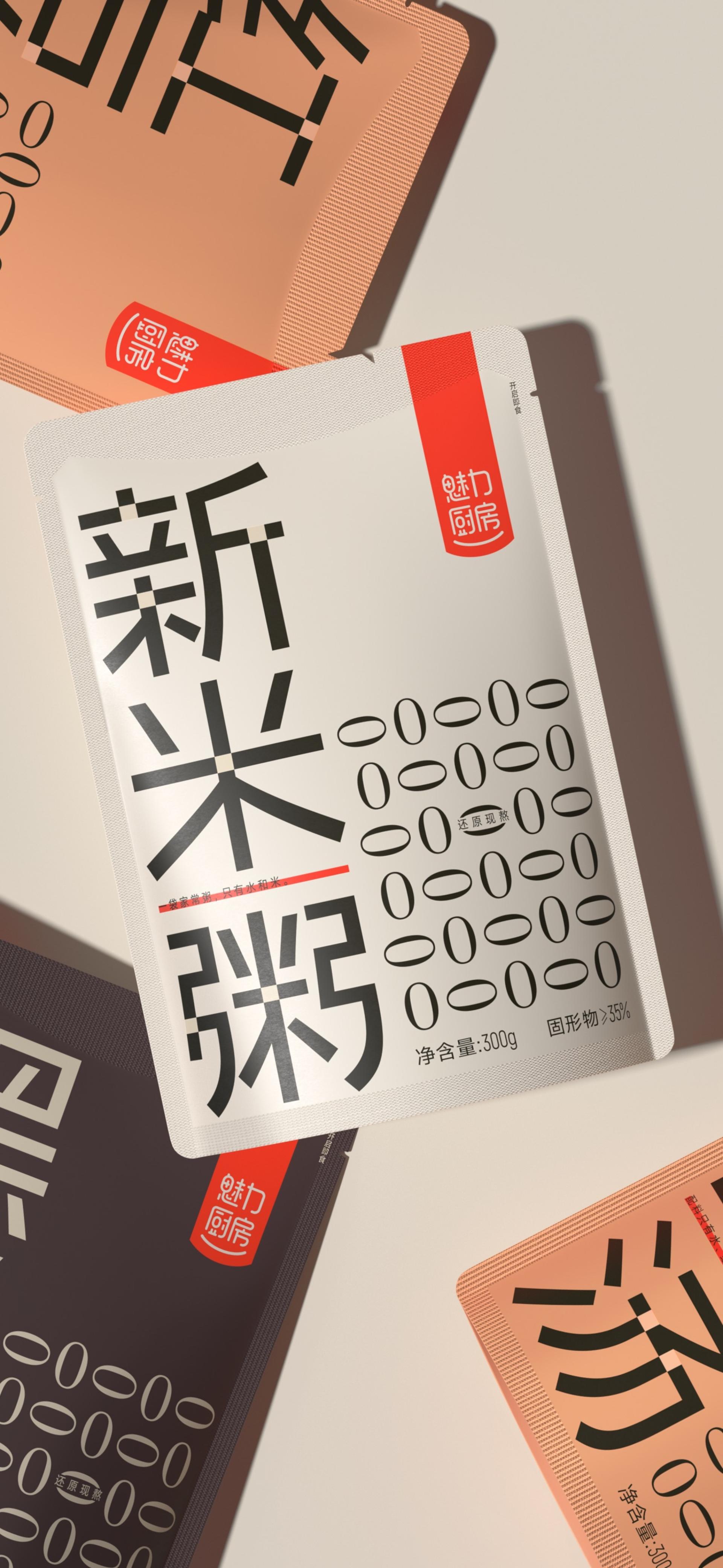In contrast to competitors using illustrations, we focus on Chinese characters, maximizing product name visibility for enhanced recognition. The overlapping strokes of the typography are artistically hollowed out to symbolize rice grains, while the vibrant fluorescent red adds energy and emphasizes the product's key selling points—sugar-free and preservative-free.