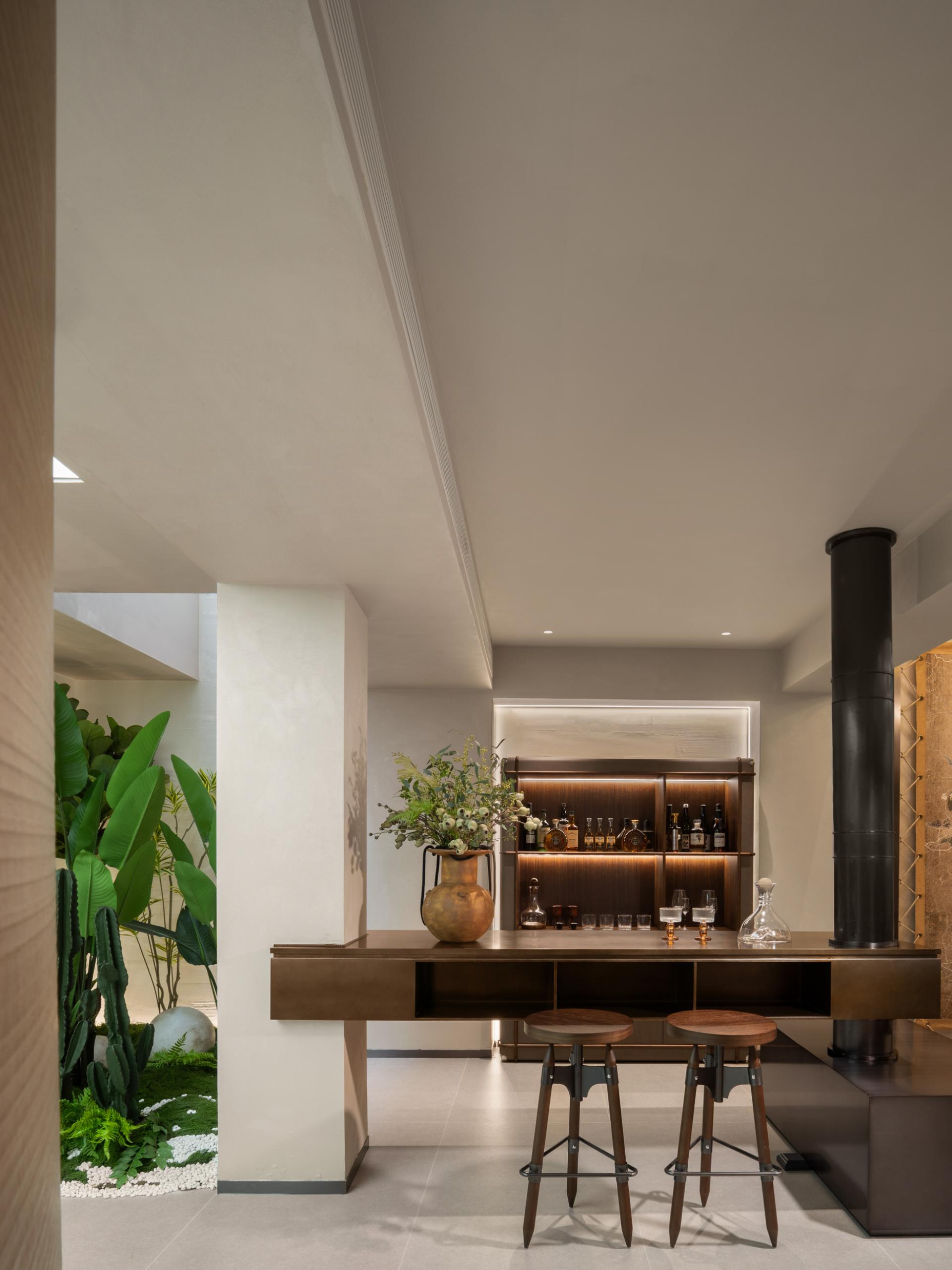 The project is located in the natural ecological area of Qingshan Lake, with excellent surrounding resources and convenient transportation. Inspired by the lake view and Eastern culture, a modern leisure style is established. Natural and architectural elements are extracted, adhering to the concept of "harmonious coexistence between human and nature", integrating spatial comfort, diversified functions and artistic aesthetics, and providing ideas for similar projects to integrate nature and culture. There are numerous highlights in the project. Qingshan Lake is a nature reserve where various outdoor sports such as kayaking, cycling and camping can be enjoyed. Designers have adapted to local conditions and combined with outdoor sports to create a living scene themed on leisure and sports. In terms of spatial layout, the traditional division between dynamic and static areas has been broken. For example, the guest rooms on the first floor incorporate outdoor elements. In terms of materials, bronze and aged metals are combined. Emphasis is placed on multifunctionality, and the basement floor can meet diverse needs. The landscape design borrows the scenery of the lake, showing a market differentiation. During the design, there were difficulties, such as a complex surrounding environment, limited building structure, and high requirements of the owner for the space. The noise was solved by combining soundproof plants and double-glazed windows, and the space was optimized by using the terrain and structural transformation to meet the owner's requirements, taking into account sustainability, reducing energy consumption and selecting environmentally friendly materials. In material selection, local products are preferred to reduce carbon emissions, and some metals are recyclable; reasonable layout is used to utilize natural lighting and ventilation to reduce energy dependence; the original green plants are retained in the landscape, and local drought-tolerant plants are selected to promote ecological balance, practice the green concept and create a healthy and environmentally friendly living environment.