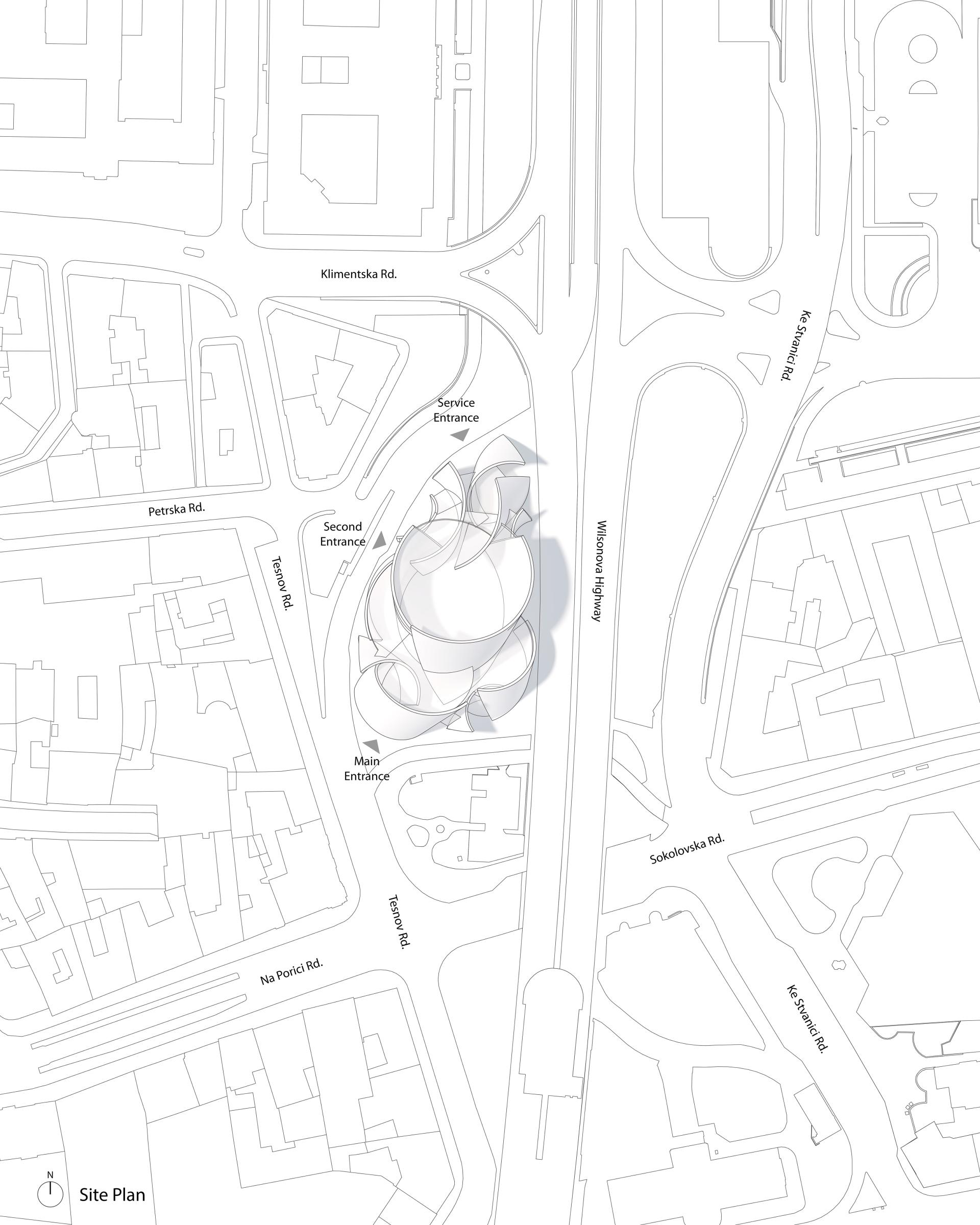 Situated at the confluence of Prague's historical and modern districts, the concert hall honors its dual heritage. The design thoughtfully integrates with its surroundings, placing programmatic elements to enhance circulation and dialogue with the urban landscape. The juxtaposition of old and new is intentionally dramatic, creating a striking cultural landmark that resonates with the city’s storied past while embracing its vibrant future.