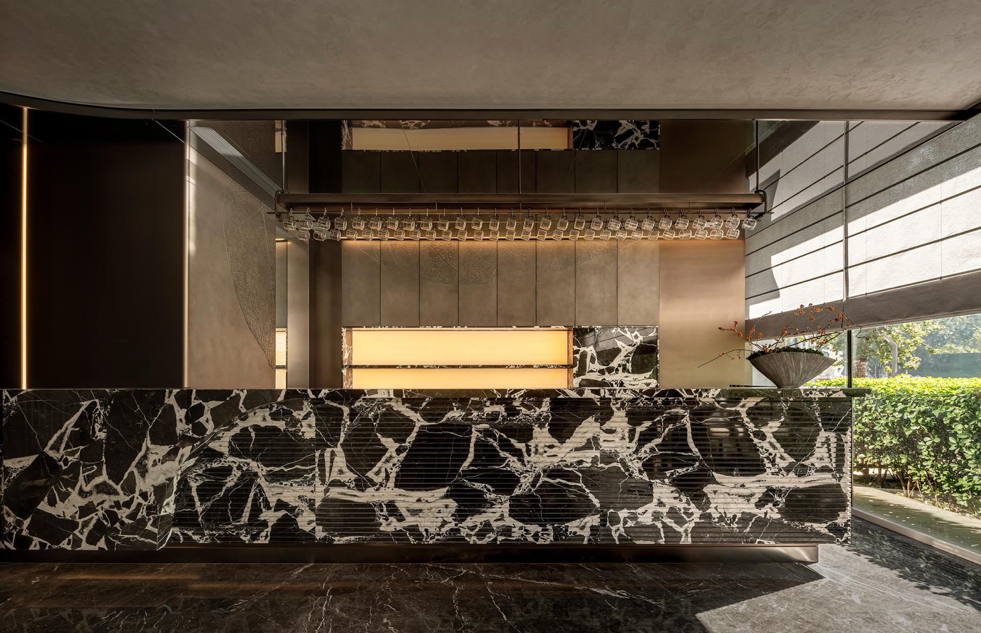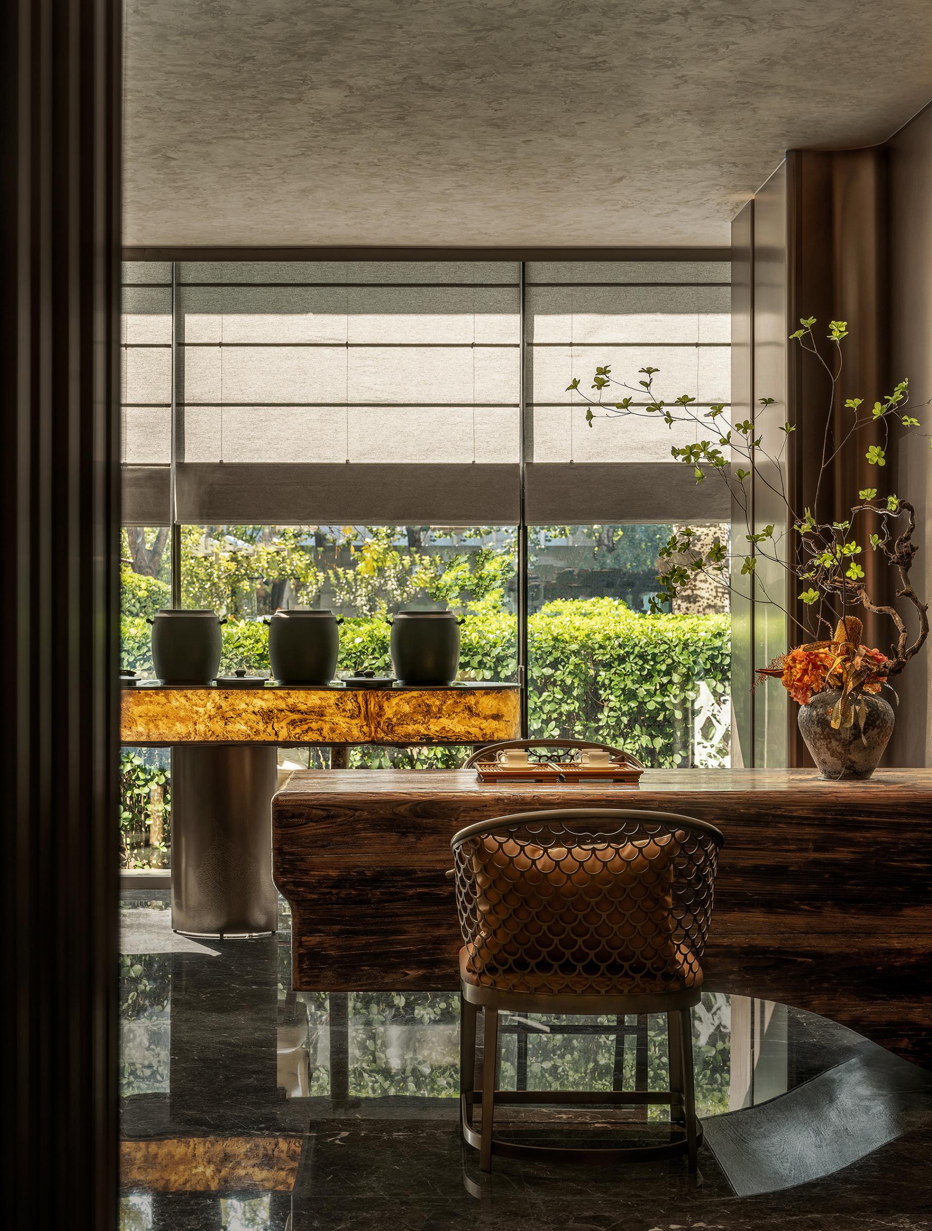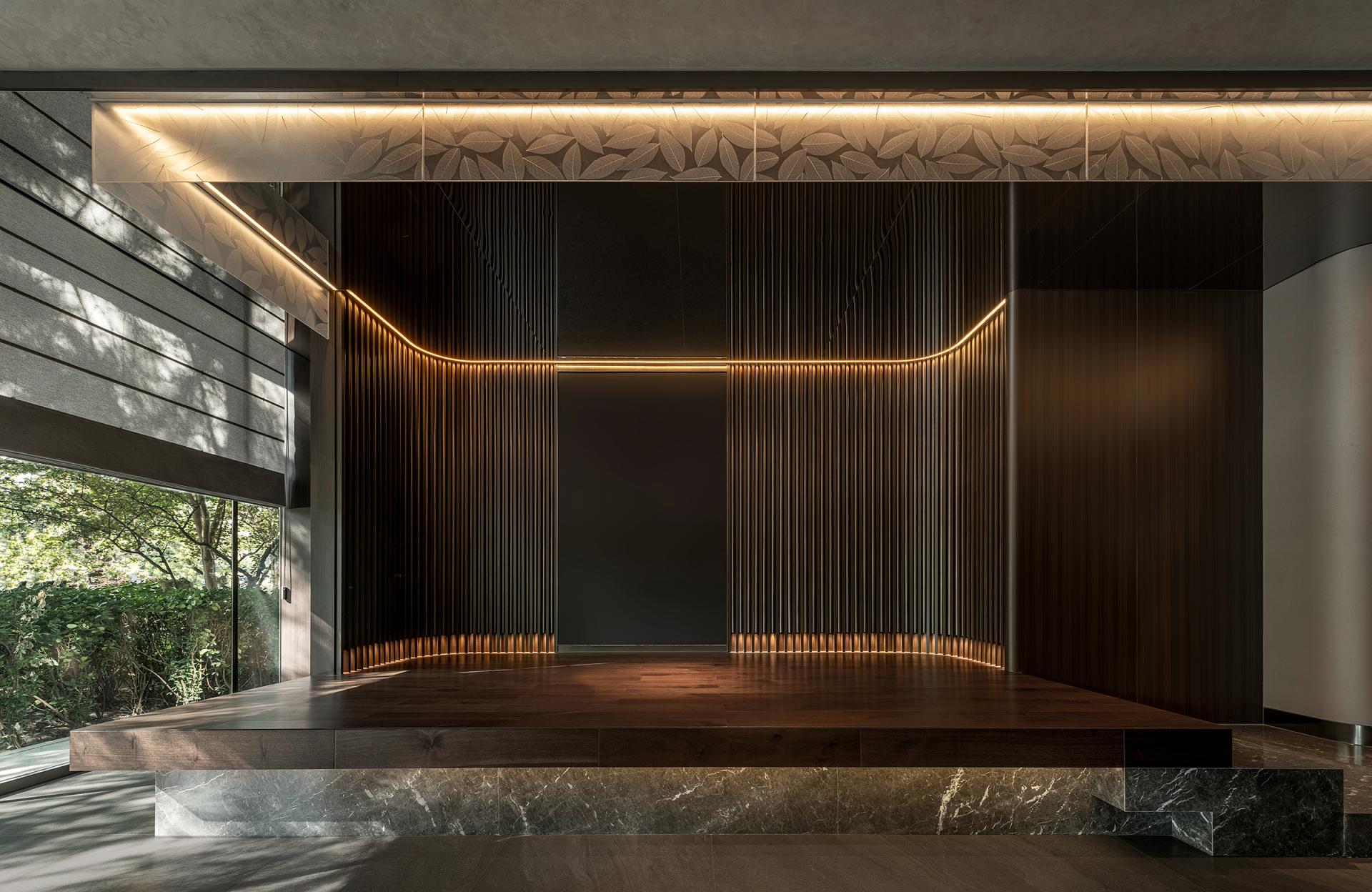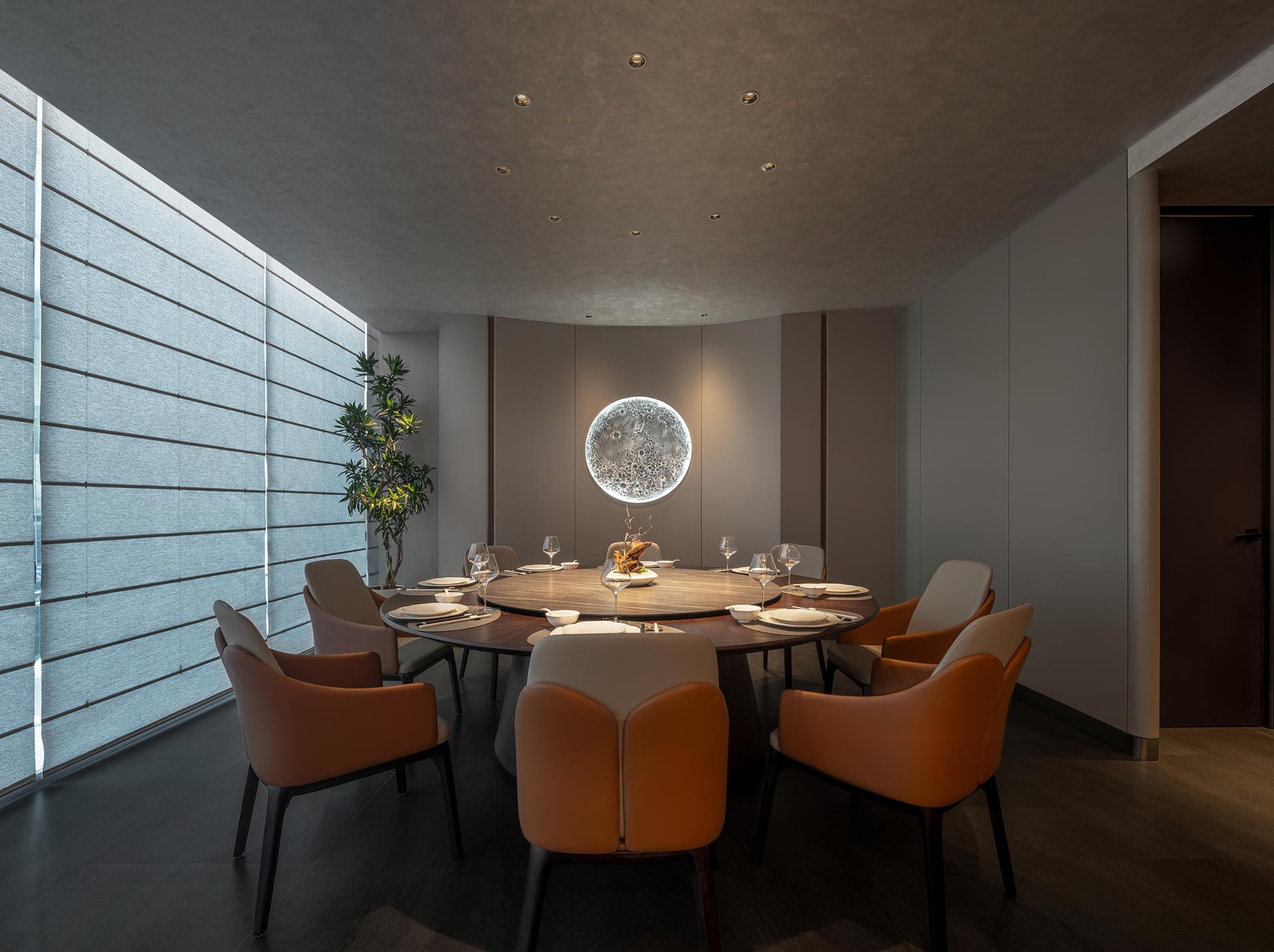 The Tea Road spans mountains and oceans. The rich and varied culinary cultures of the cities along the way provide plentiful materials for the innovation of the restaurant's dishes and ingredients. The restaurant emphasizes harmony. Tea is made part of the cuisine. Here, tea and food integrate. Based on Hunan and Cantonese cuisines, by combining the culinary styles and ingredients of the cities along the Tea Road, the restaurant aims to become a top-grade, integrated, creative restaurant brand for tea art, human landscapes, banquets, and business. Inspired by the culture of the Tea Road, based on the brand orientation, with the theme of “The Tea Road, The Natural Experience” and the core conception of “Oriental Upscale Nature,” this design pursues a natural charm of the combination of high-end Oriental culture and modern space to create a premium, elegant, innovative dining environment with a Zen charm, connotation, and elements of diverse cultures. Here, the customers can feel the essence of Oriental cultures. It'll be a refined aesthetic experience of modern cultural significance. The inspiration comes from the lines and structure of tea leaves. Veins and patterns of tea leaves are used for the decoration of internal walls and styling partitions, giving a relaxing feeling from the nature, vividly displaying the beauty of a tea leaf's whole life. By bringing together natural and modern elements, the design creates a serene, graceful, and fashionable visual ambiance. The private rooms are named after spots along the Tea Road with significance. The customers are expected to enjoy the harmony between modern society and traditions and between nature and humanity in this unique space. In the center of the restaurant, a small performance area is specially set up with soft classic Chinese music, for example, an ensemble of the guzheng and bamboo flute, as the background music. While dining, customers can appreciate the charm of Oriental culture through audio. It's also a feast for the eyes. The all-round experience makes the place serene and sentimental.