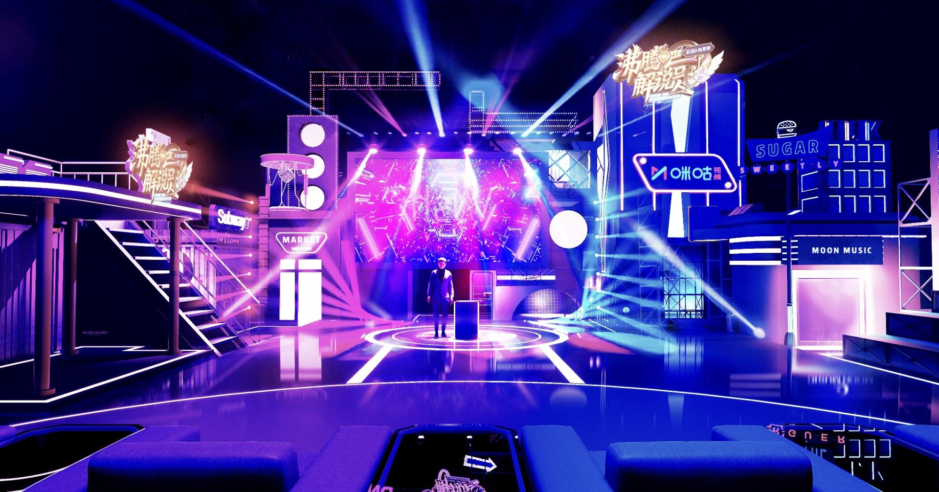 To amplify the visual impact and modernity, the set employs a three-dimensional layout. Geometric elements, such as polygonal light structures and luminous lines, are integrated into the background and decorations, adding depth and nuance to each performance while creating a more interactive space.