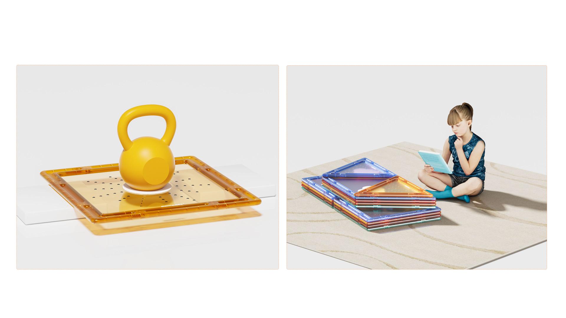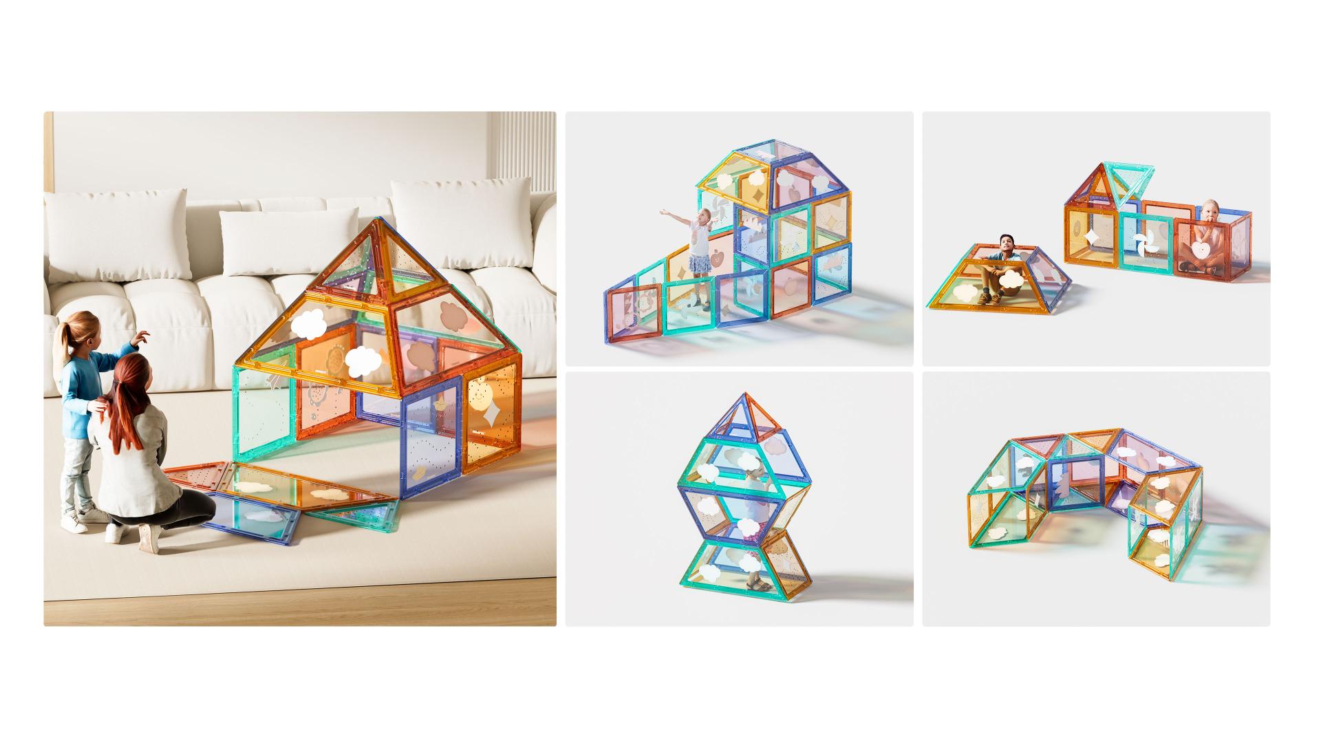 This product combines sleek design, vibrant color schemes, and a matte finish with dynamic lighting features that create captivating light and shadow effects when assembled. By connecting various shapes, children can build structures like simple tunnels, where they can freely play or explore new activities.