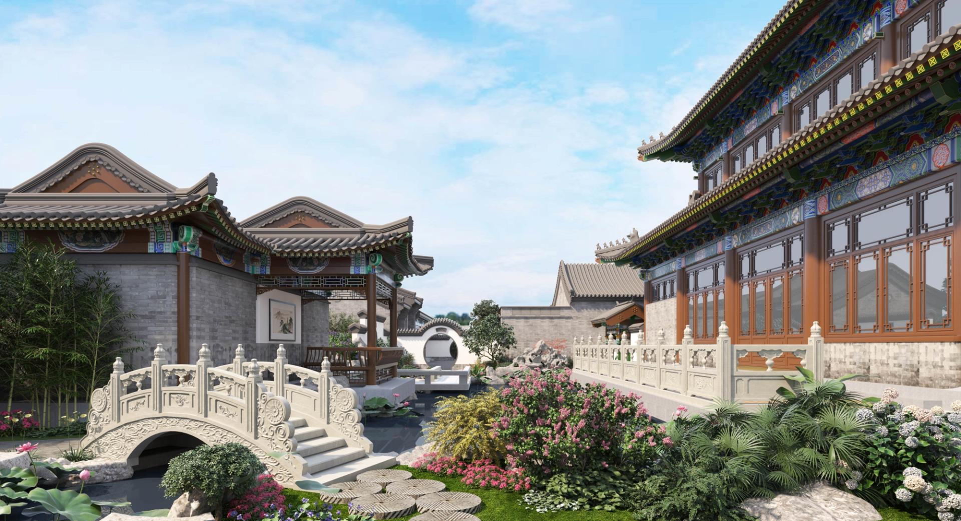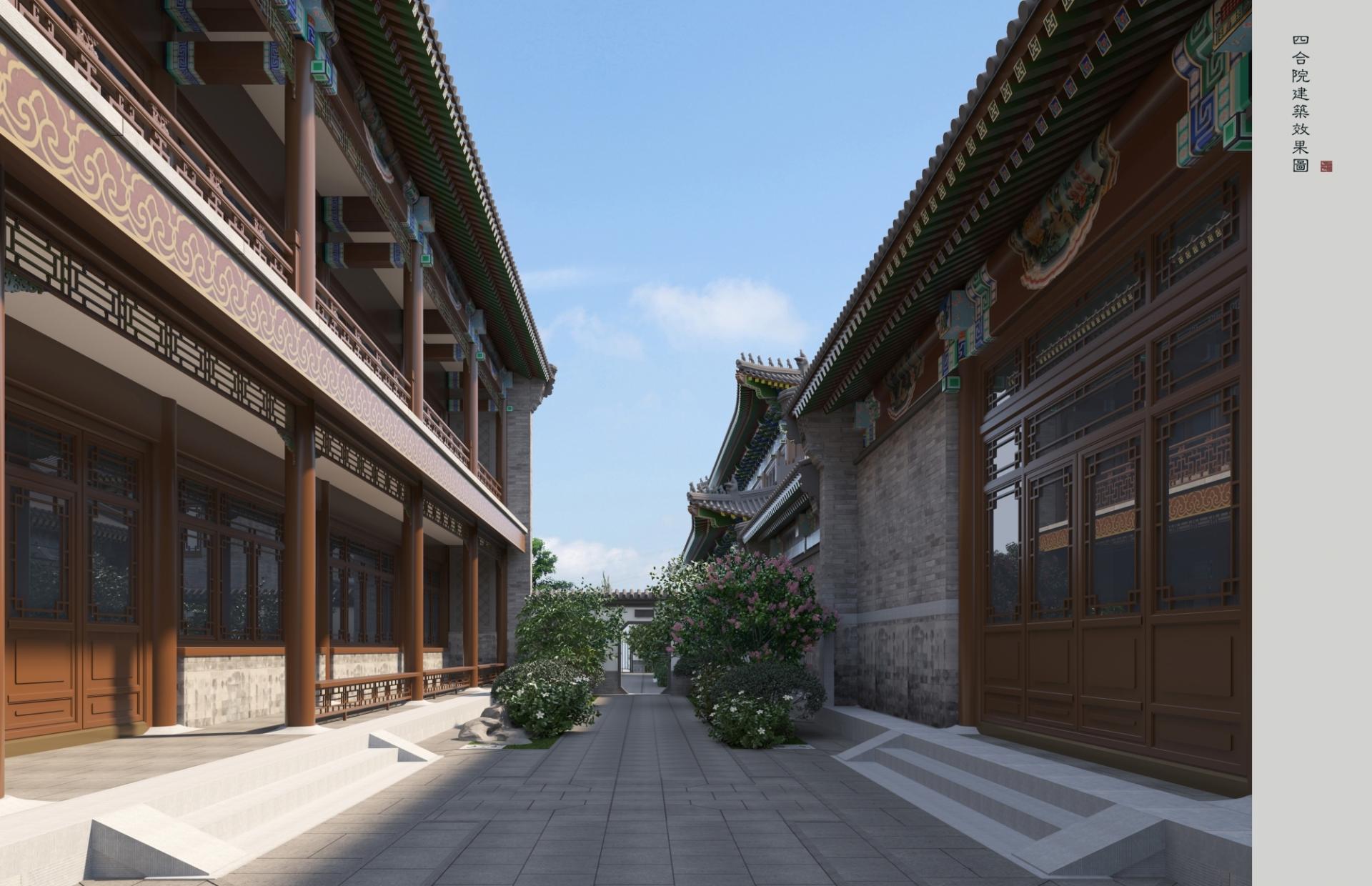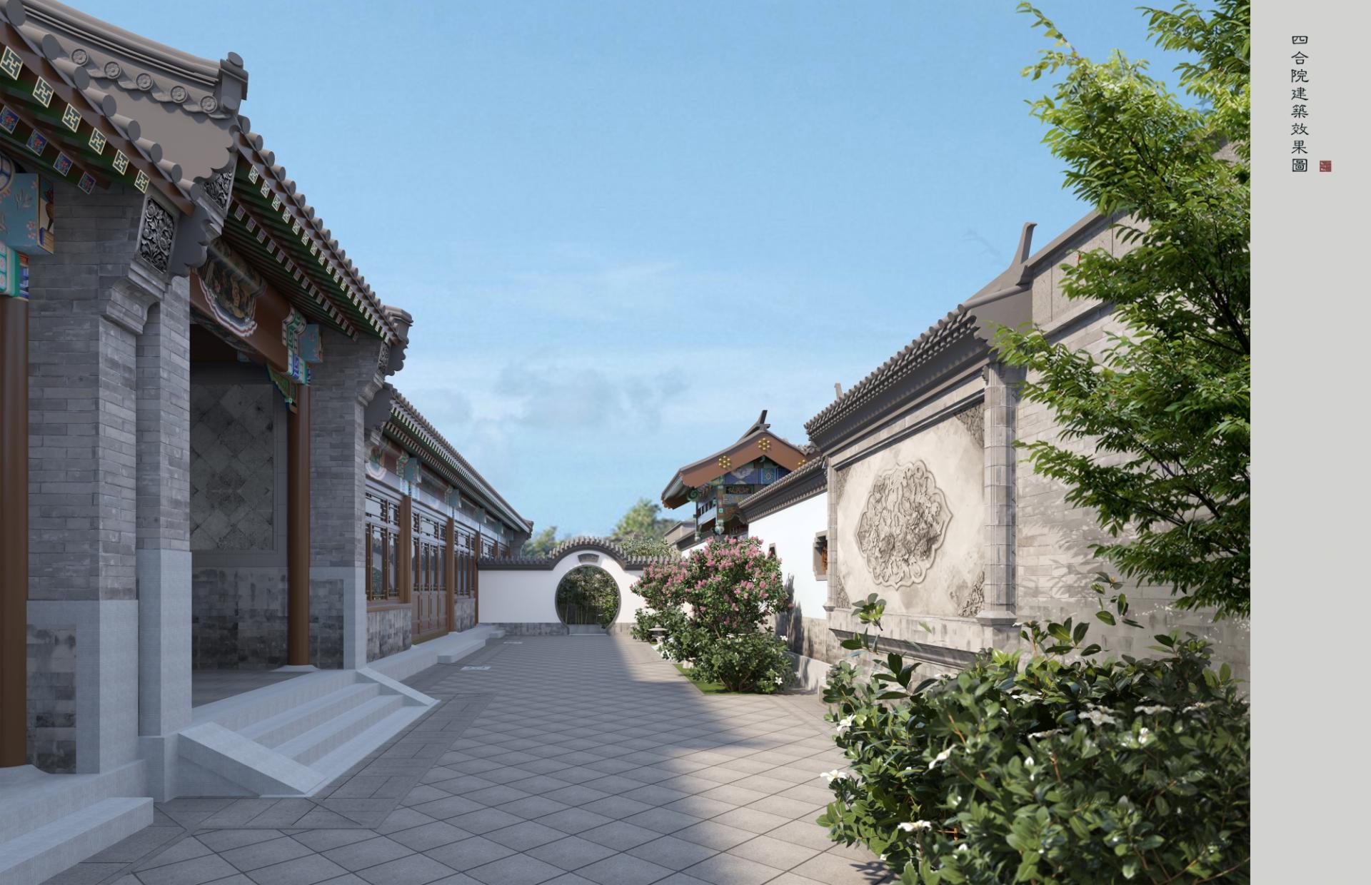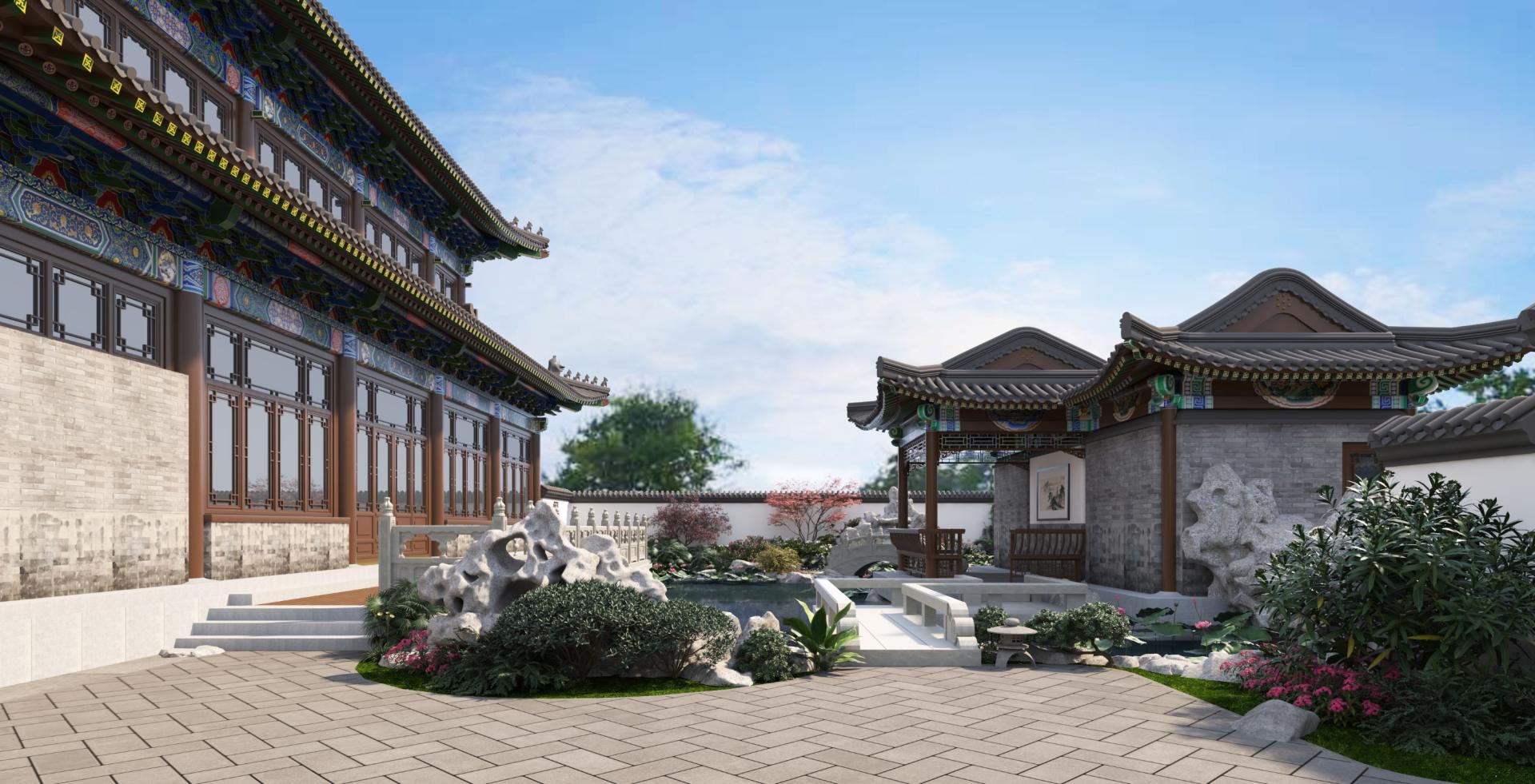 The layout of the project refers to the regulation of "Zuo Zu and Right Society" in the "Zhou Li Examination Record", and the main courtyard on the west side is a three-entry Beijing courtyard facing south: it is composed of a house door, an inverted seat room, a hanging flower door, a hand-copying verandah, an east and west wing room, a main room, an ear room and a back cover building. The door of the house is in the southeast corner, reflecting the "Kan Zhai Xunmen", and also takes the meaning of "purple gas from the east". The main building of the east side of the courtyard is a spectacular square heavy eaves and sharp theater building, which is taken from the philosophical idea of "the sky is round and the place is round" in traditional culture, and has the beautiful meaning of "harmony between heaven and earth, complete and stable". The landscapes such as the water pavilion, koi pond and Taihu Lake rockery are all designed in accordance with the traditional Chinese architectural culture, aiming to carry forward and innovate the Chinese architectural culture.