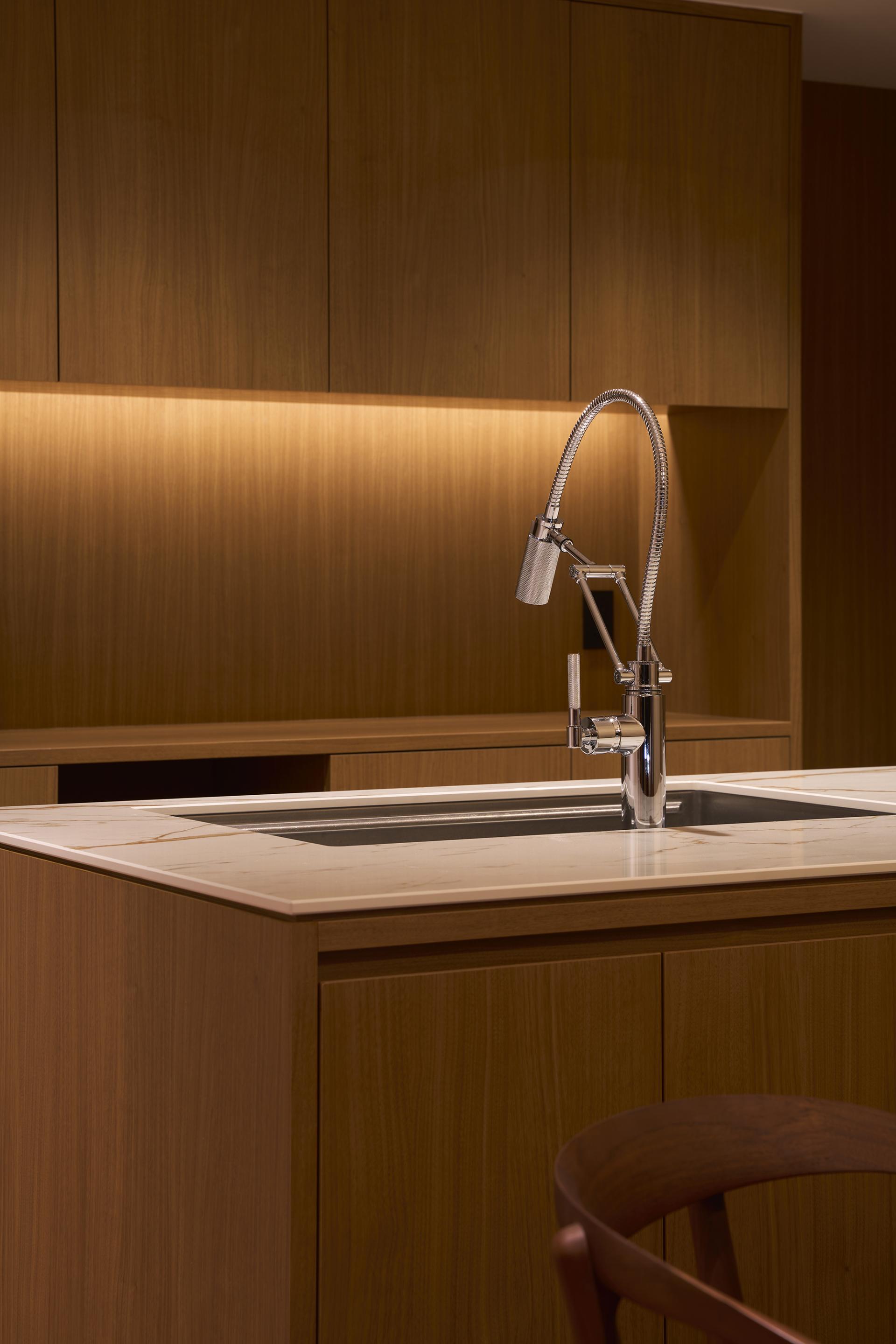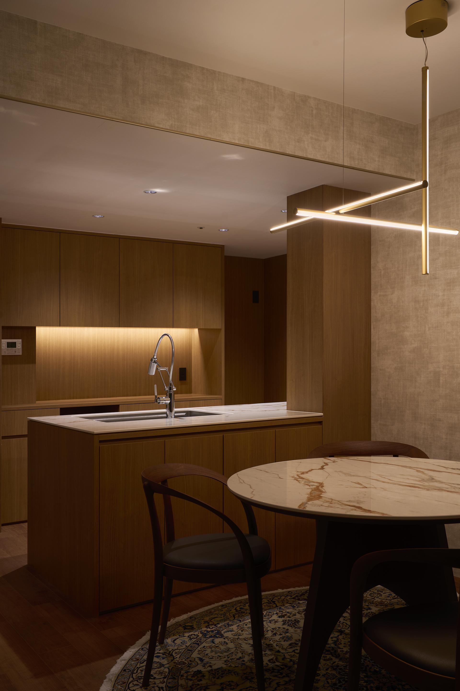 We designed the space to be refreshing during the day with natural light, while at night it could be a luxurious space where the intensity of the materials is highlighted by the narrowing of the light.