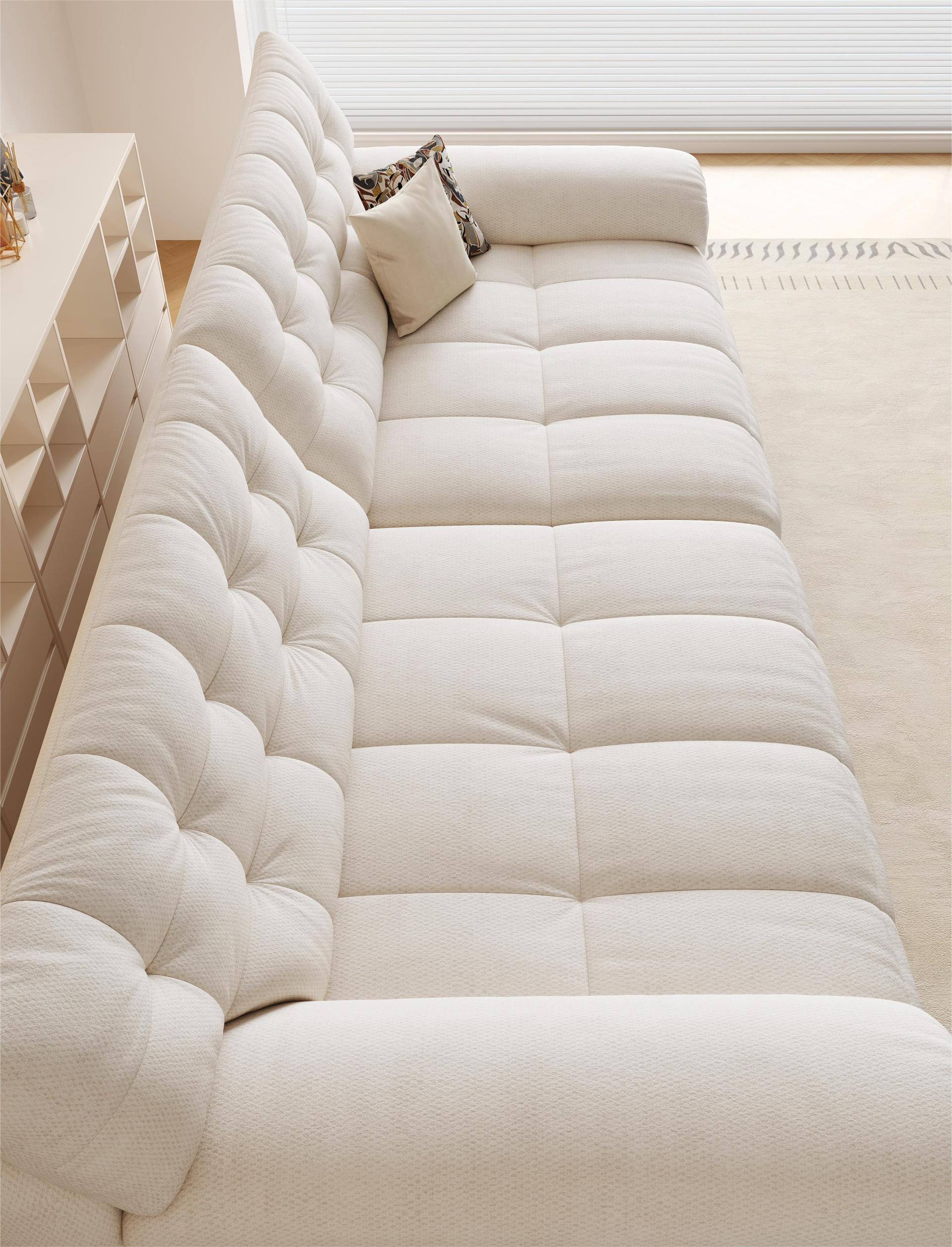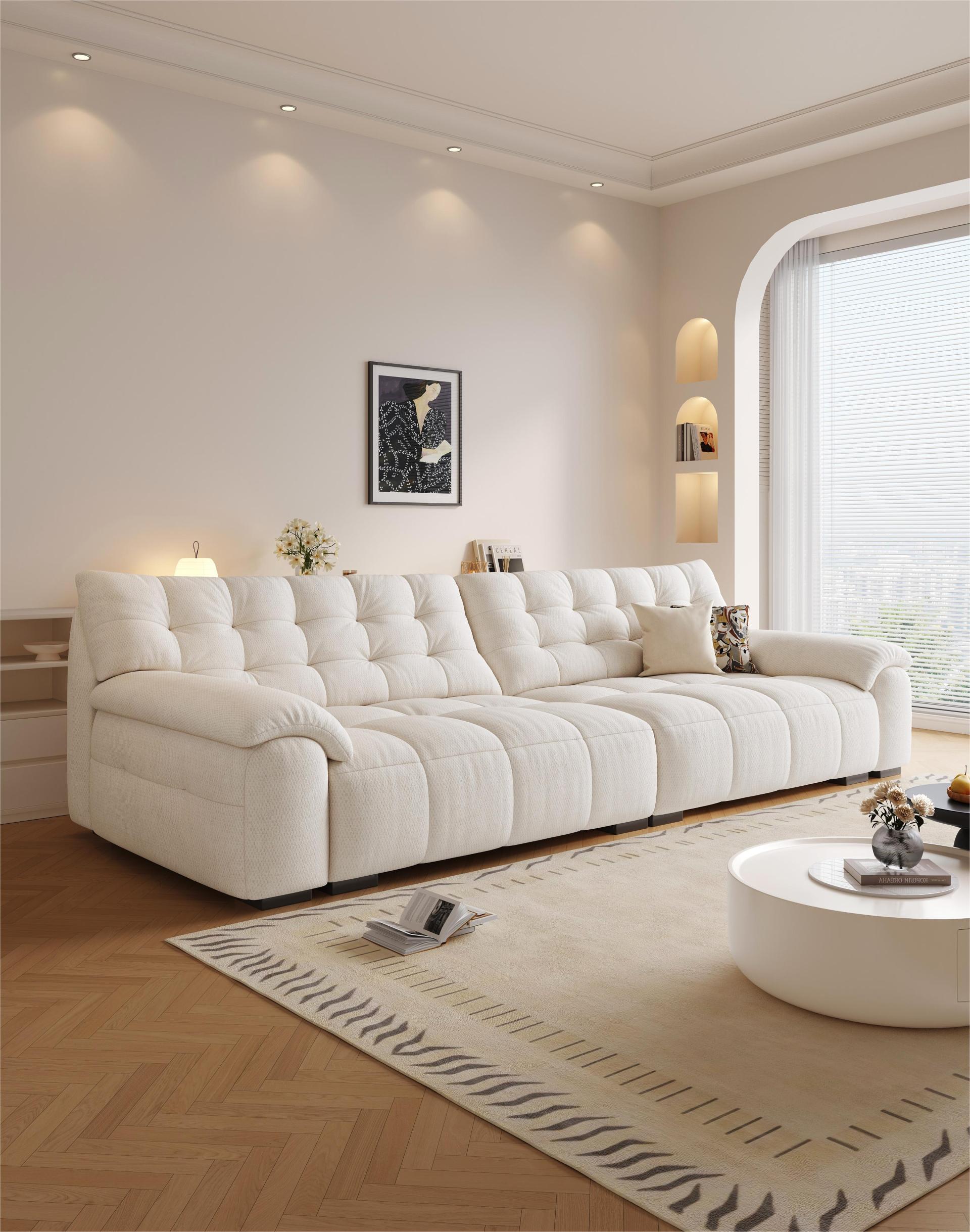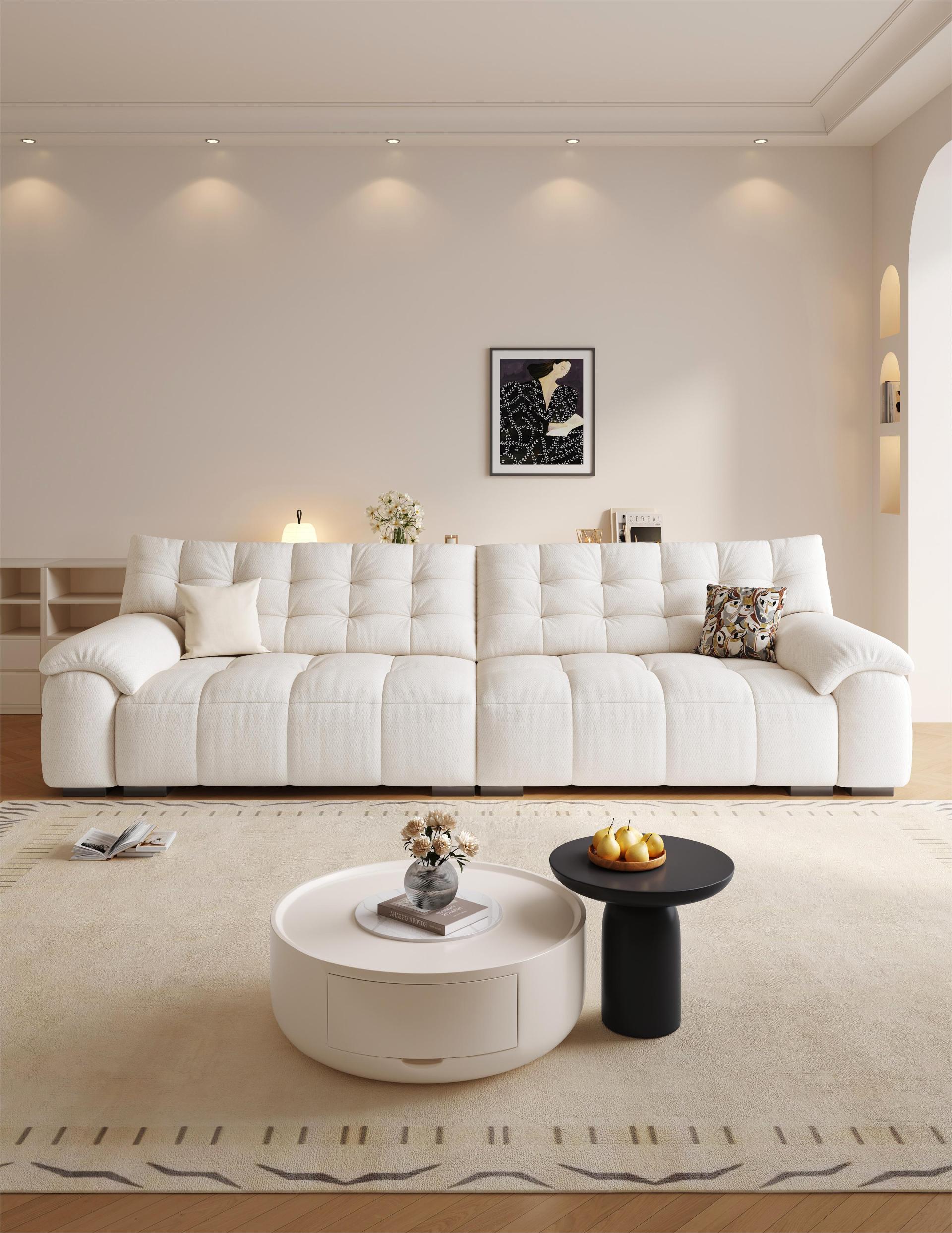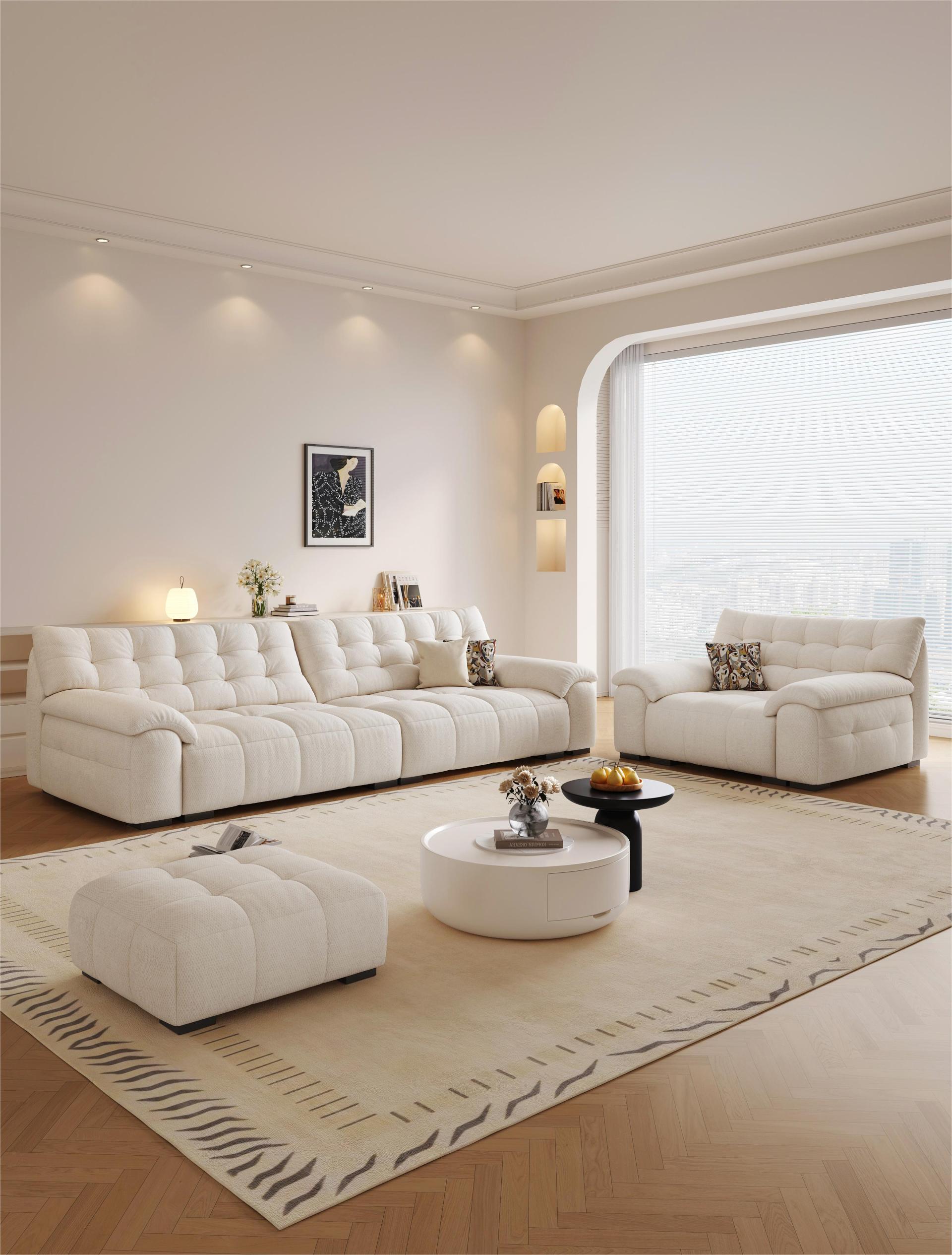 Structurally, the sofa adopts a thickened pine wood frame, as well as serpentine springs, elastic webbing, and securing loops, which significantly enhances its stability, durability, and weight-bearing performance. Moreover, it comes with over 11 color options, fully satisfying the demands of various users and home styles including cream, vintage, modern minimalism, etc.