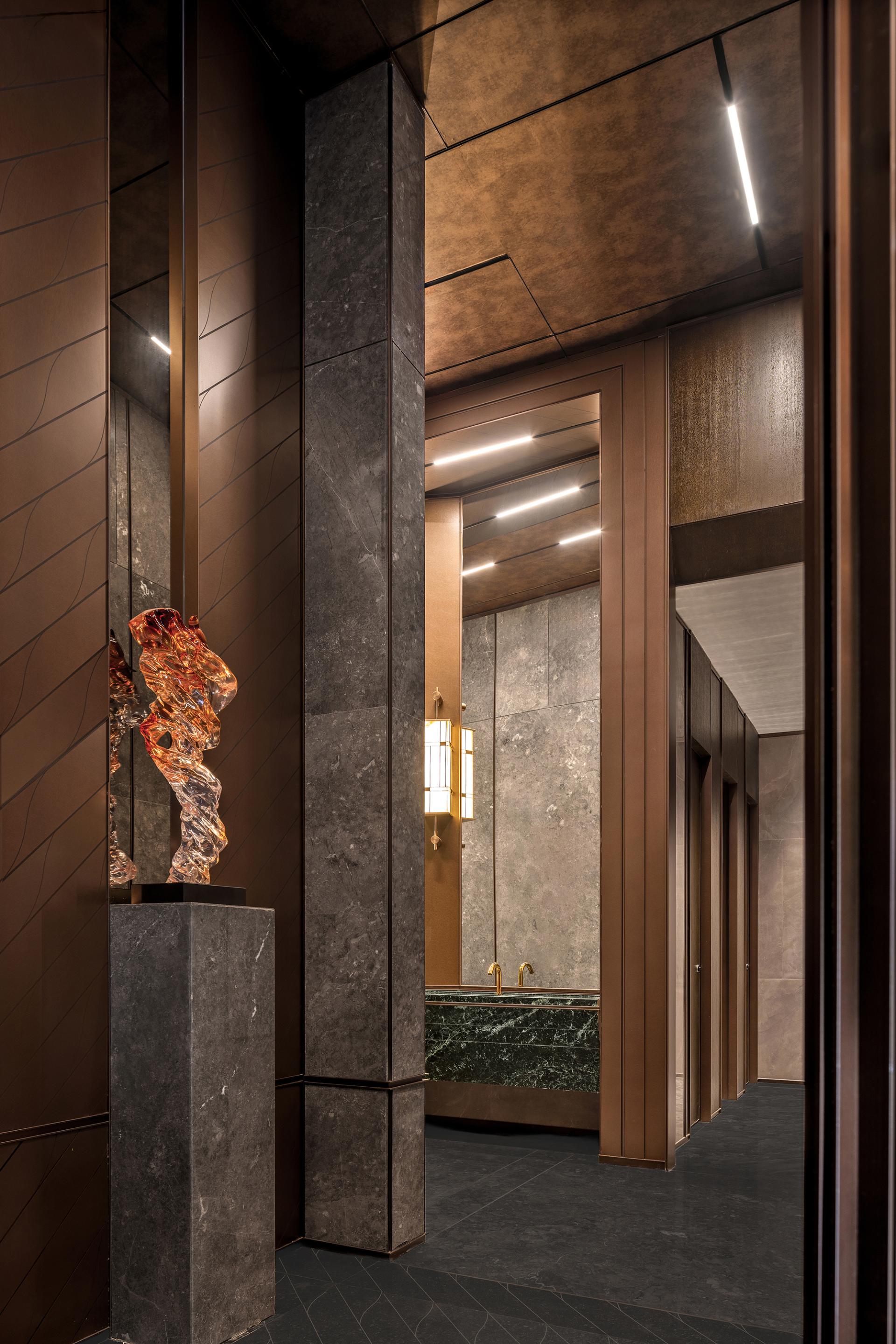 By integrating the multiple relationships of high and low, virtual and real, light and dark, weight and depth, it is skillfully balanced to create a sense of arrival and emotional transition for the visitors. The negotiation area continues the layout of the ancient city of Suzhou, where water and land run parallel, rivers and streets are adjacent to each other, creating a lively and poetic atmosphere as one shuttles through it. The water bar area focuses on the matching and uniqueness of materials to emphasize the sense of hierarchy. The clean lines, luxurious finishes, ornaments with oriental charm, every inch of details reveals beauty and tension. Panoramic floor-to-ceiling windows blur the boundaries between indoors and outdoors, bringing the scenery into space, allowing inside and outside to complement each other, further enhancing the oriental charm.