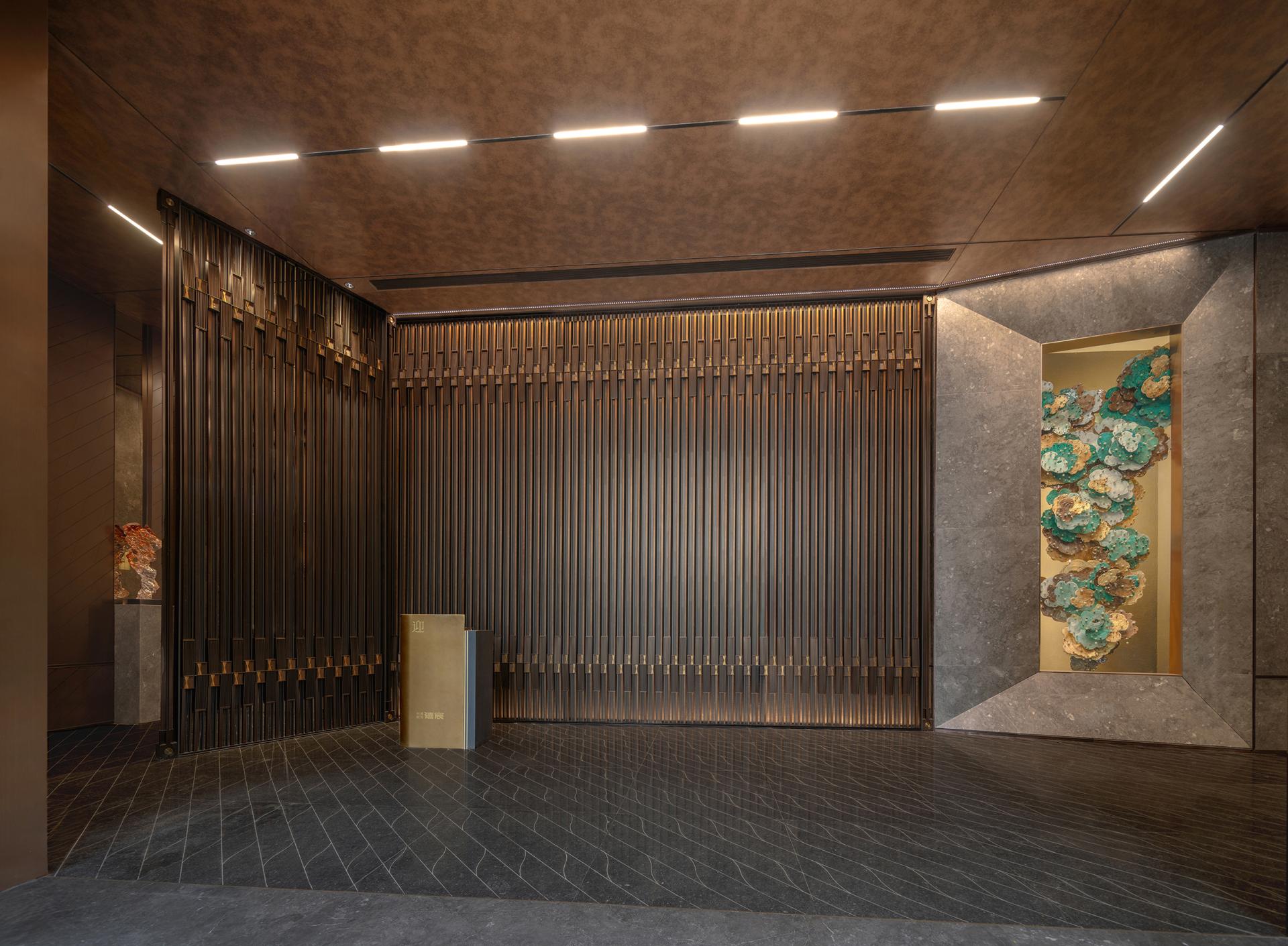 The foyer is filled with oriental elegance and away from the hustle and bustle. The metal screen serves as both a backdrop and a guide element. The art installations are like rushing clouds, or the clusters of blooming flowers, injecting rhythm into the space and deeply touching the vivid humanistic charm through the gradual progression.