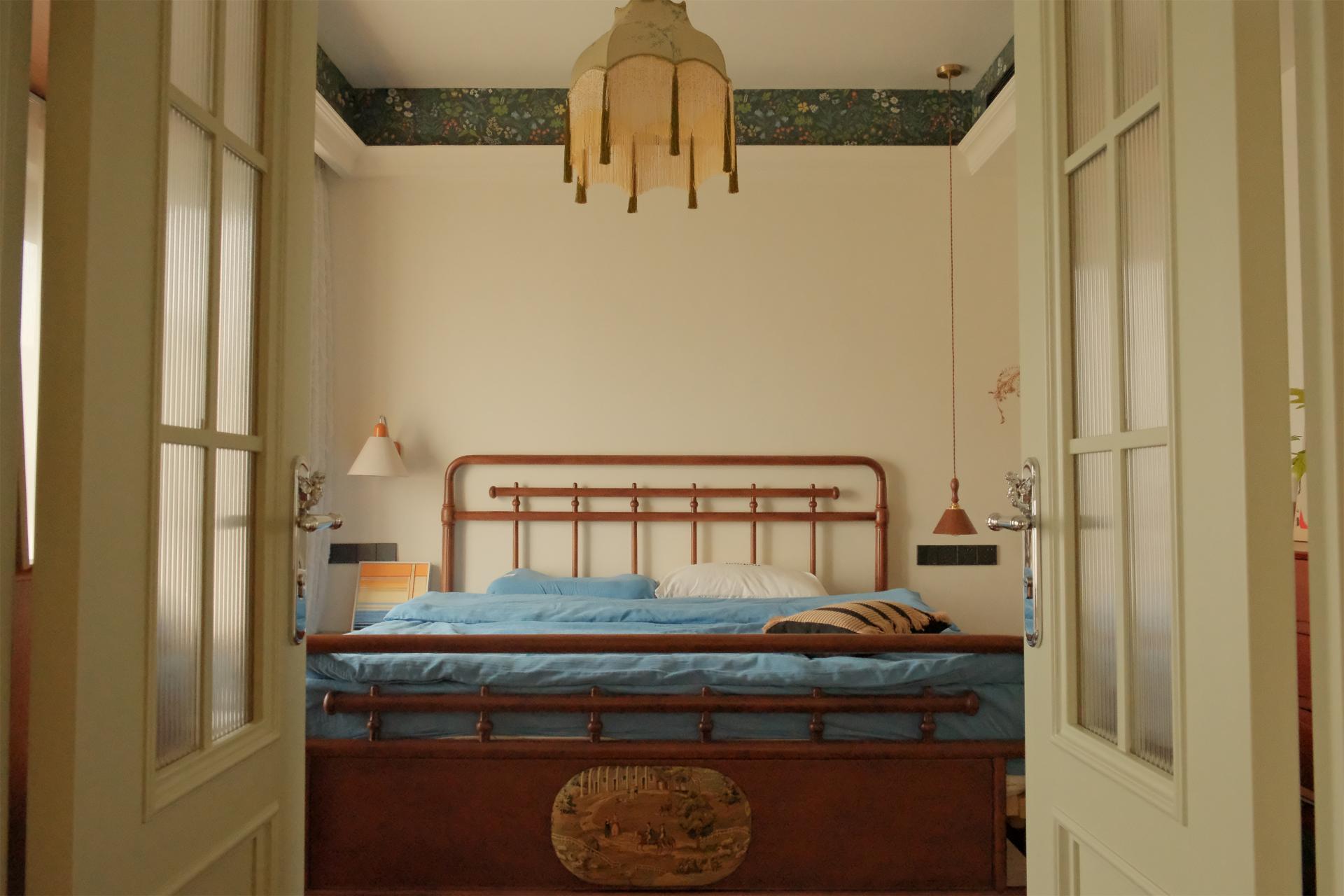Furthermore, the bedroom is delineated from the living room, a central hub for social gatherings, by a pair of double doors. The bed is meticulously positioned facing the entrance directly, imbuing the space with an significant sense of ritual for newlyweds. This thoughtful layout enables them to cherish the profound emotions of life, enriching their daily experiences and offering a serene sanctuary for their souls to unwind.