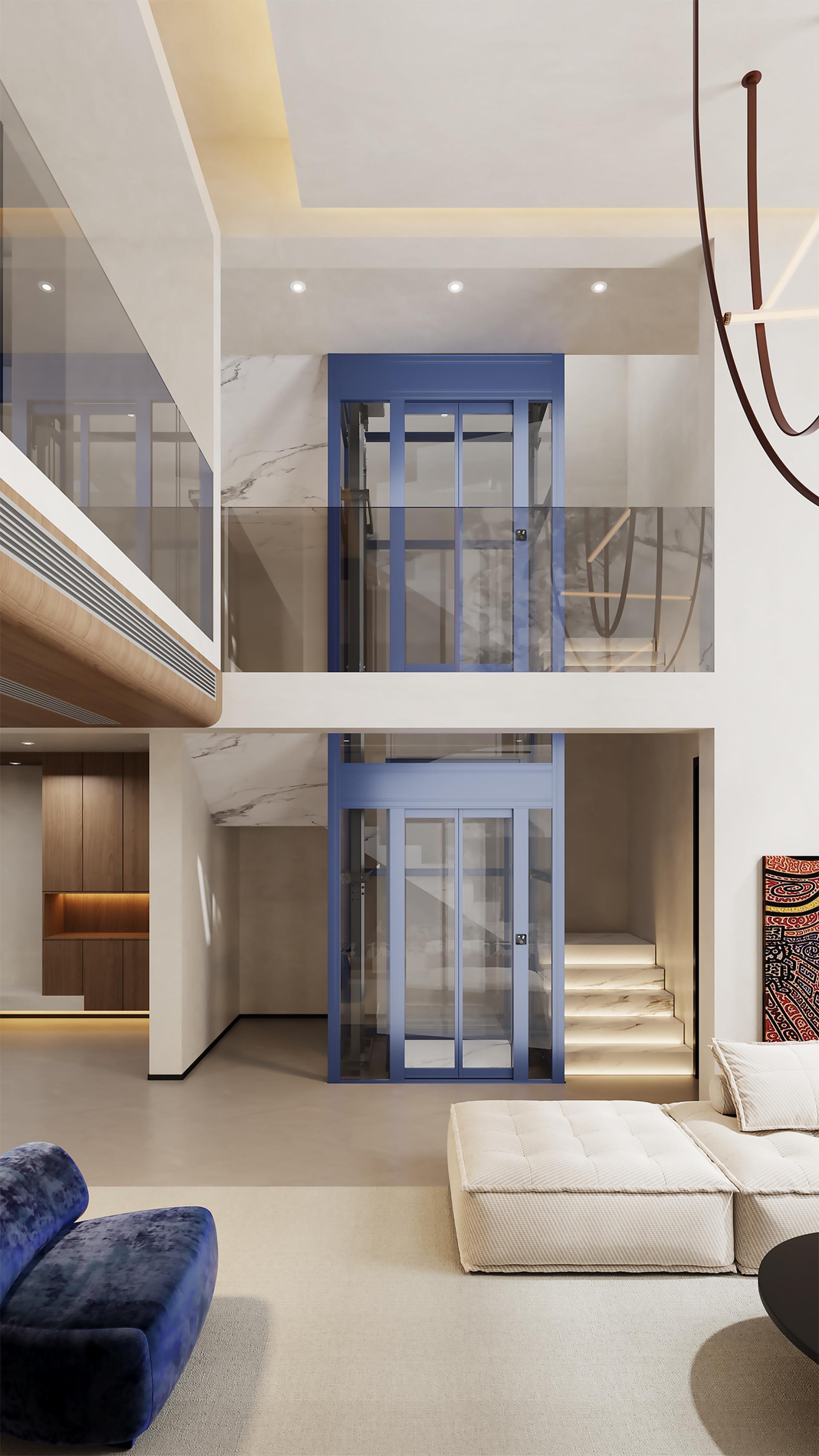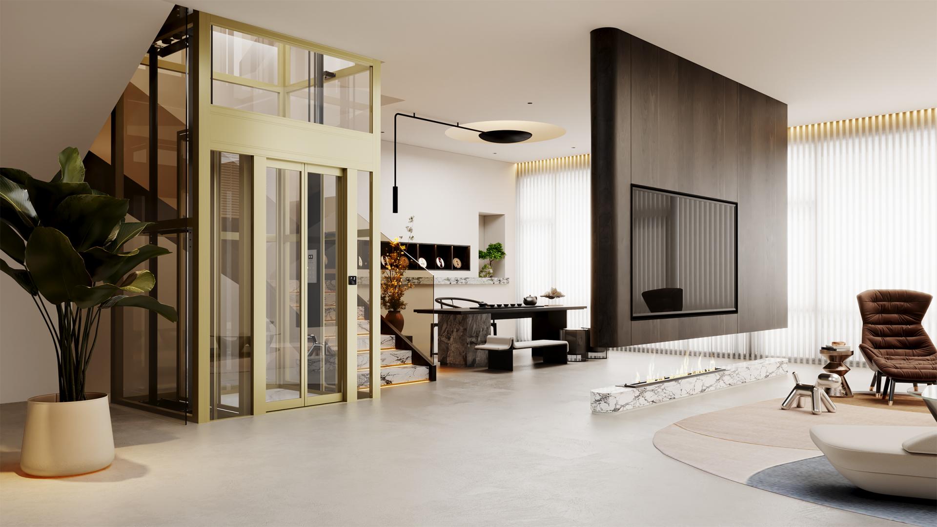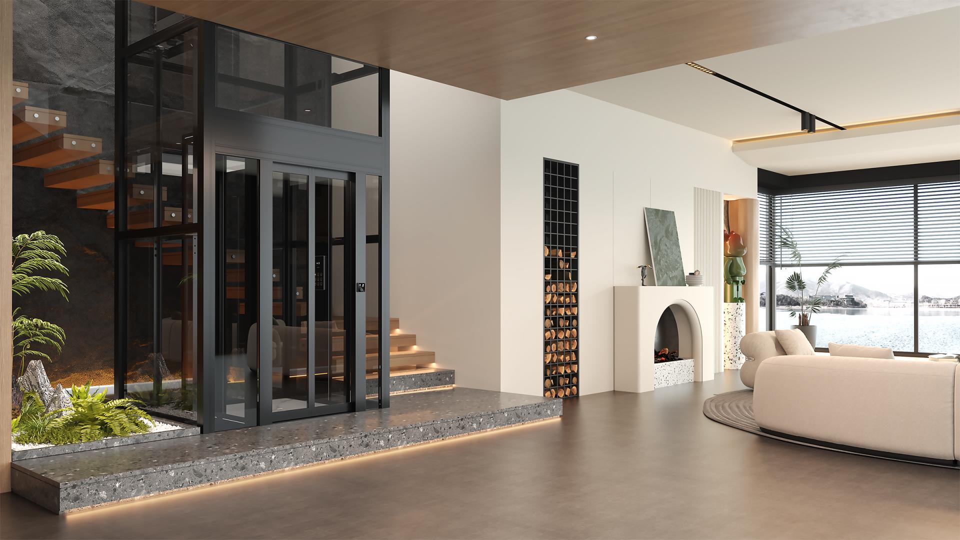 The i520S-G Sightseeing Villa Elevator is a poem about space and light. Its design, featuring panoramic glass on all sides, breaks away from the traditional enclosed structure, allowing the view to extend infinitely during the ride and giving the space a more open soul. The elevator car and shaft are designed in a harmonious color scheme, blending seamlessly with the surrounding environment as if naturally grown within the space. It is not just a functional device but also a transparent window connecting the interior with the outside world, offering residents a sense of freedom and comfort amidst the interplay of light and shadow. The interior design of this elevator emphasizes simplicity and elegance, with lighting being its standout feature. Soft light strips cascade generously from the ceiling, resembling a gentle stream flowing along the sides of the car walls and finally merging in the reflection of the floor. The welcoming light design on the floor adds a personalized touch, transforming the home elevator from a functional tool into an expression of taste. The entire lighting layout creates a continuous and dynamic trajectory of light, turning every ascent and descent into an artistic experience of intertwined light and shadow. Material selection plays a crucial role in the design of this elevator. The lightweight yet sturdy aluminum frame structure ensures visual harmony with the shaft framework. Black titanium mirror stainless steel adds a touch of depth and elegance to the car walls while discreetly concealing the counterweight during operation, providing a visually pleasing experience. The ceiling is made of translucent acrylic material, offering high light transmission and weather resistance, delivering soft and bright illumination for home use. Whether in daylight or at night, the elevator exudes warmth and transparency. Centered on transparency and light, the i520S-G Sightseeing Villa Elevator perfectly combines practicality and artistry. It infuses poetry into a compact space, turning every movement into a tribute to the aesthetics of life. It transforms the daily routine of home living into a dual feast for the eyes and the soul.