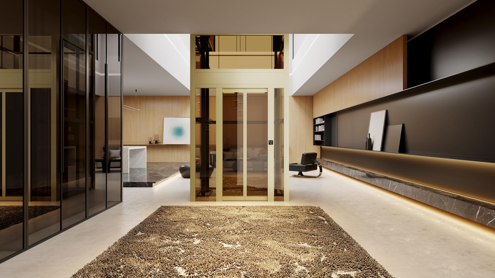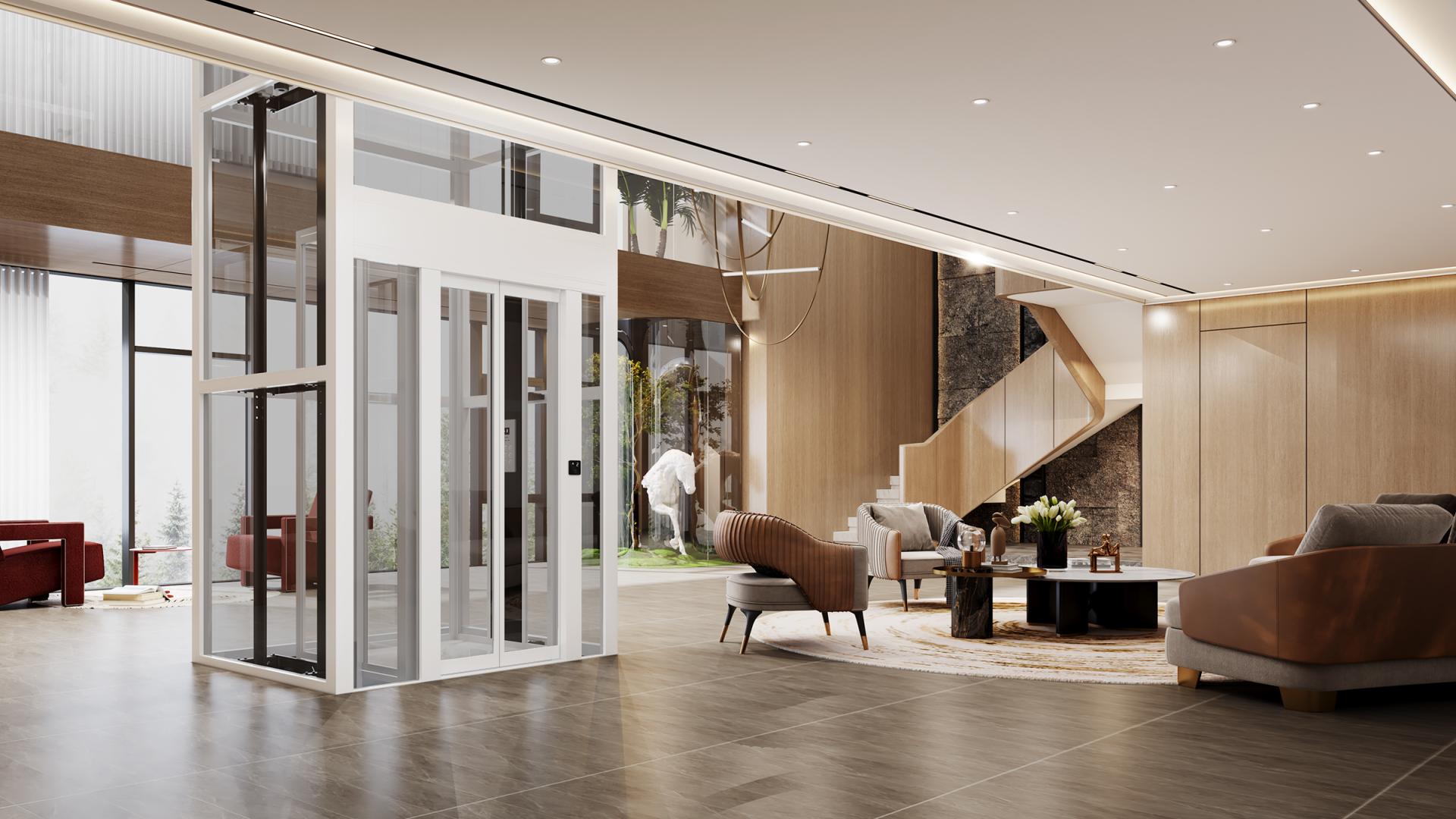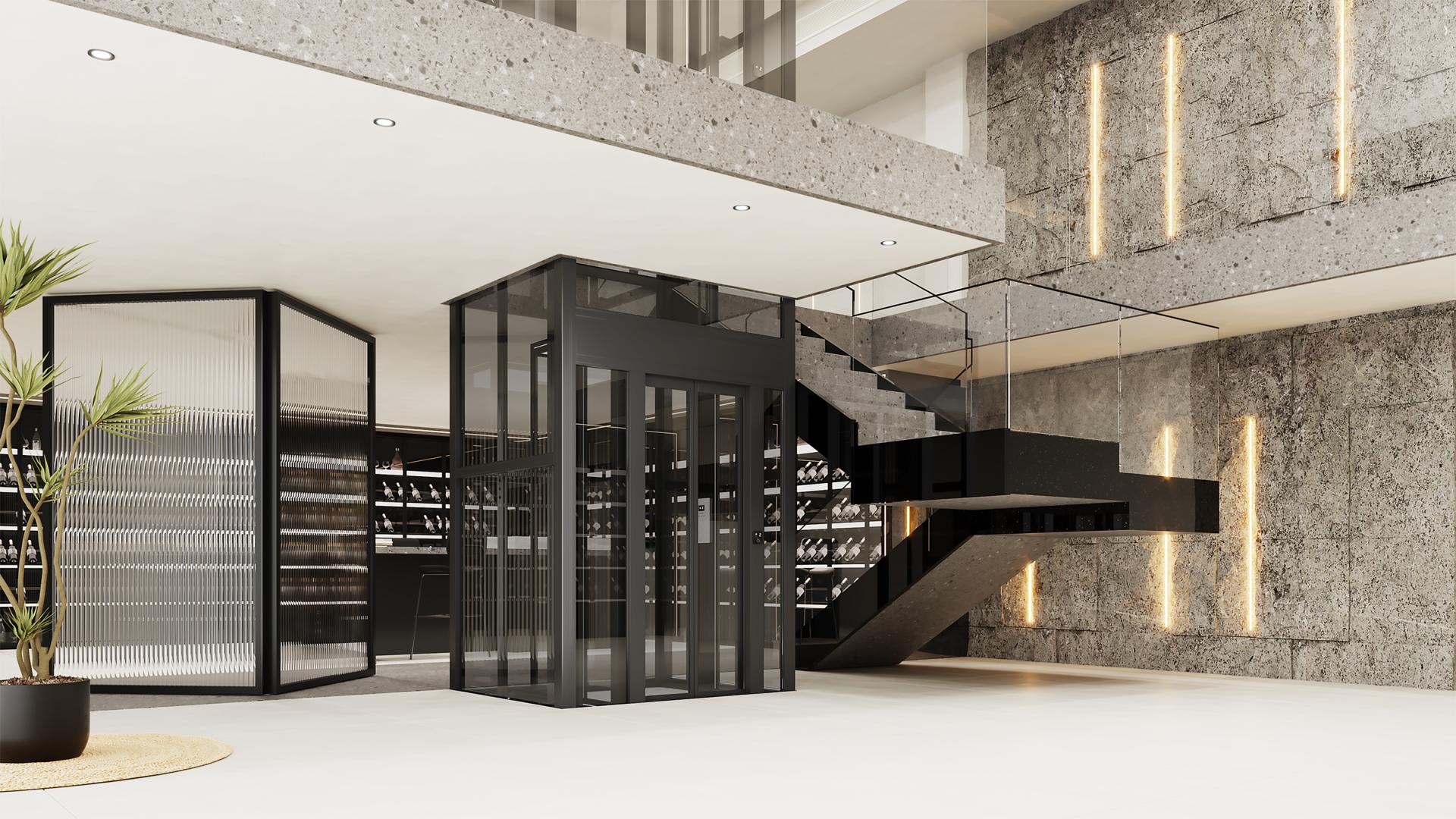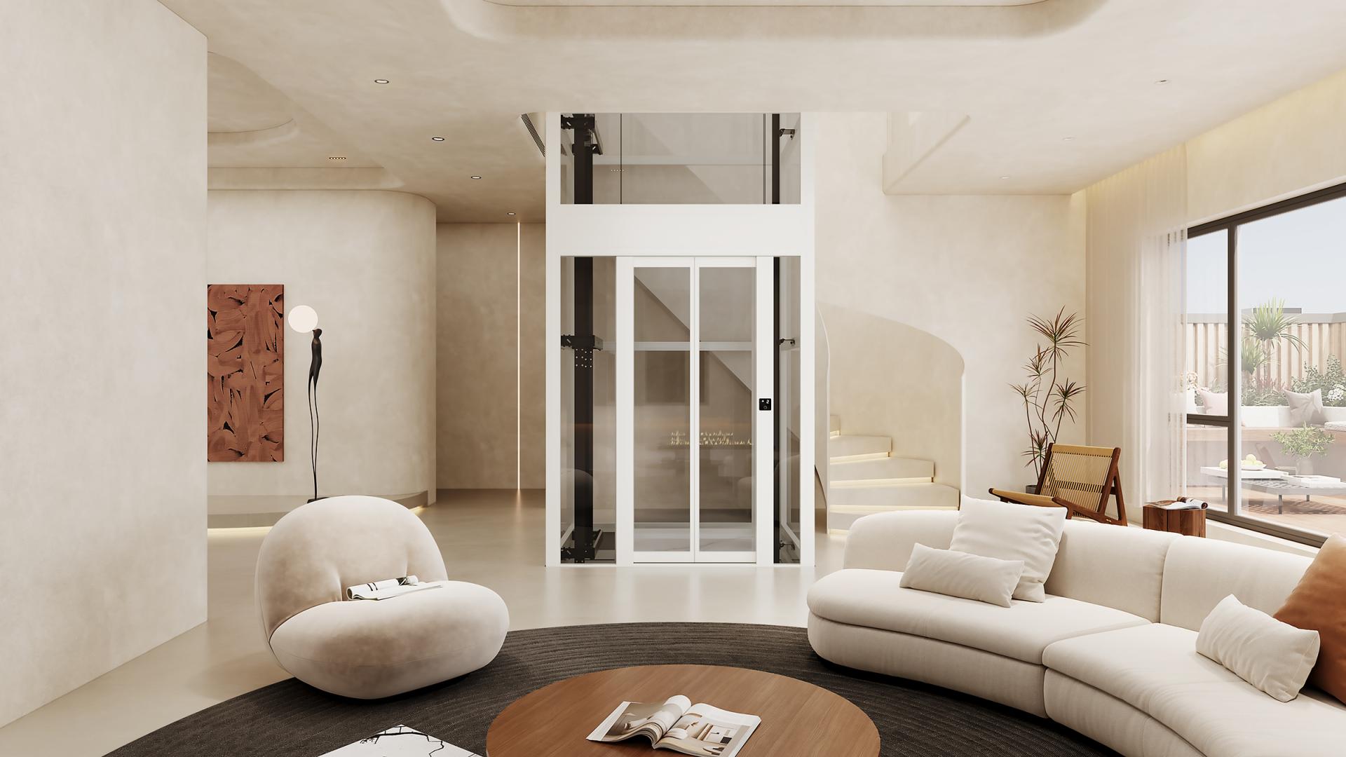 The i520S-G Sightseeing Villa Elevator is a poem about space and light. Its design, featuring panoramic glass on all sides, breaks away from the traditional enclosed structure, allowing the view to extend infinitely during the ride and giving the space a more open soul. The elevator car and shaft are designed in a harmonious color scheme, blending seamlessly with the surrounding environment as if naturally grown within the space. It is not just a functional device but also a transparent window connecting the interior with the outside world, offering residents a sense of freedom and comfort amidst the interplay of light and shadow. The interior design of this elevator emphasizes simplicity and elegance, with lighting being its standout feature. Soft light strips cascade generously from the ceiling, resembling a gentle stream flowing along the sides of the car walls and finally merging in the reflection of the floor. The welcoming light design on the floor adds a personalized touch, transforming the home elevator from a functional tool into an expression of taste. The entire lighting layout creates a continuous and dynamic trajectory of light, turning every ascent and descent into an artistic experience of intertwined light and shadow. Material selection plays a crucial role in the design of this elevator. The lightweight yet sturdy aluminum frame structure ensures visual harmony with the shaft framework. Black titanium mirror stainless steel adds a touch of depth and elegance to the car walls while discreetly concealing the counterweight during operation, providing a visually pleasing experience. The ceiling is made of translucent acrylic material, offering high light transmission and weather resistance, delivering soft and bright illumination for home use. Whether in daylight or at night, the elevator exudes warmth and transparency. Centered on transparency and light, the i520S-G Sightseeing Villa Elevator perfectly combines practicality and artistry. It infuses poetry into a compact space, turning every movement into a tribute to the aesthetics of life. It transforms the daily routine of home living into a dual feast for the eyes and the soul.