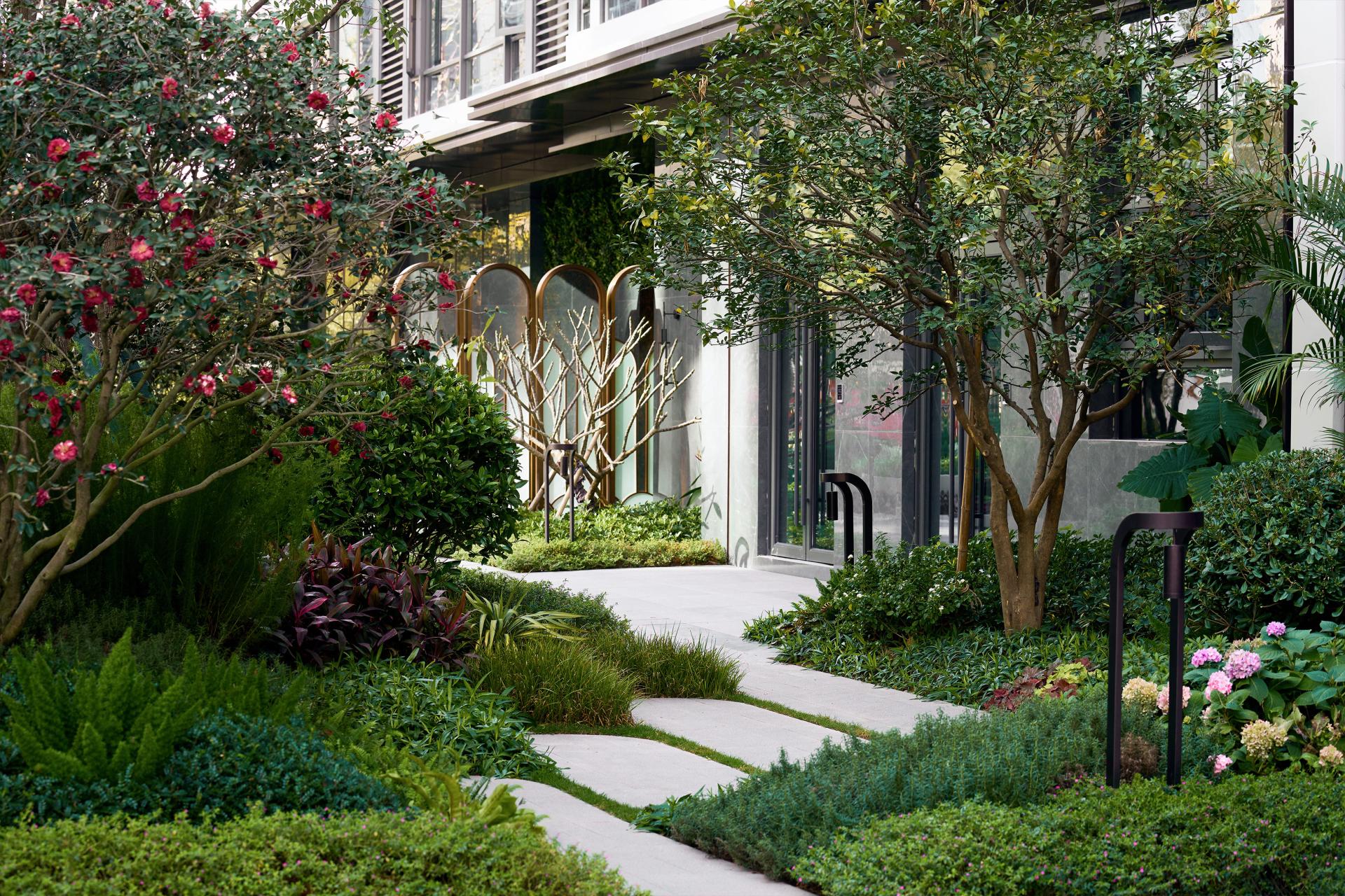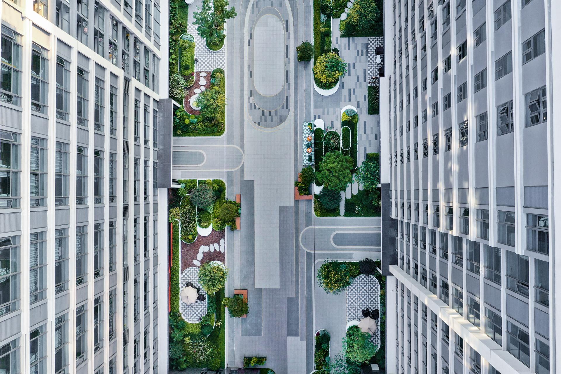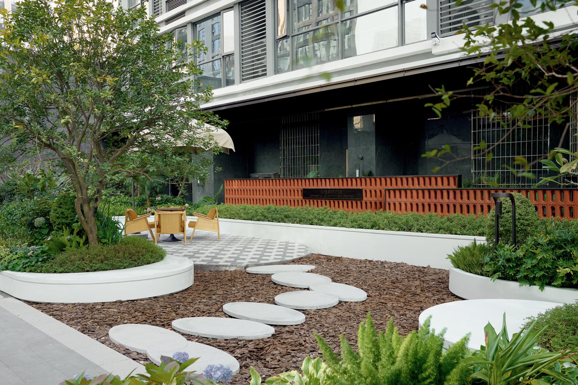 Floral Isles, Vibrant Colors, Modern Elegance, and Dappled Light,these four themed pocket gardens form the soul of the community. The Floral Isles area features Phoenix trees and bougainvillea, weaving a native botanical tapestry of the city. The Vibrant Garden enlivens social interactions with colorful terrazzo walls and artistic installations. The Modern Courtyard introduces mirror-like water features and illuminated archways, capturing the romance of a city that never sleeps by the sea. Meanwhile, the Dappled Light Garden, adorned with Nanyang-style floral tiles and woven rattan pavilions, invites residents to embrace slow living. Eschewing the traditional enclosed apartment layout, the design employs U-shaped glass brick facades to dissolve architectural boundaries, while the steel framework transforms into a living frame for climbing bougainvillea. Every window becomes a curated lens framing the sky and sea.