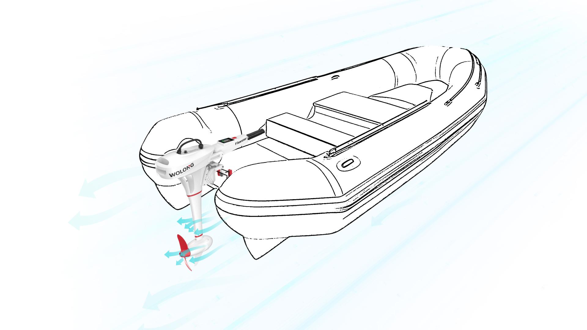 This outboard motor is powered via a battery connection cable and incorporates a precision-engineered mechanical structure with a reliable electrical connection rail positioning system. This design streamlines the battery installation and removal process while the precise positioning mechanism effectively prevents battery movement or disconnection during operation, ensuring a stable and secure power connection. Additionally, the motor features multiple built-in safety protections, including overheat, overcurrent, and overvoltage safeguards, enhancing operational safety and prolonging battery lifespan.