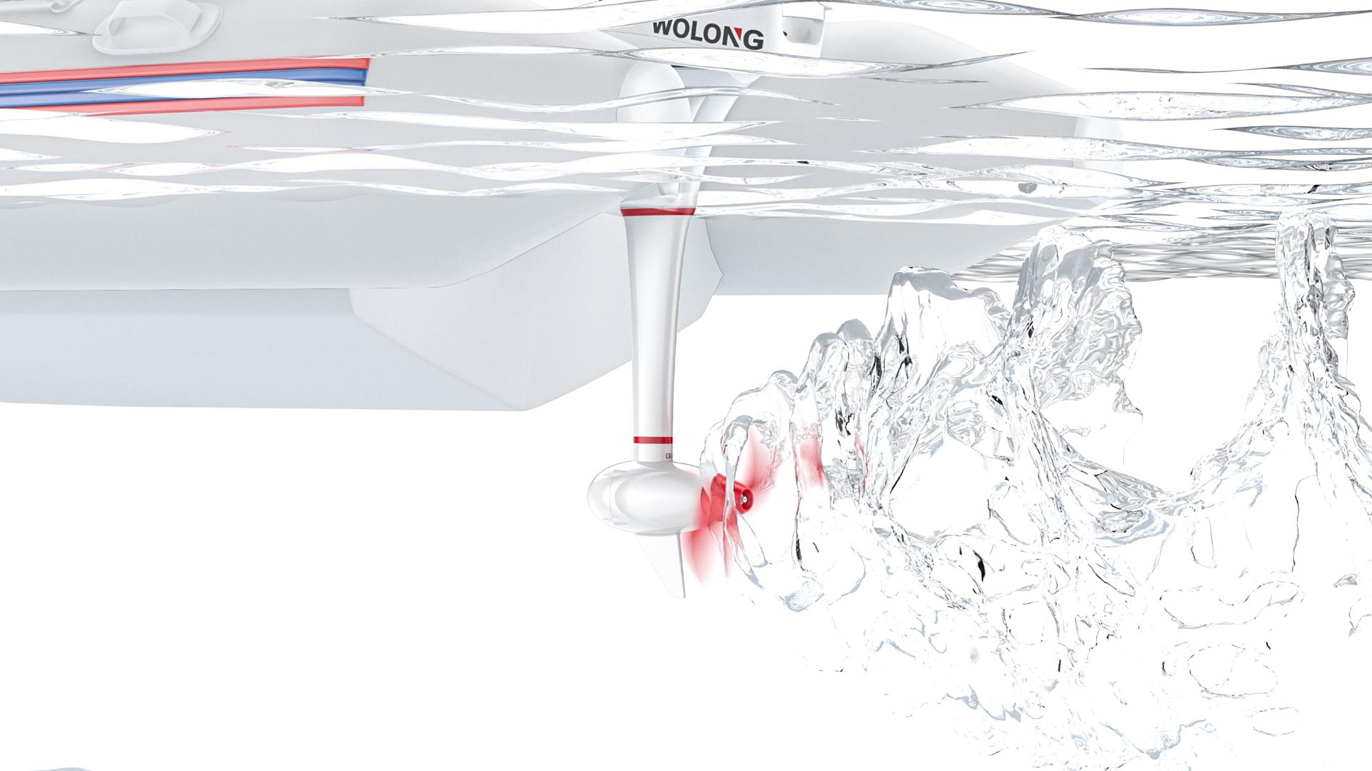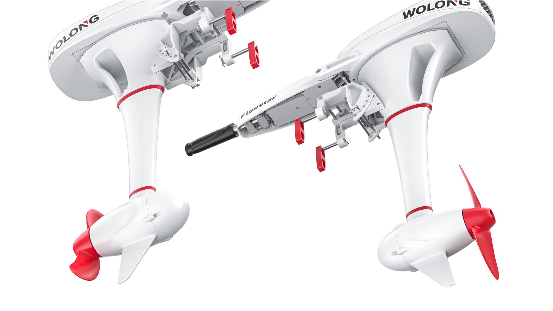 The Flowstar Series electric outboard motor showcases a streamlined design with smooth, clean lines, embodying a cohesive and futuristic aesthetic. Compared to similar products on the market, it stands out with its innovative and distinctive appearance, exuding a sense of advanced technology and dynamic speed that aligns perfectly with contemporary tastes.