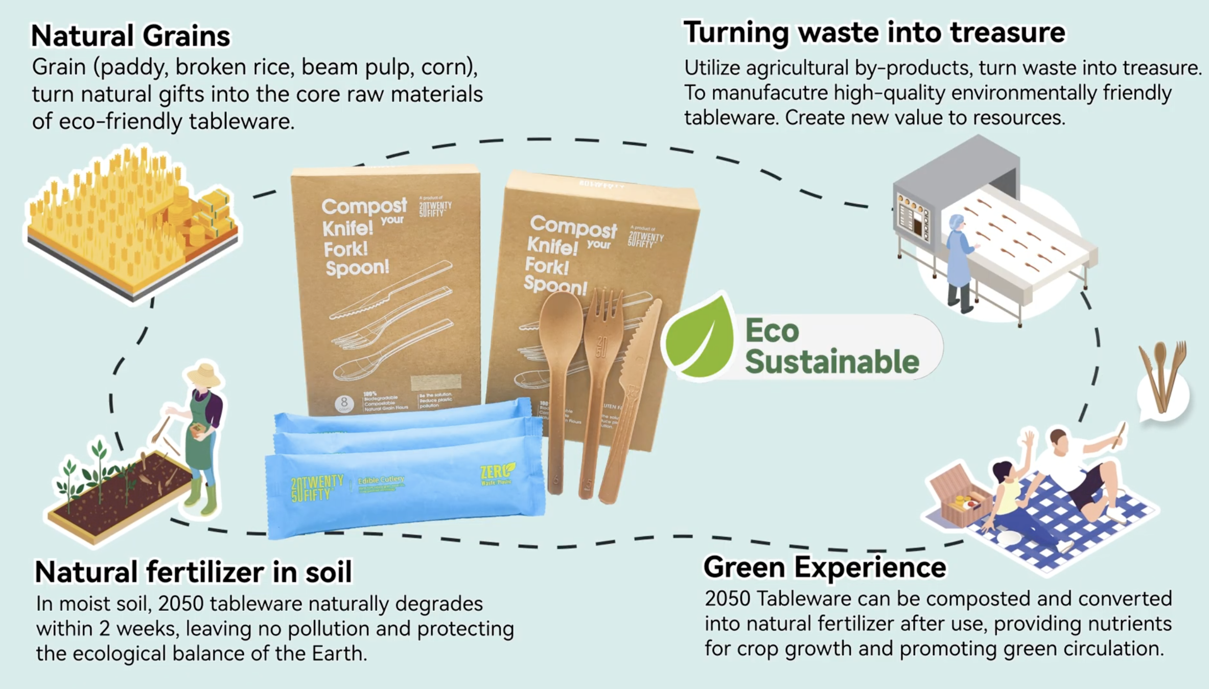 Natural grains → turning waste into treasure → green experience → turning into fertilizer in the ground.