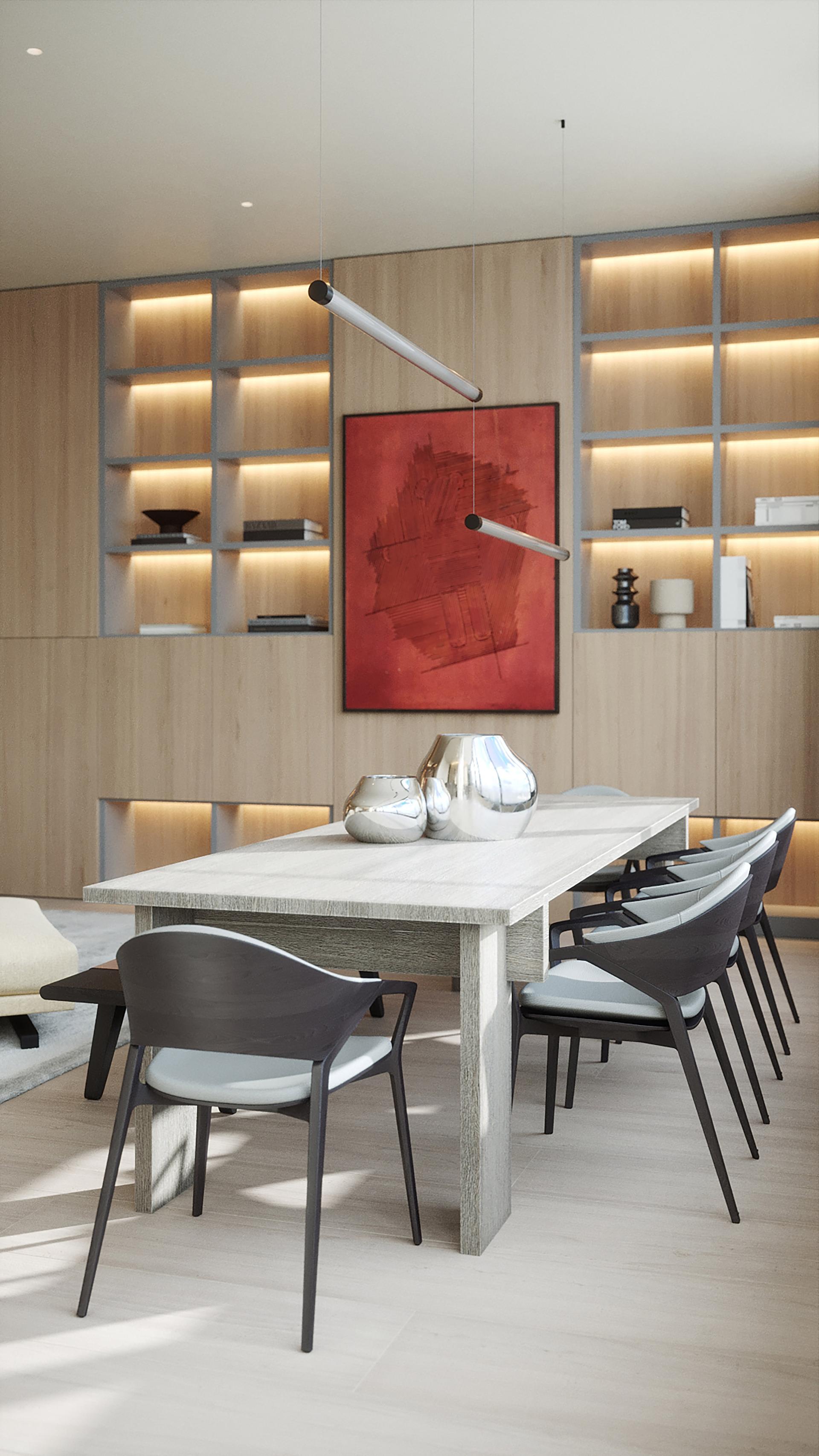 Art is intricately woven into the interior design, serving as a vital part of its narrative. Each art object has been chosen with great care to complement the overall concept without overwhelming it, imbuing the space with meaning.