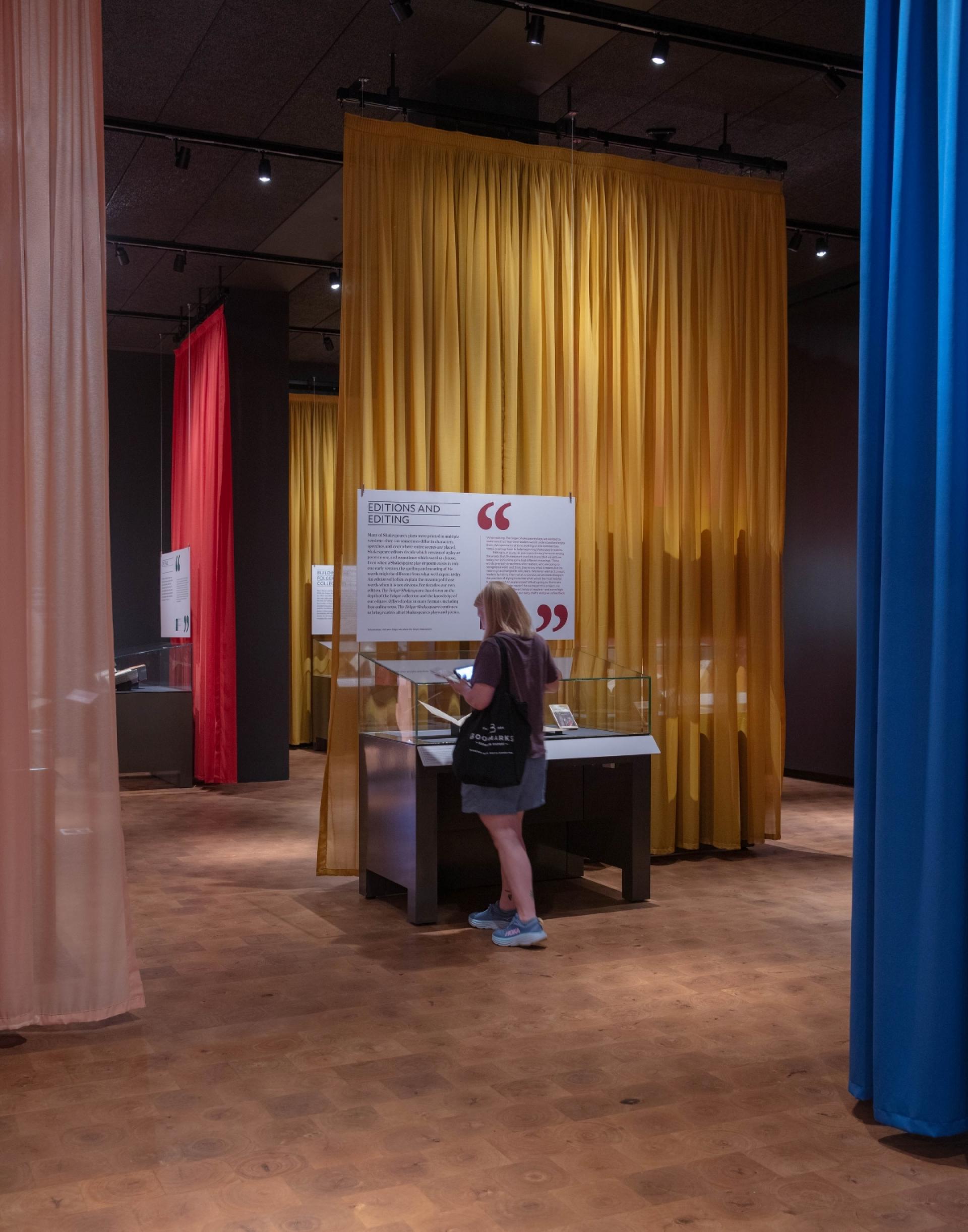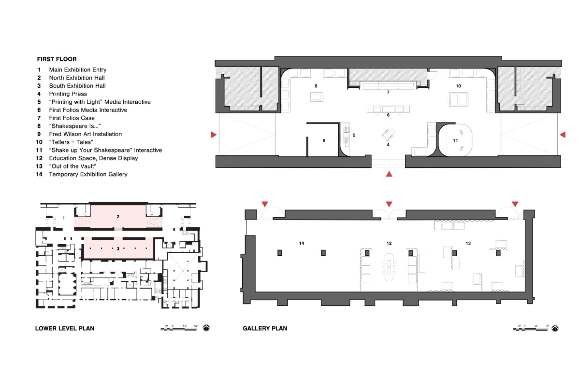 The design premise is to take Shakespeare off his pedestal and bring his works to everyone. There is no "Shakespeare test," but rather questions, insights, and gentle provocations—adapt the sacred, embrace the profane, reframe Shakespeare worship, and relish in the playful, mundane, and irreverent. The design challenge was creating an exciting visitor experience that would bring Shakespeare to all via works on paper while adhering to the highest conservation requirements.